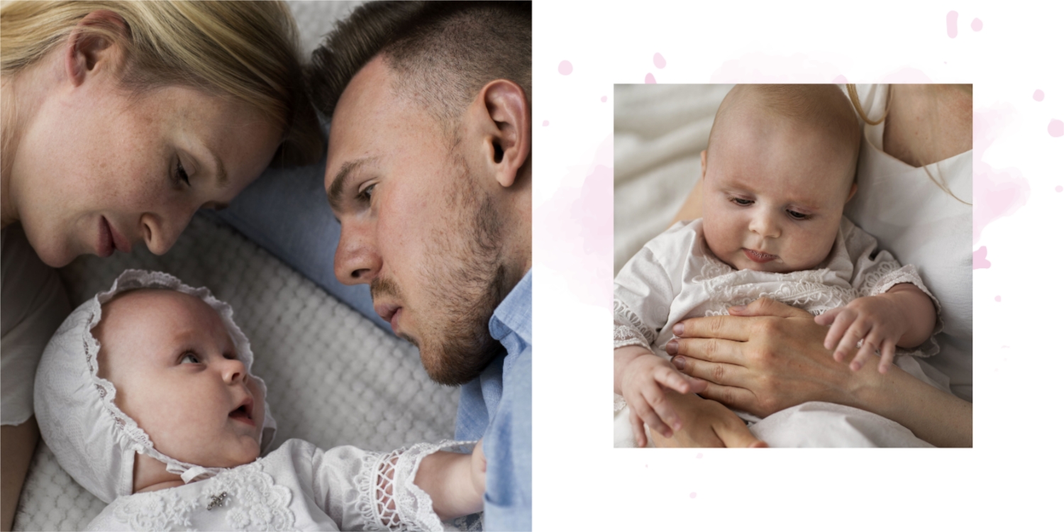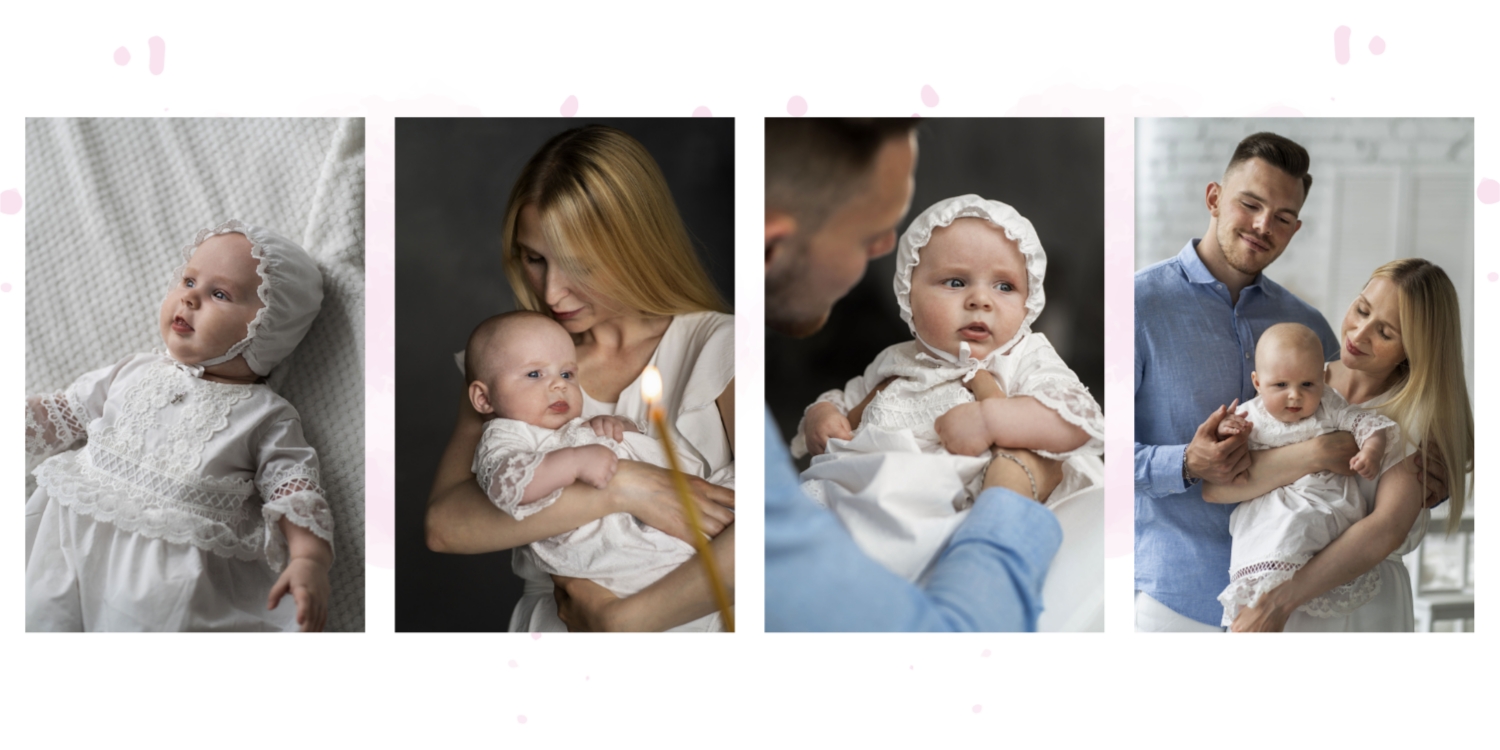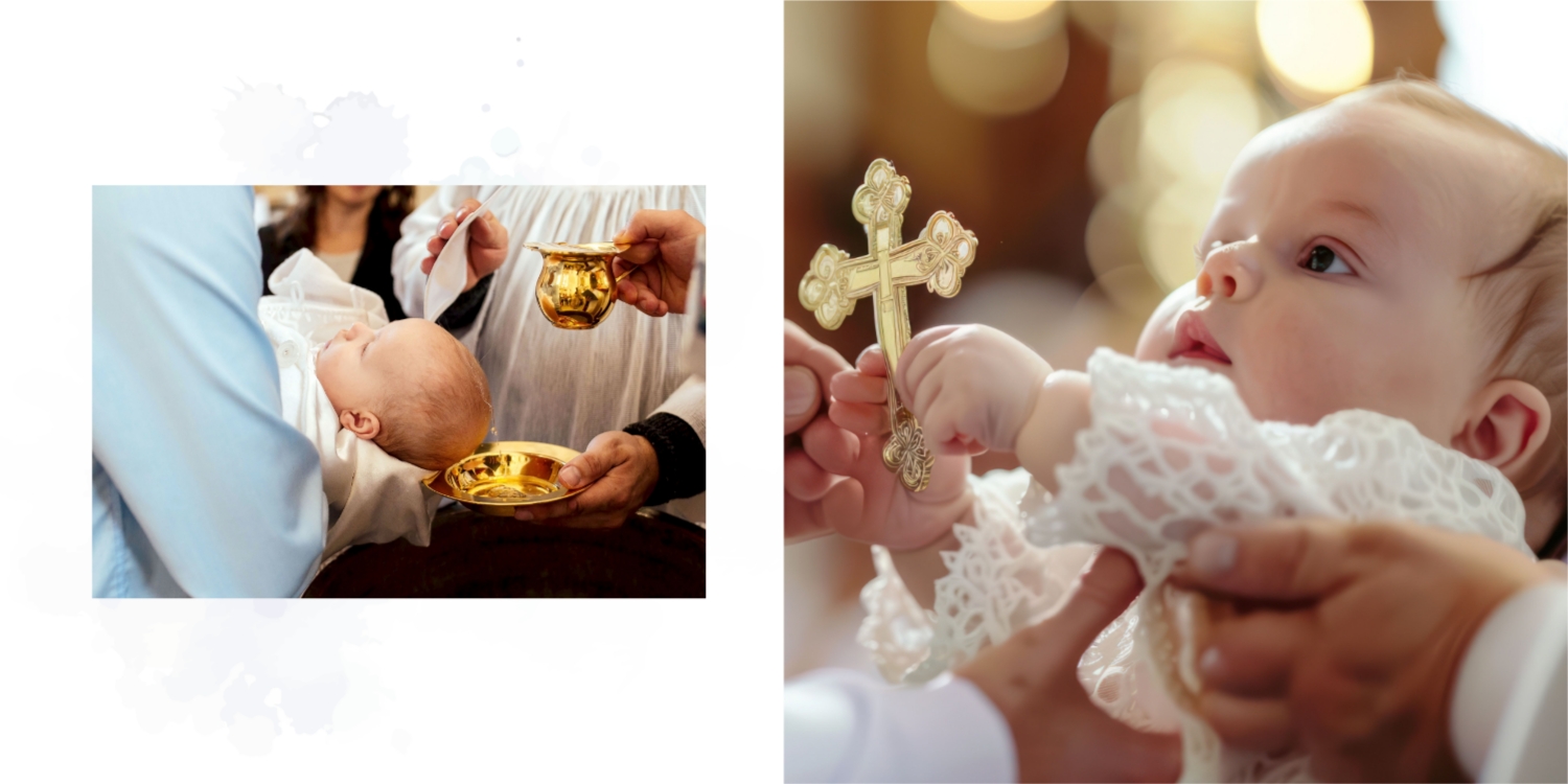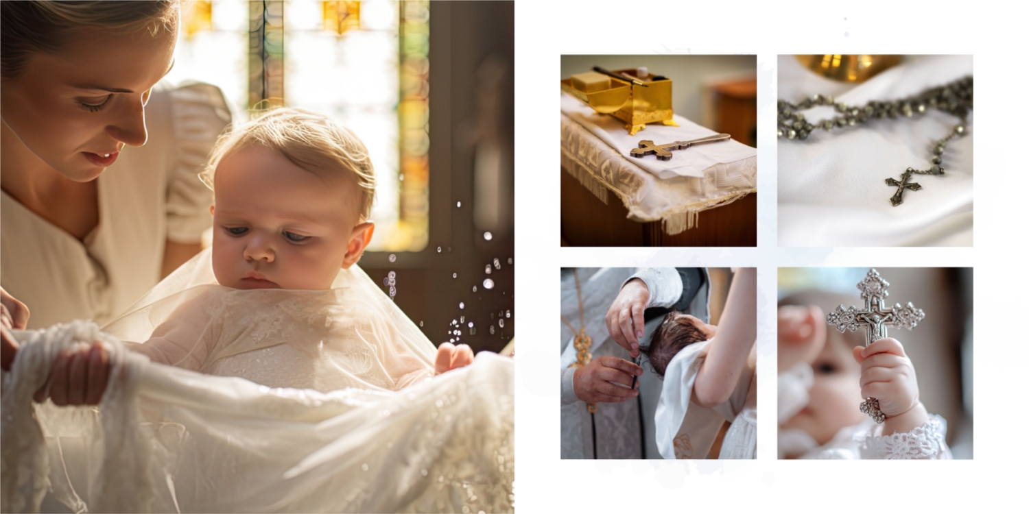 Darmowy szablon fotoksiążki ze wspomnieniami chrztu dziecka. Utwórz makietę DIY w internetowym kreatorze fotoksiążek.