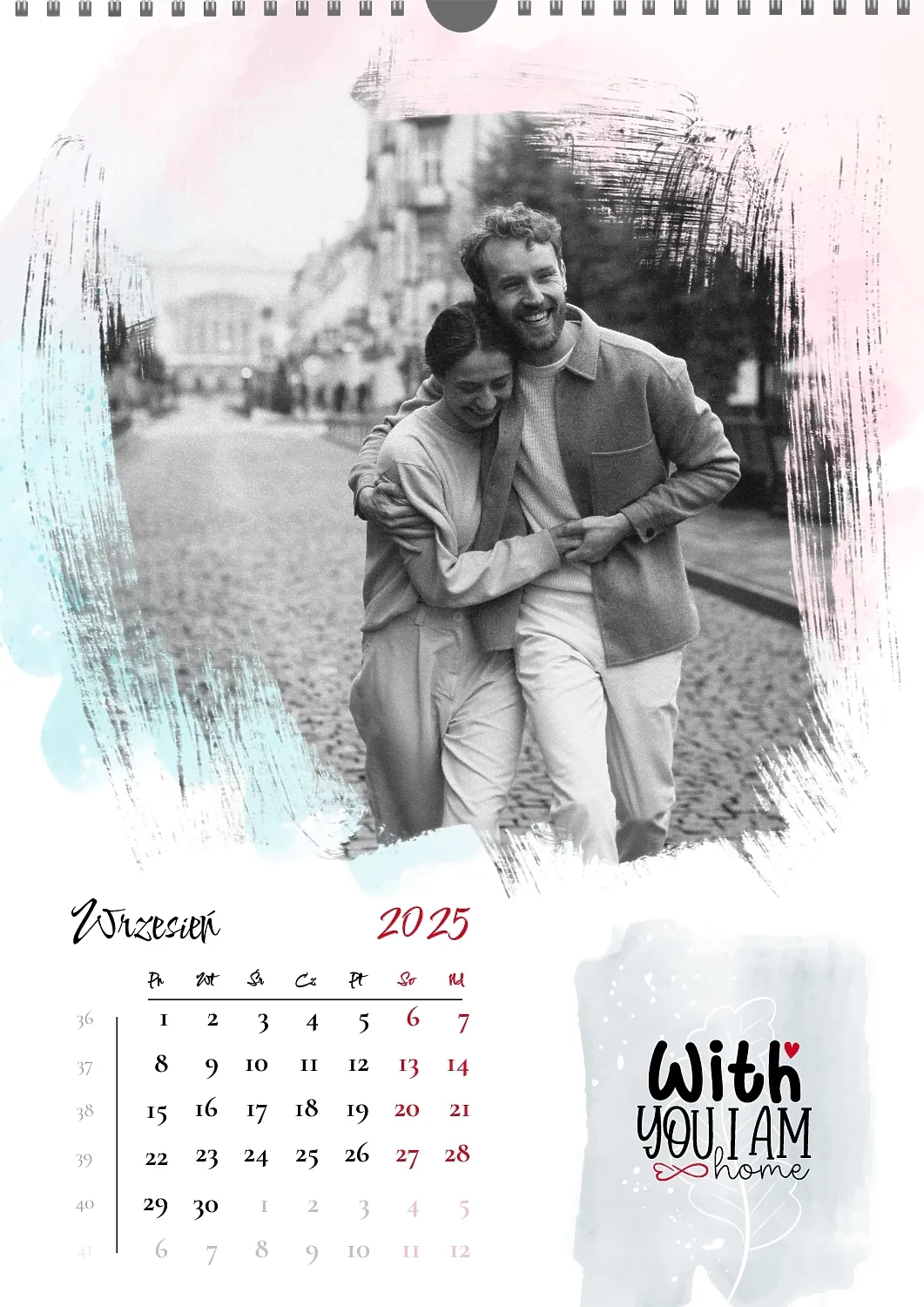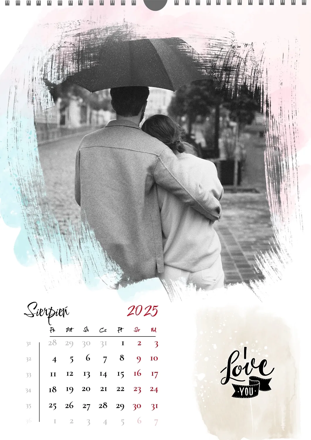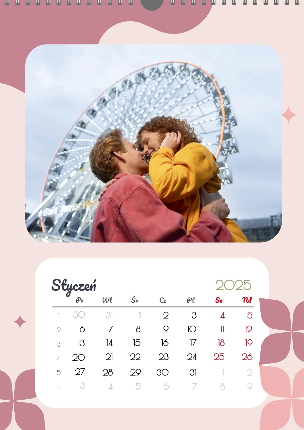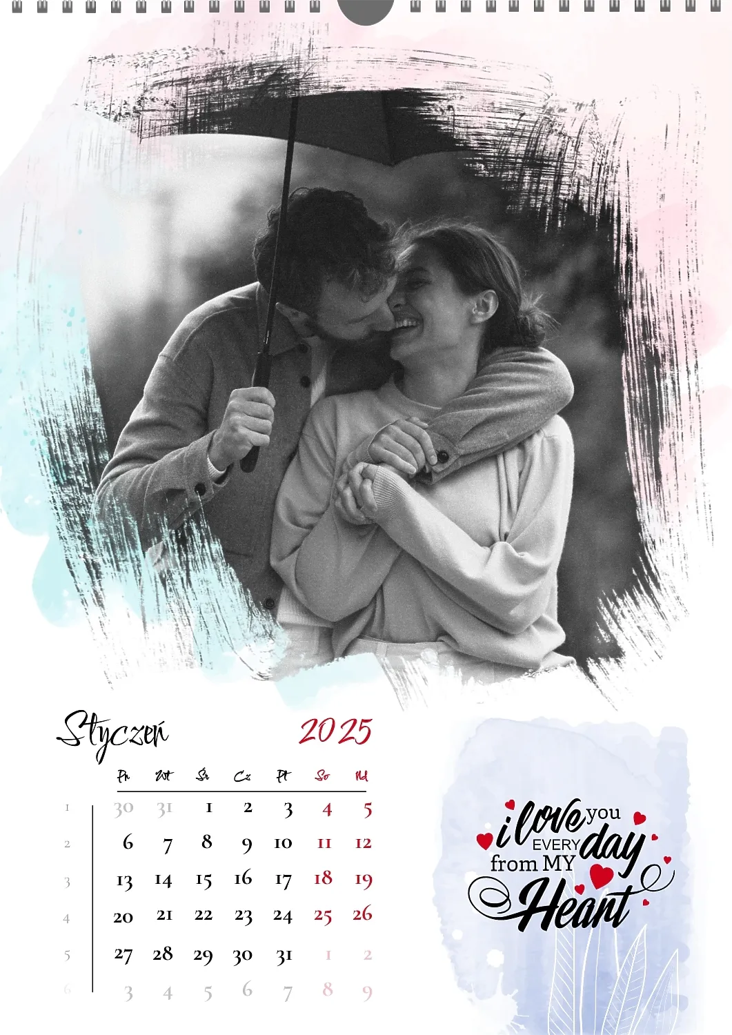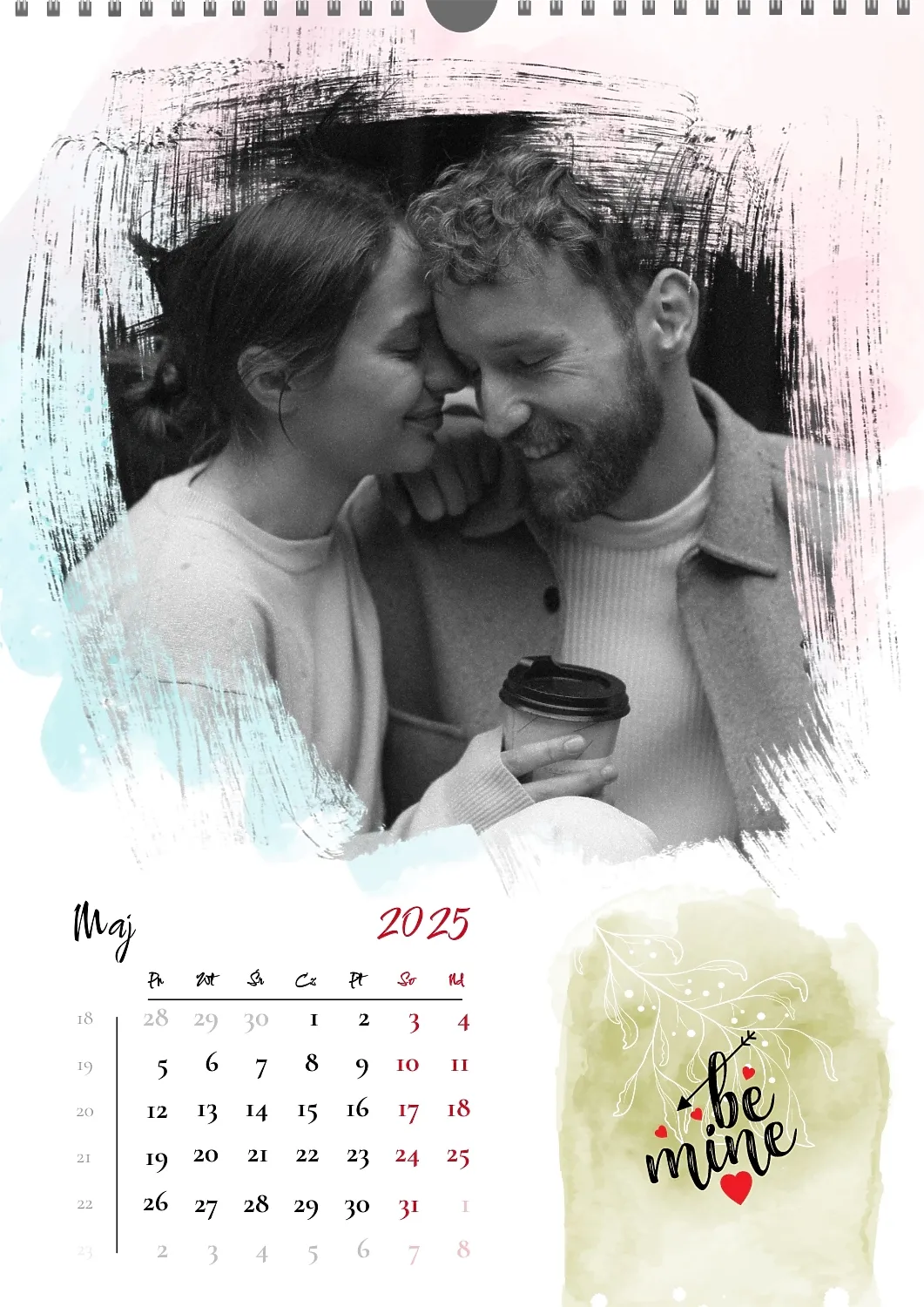 Darmowy szablon kalendarza z romantyczną sesją zdjęciową dla miłośników . Utwórz układ DIY w kreatorze kalendarzy online.