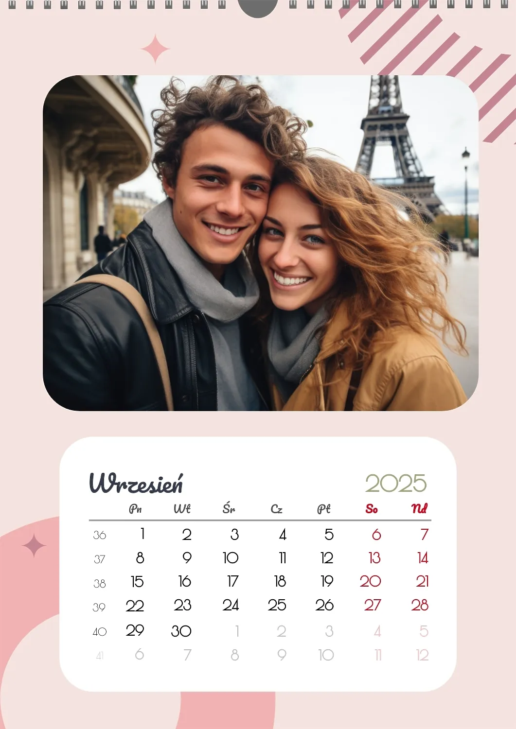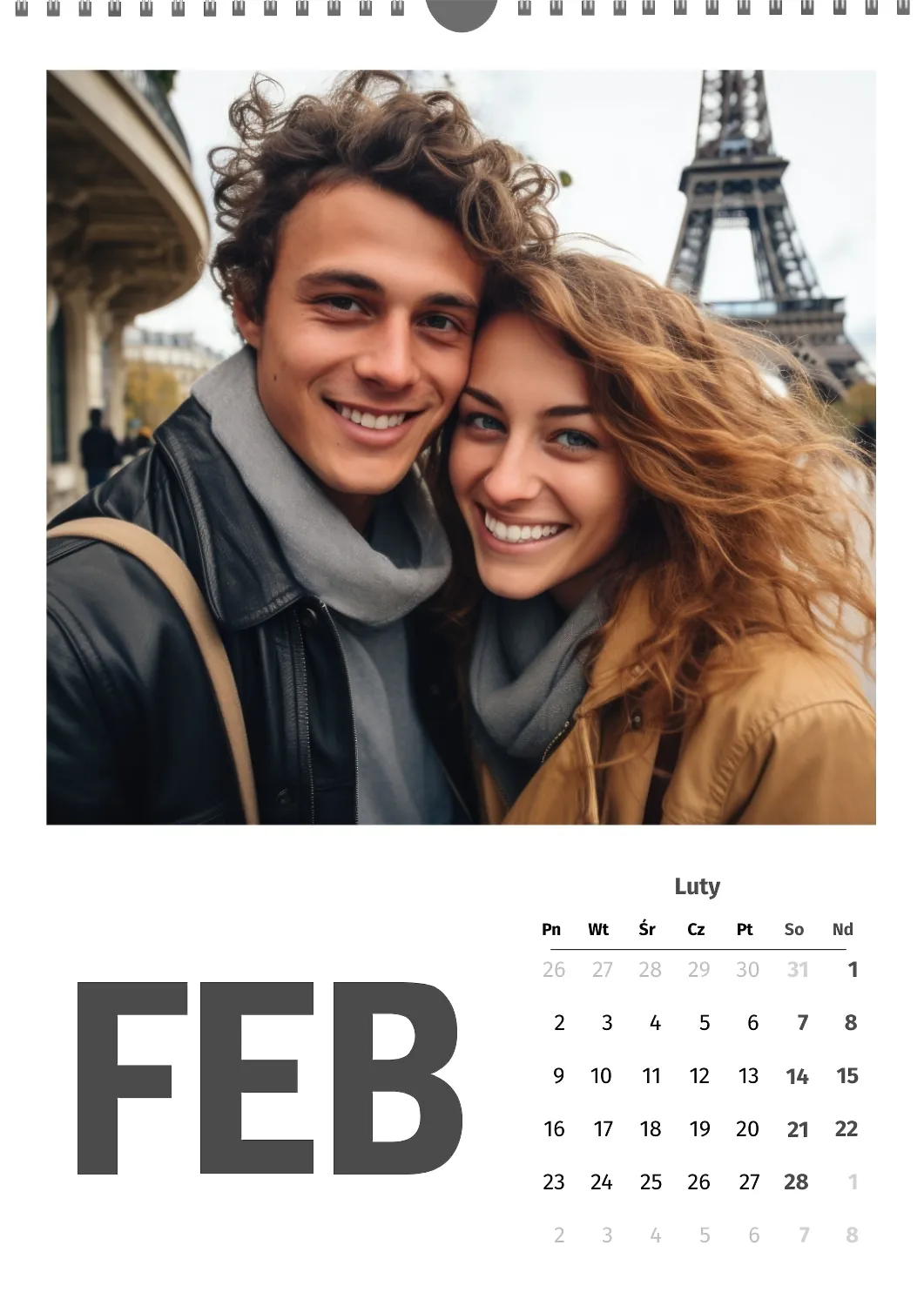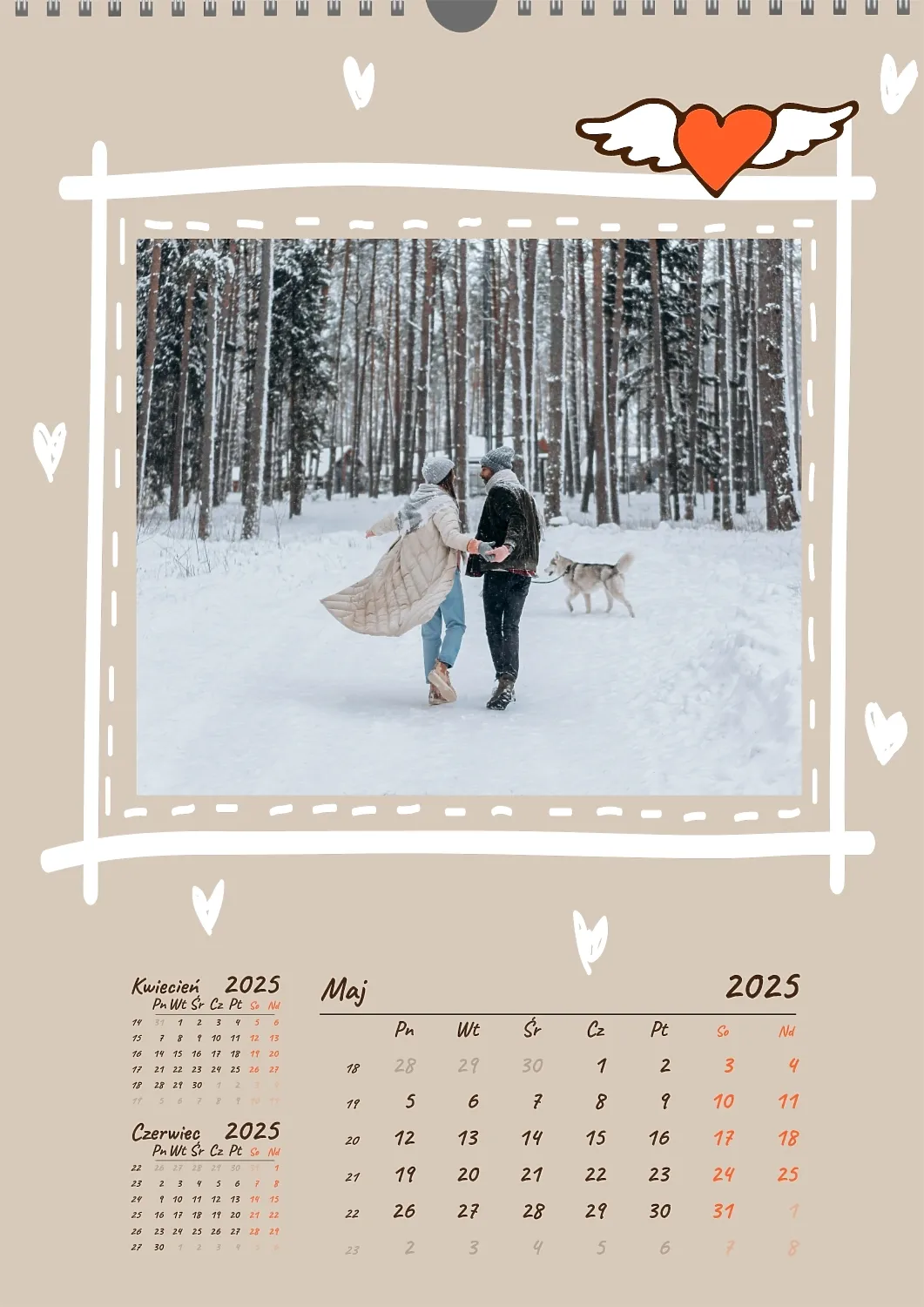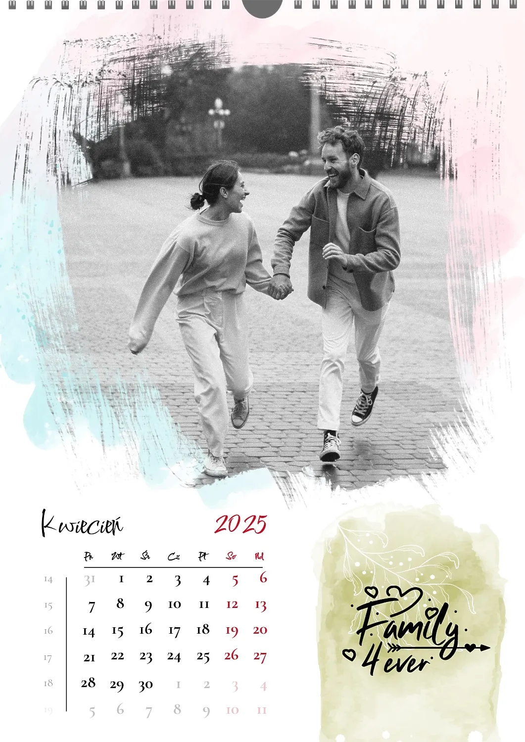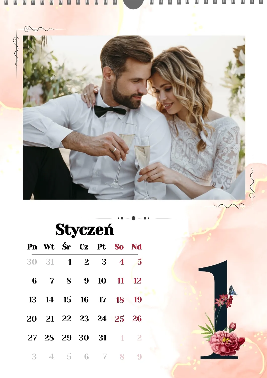 Darmowy szablon kalendarza z romantyczną sesją zdjęciową dla miłośników . Utwórz układ DIY w kreatorze kalendarzy online.