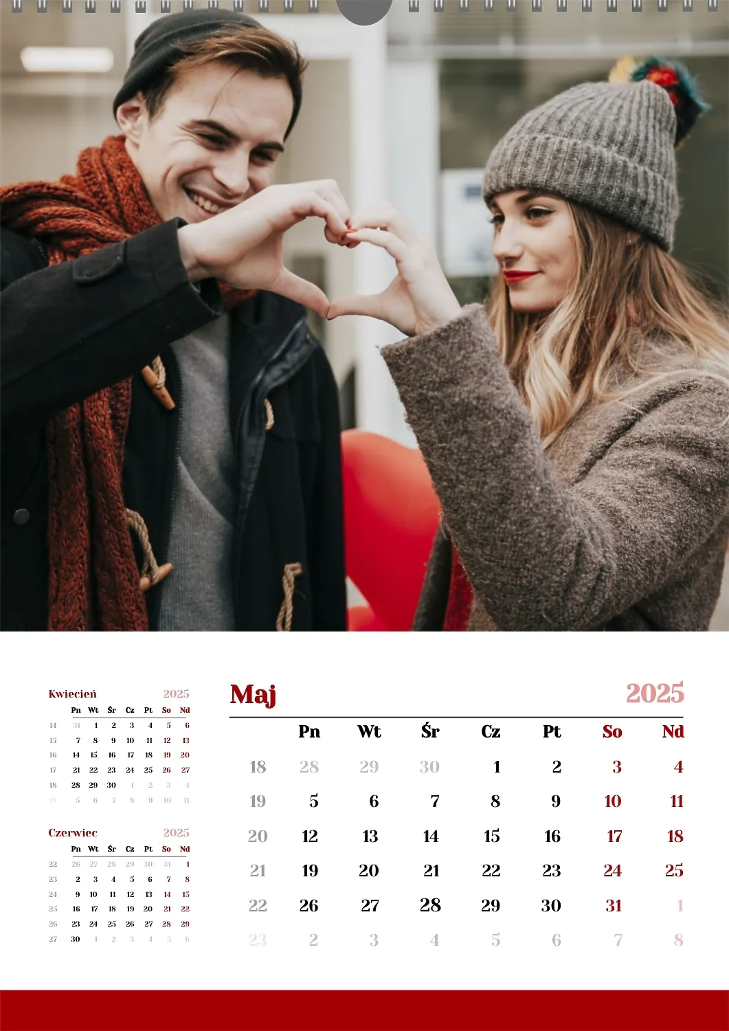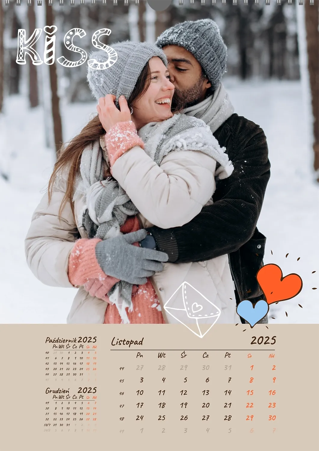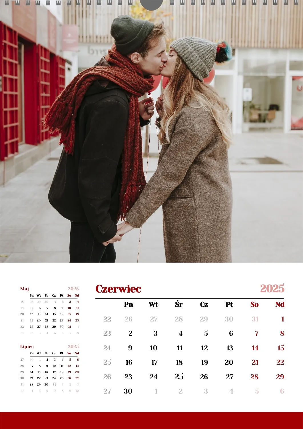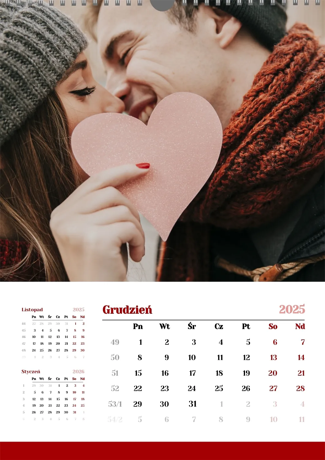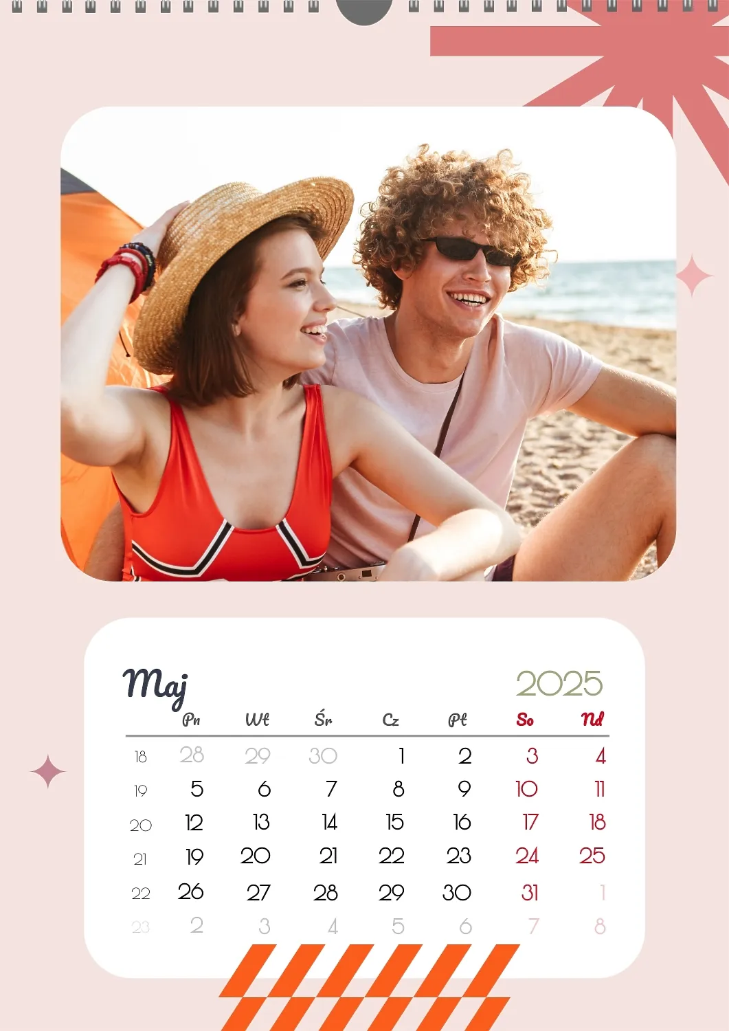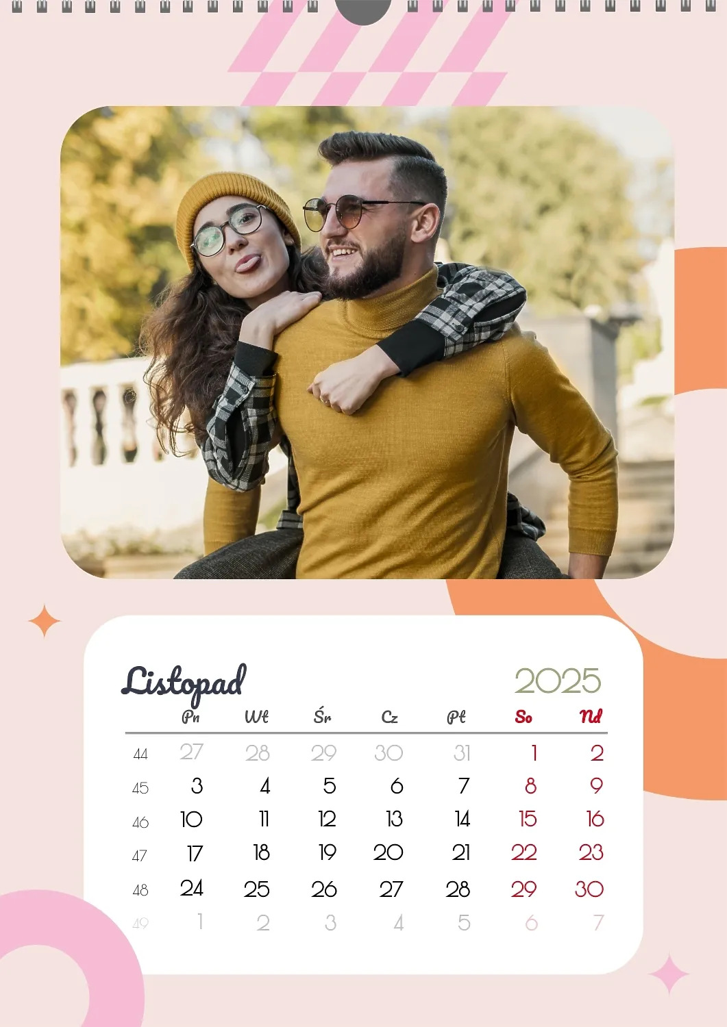 Darmowy szablon kalendarza z romantyczną sesją zdjęciową dla miłośników . Utwórz układ DIY w kreatorze kalendarzy online.