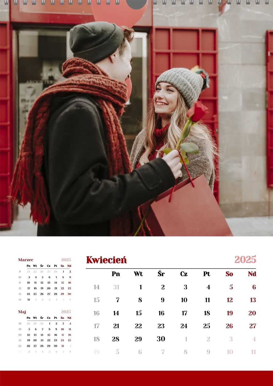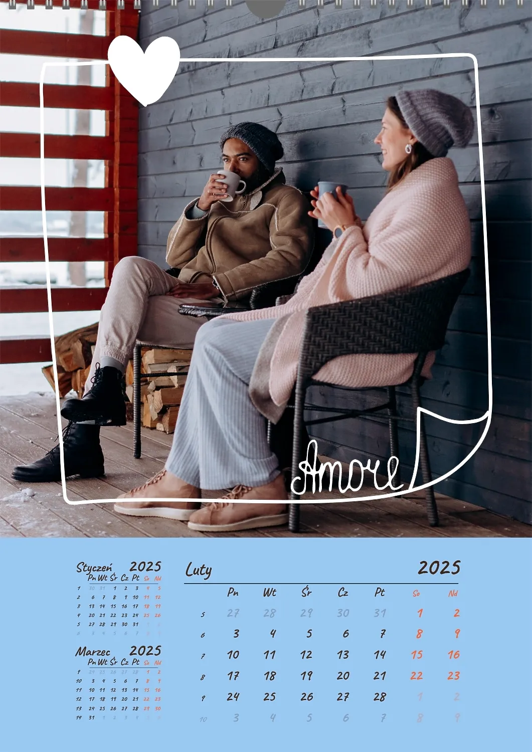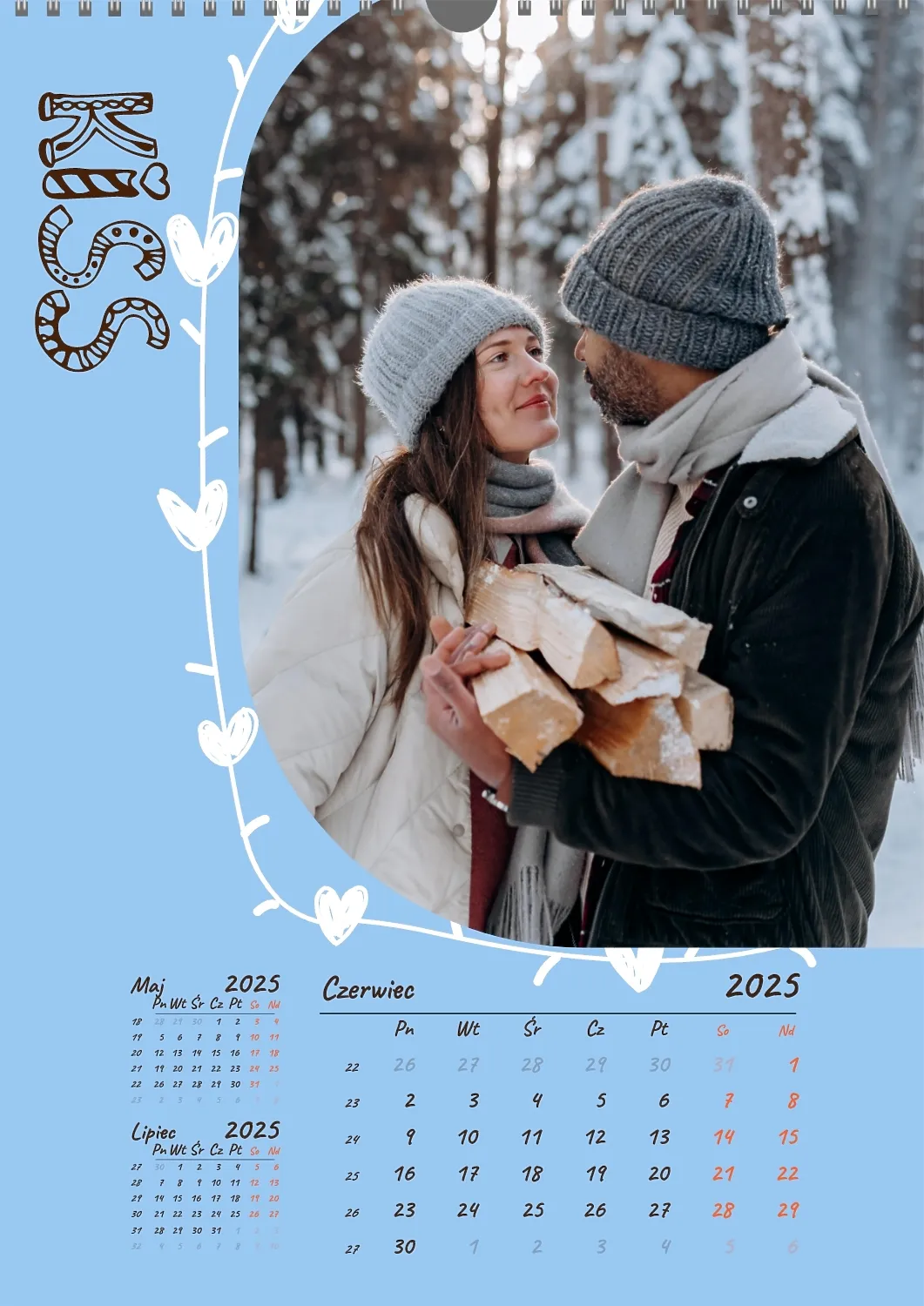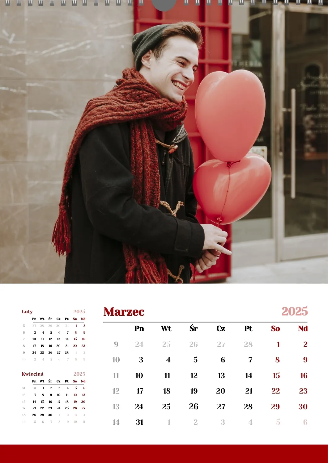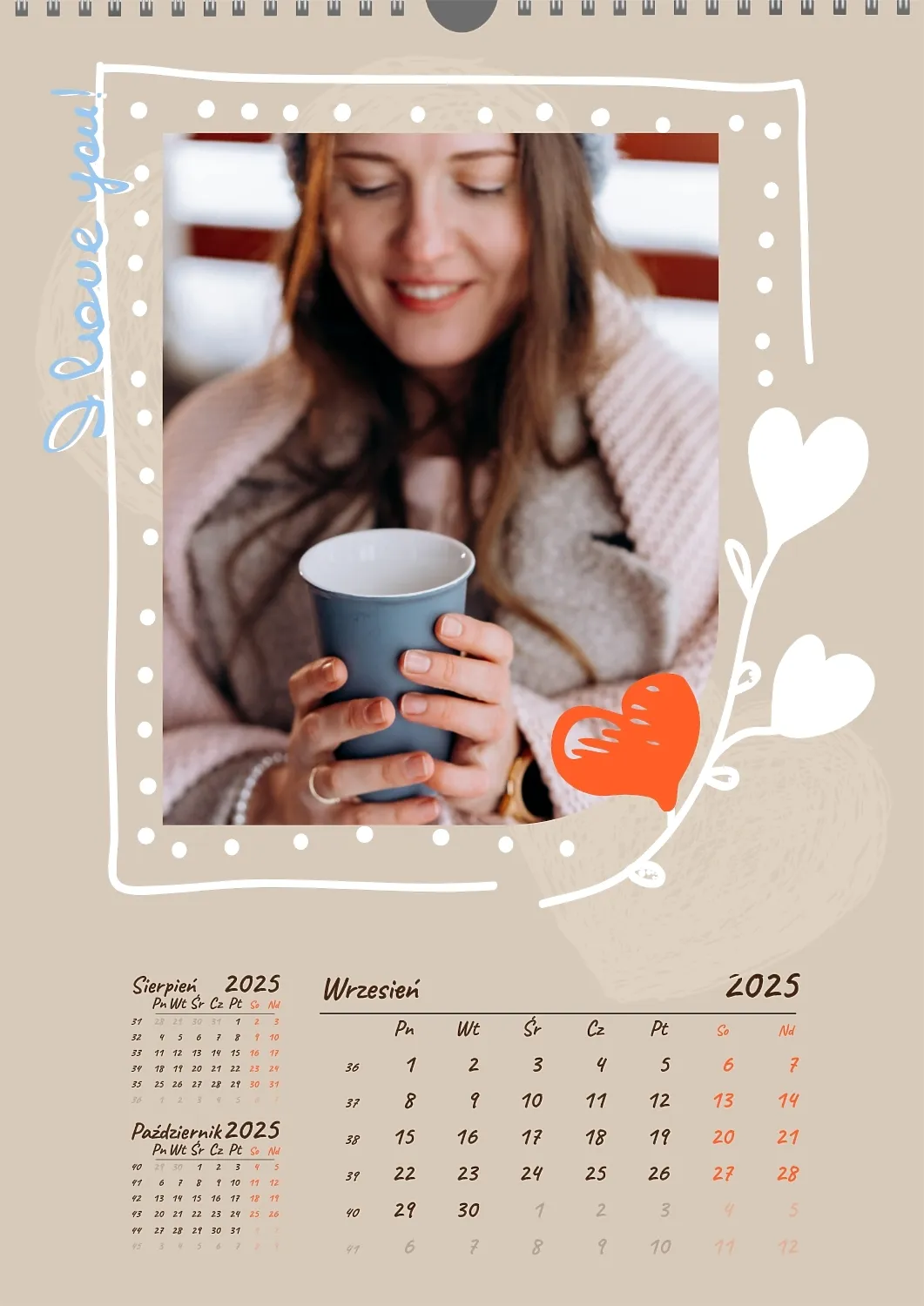 Darmowy szablon kalendarza z romantyczną sesją zdjęciową dla miłośników . Utwórz układ DIY w kreatorze kalendarzy online.