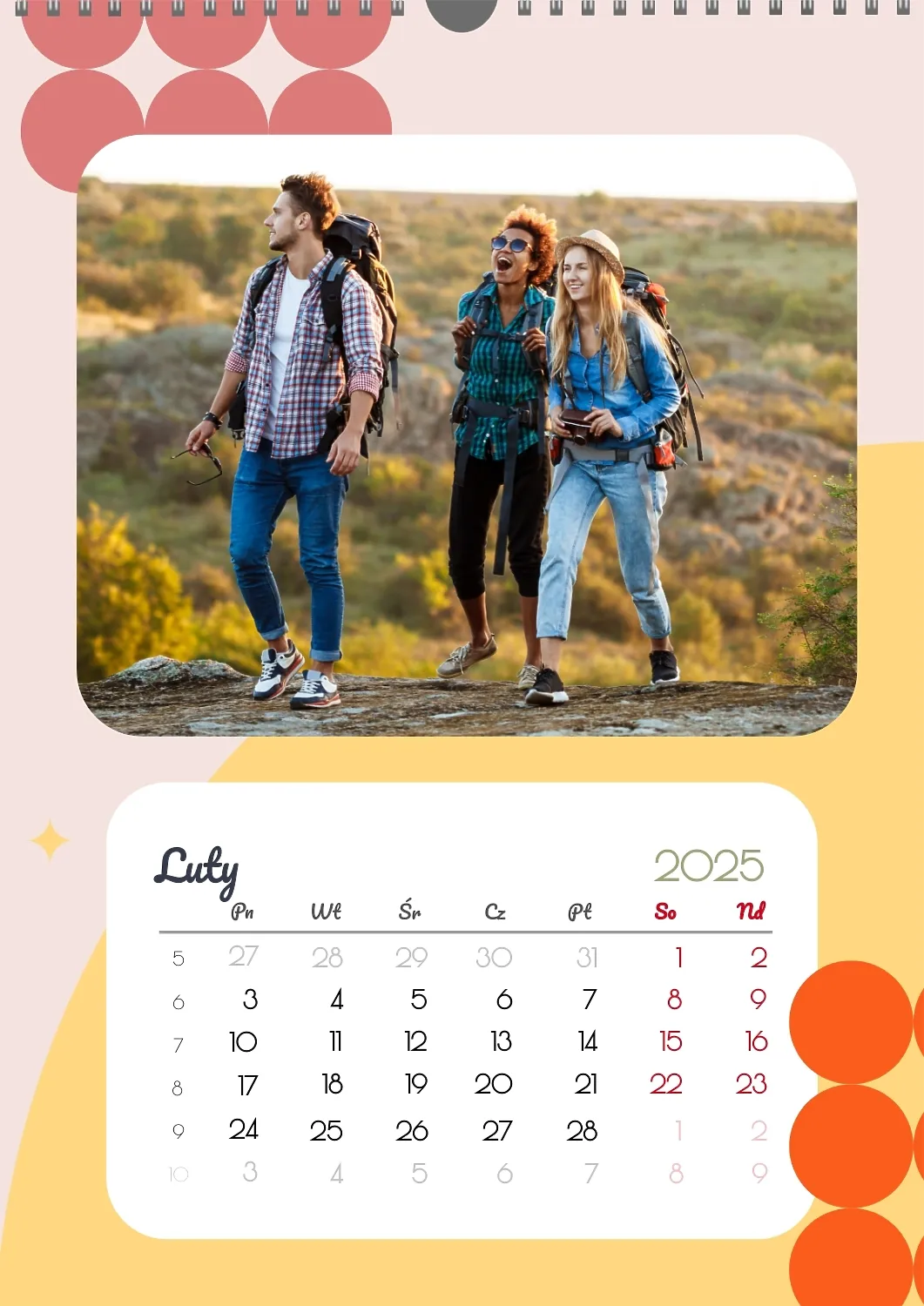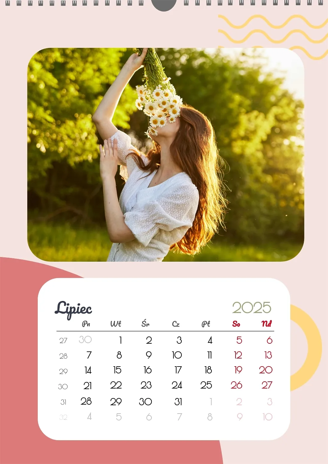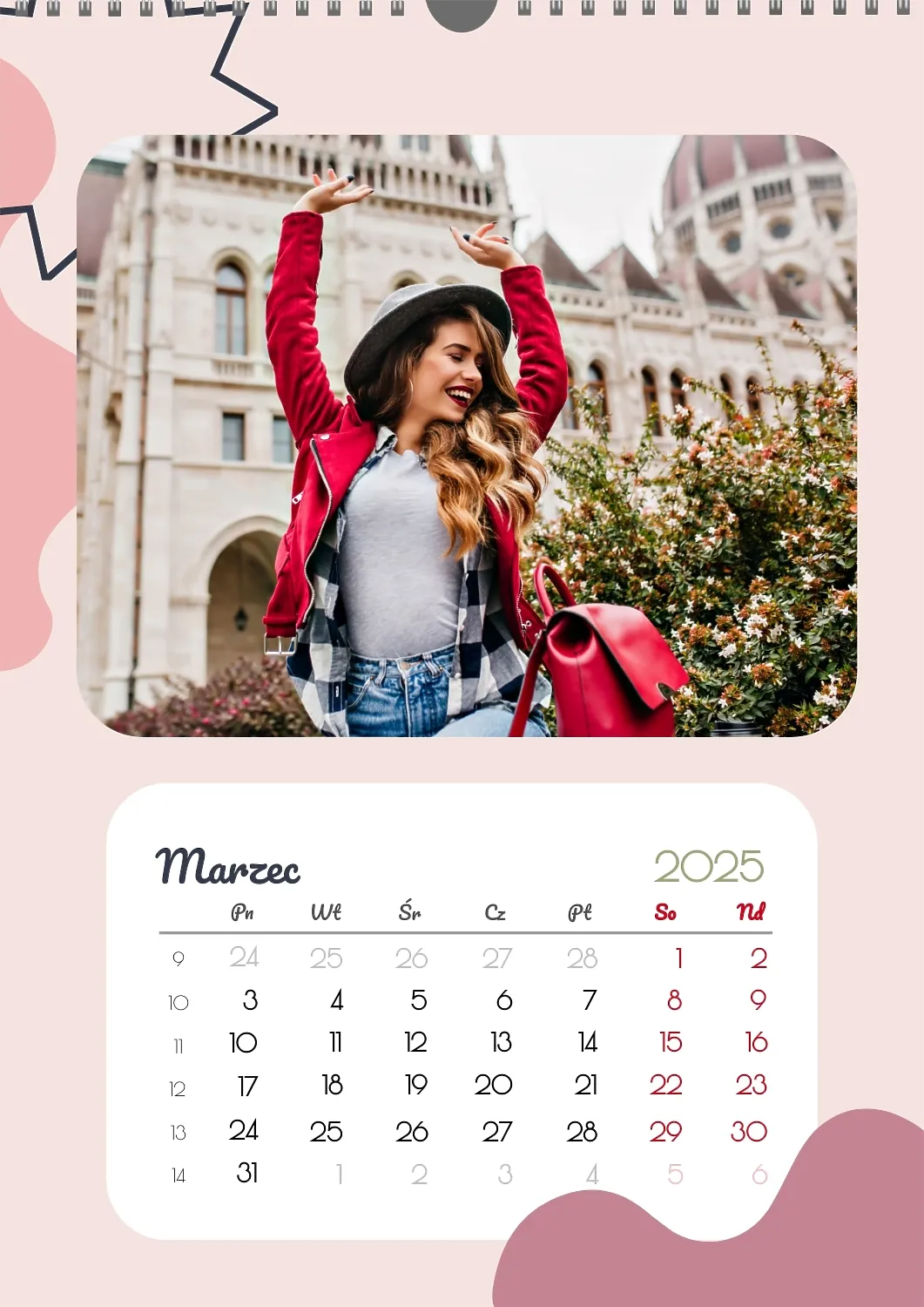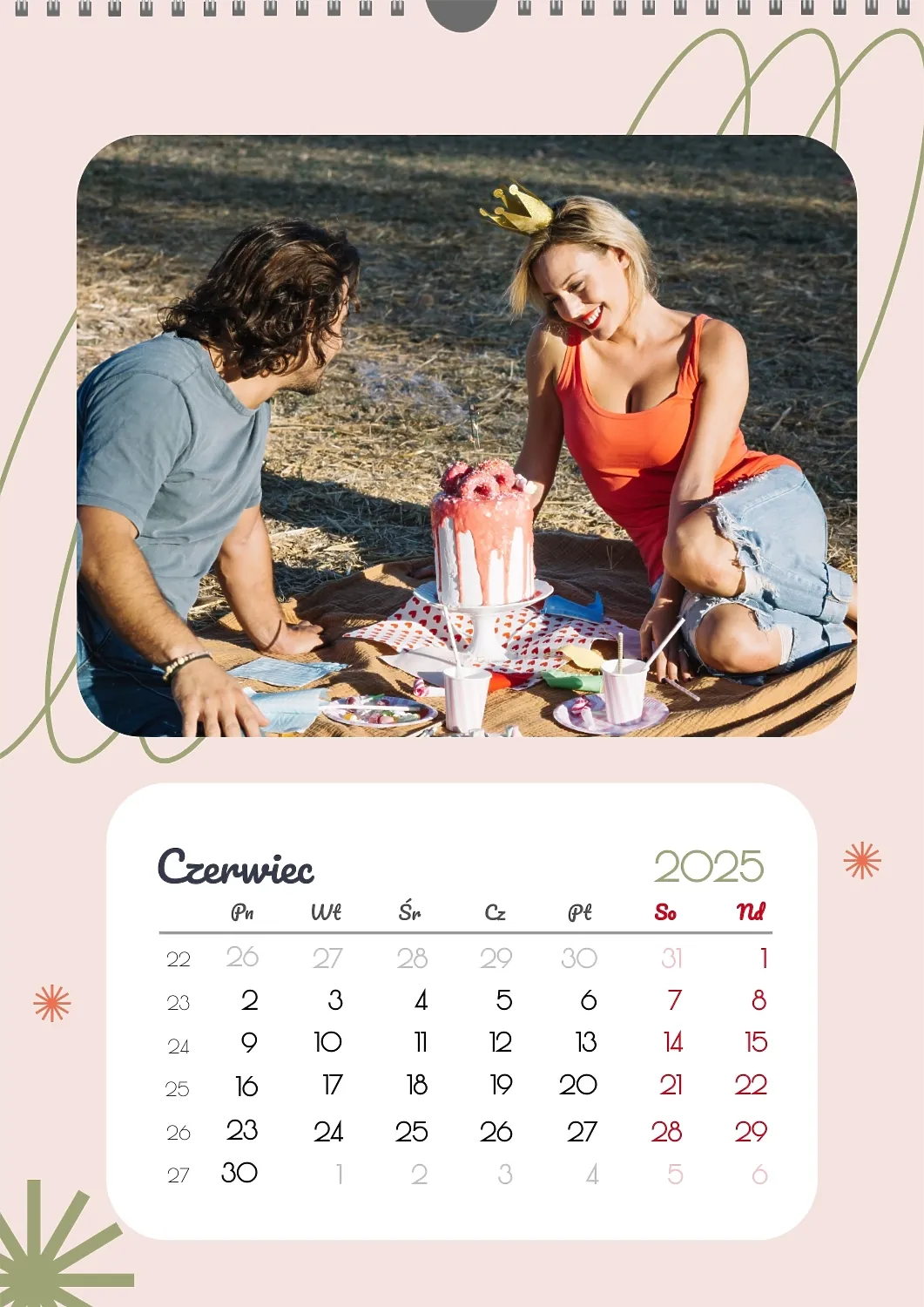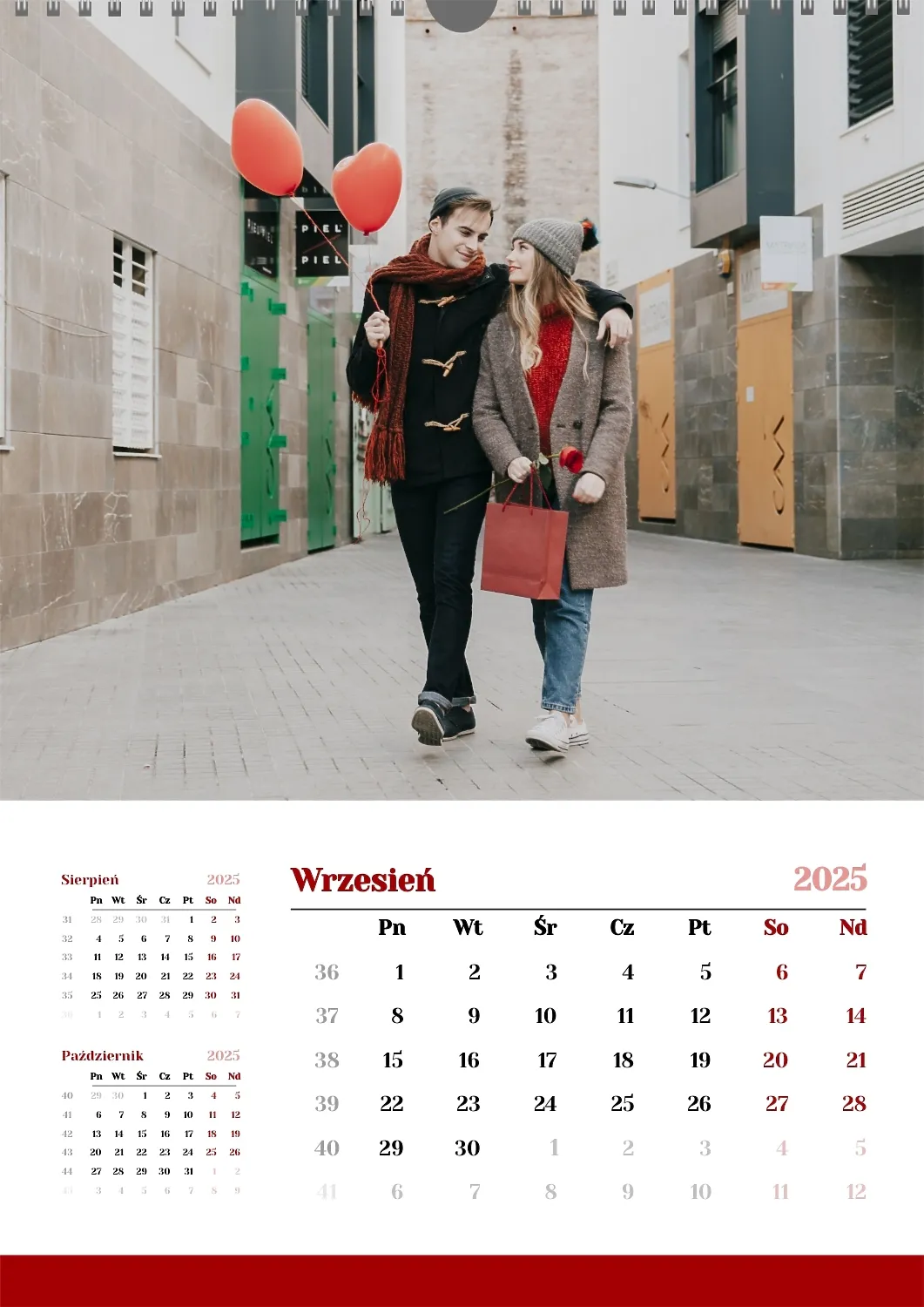 Darmowy szablon kalendarza z romantyczną sesją zdjęciową dla miłośników . Utwórz układ DIY w kreatorze kalendarzy online.