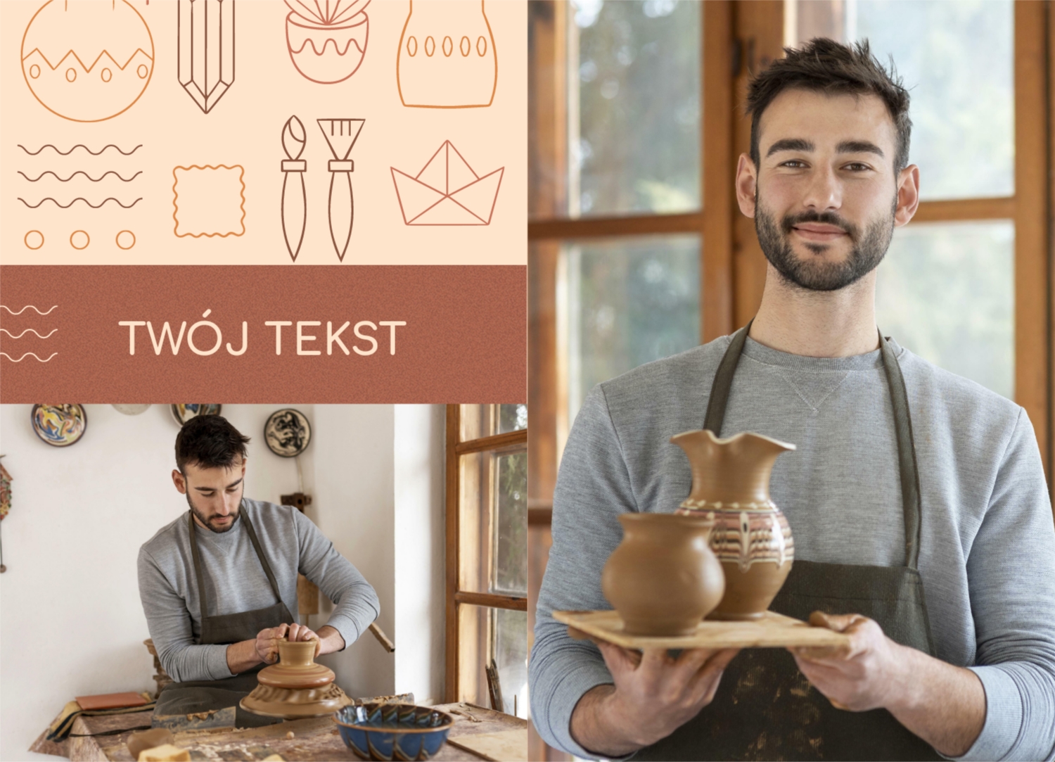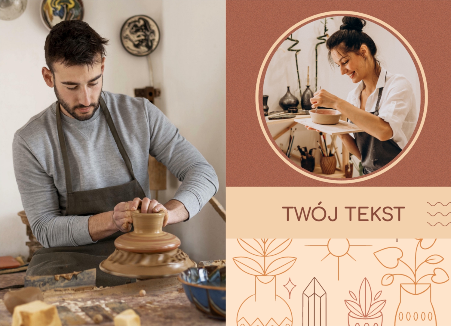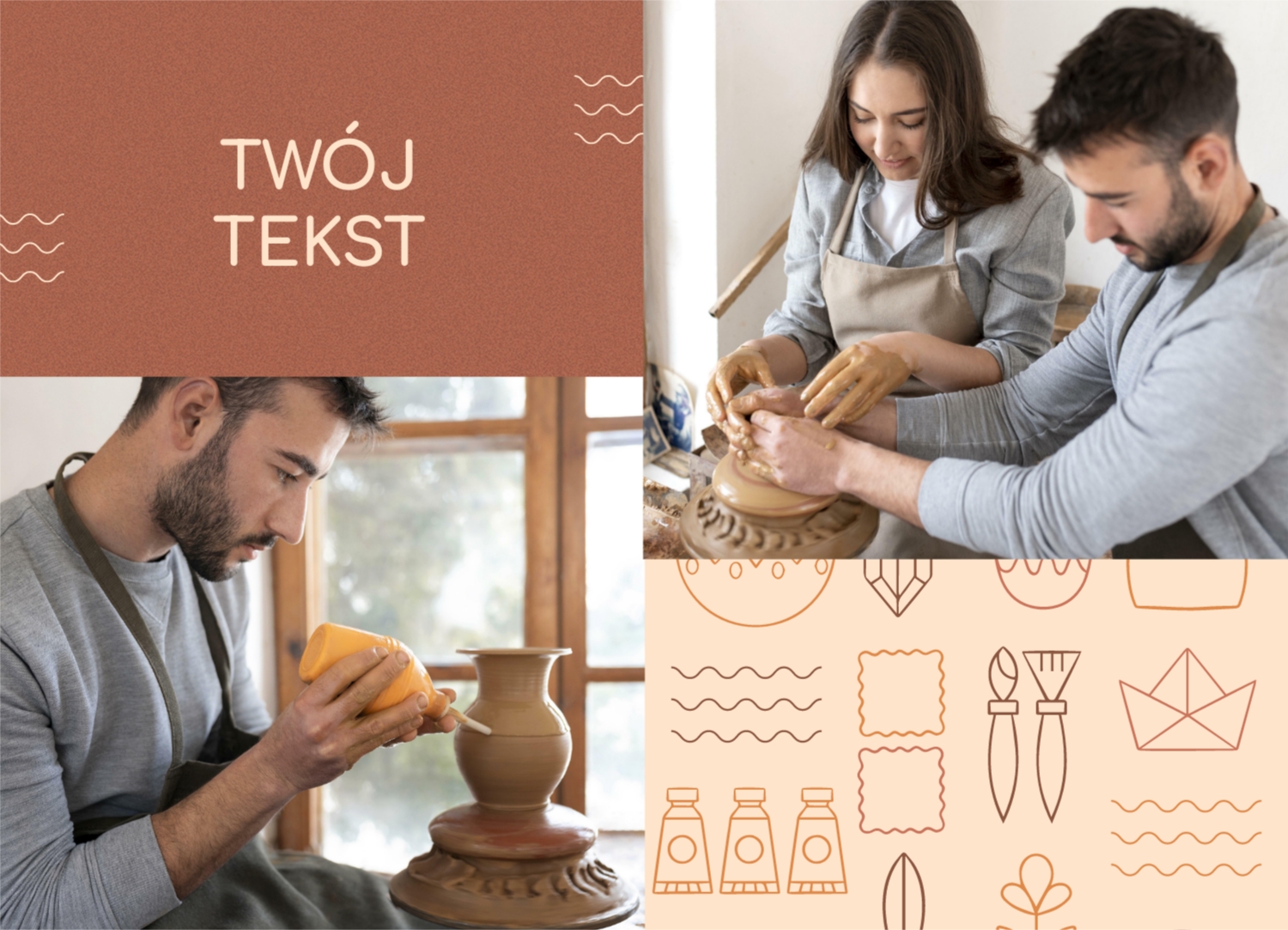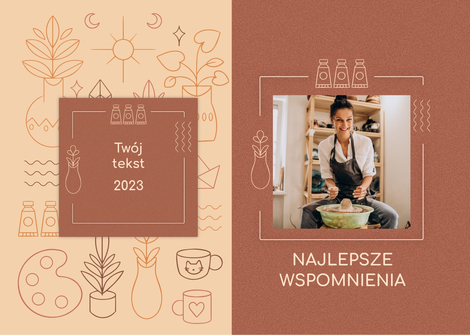 Szablon fotoksiążki "najlepsze wspomnienia z garncarstwa" stanowi idealną podstawę do zapisywania i tworzenia niezapomnianych chwil związanych z biegłością w garncarstwie. Ten album jest wyjątkową formą, która pozwala uosabiać twoją miłość do gliny i tworzyć unikalne dzieła ceramiczne. Na okładce fotoksiążki sugerujemy umieszczenie obrazu Twojego ulubionego arcydzieła ceramiki. Może to być kubek, wazon lub dowolny inny przedmiot, który stworzyłeś własnymi rękami. Wokół tego obrazu można dodać elementy dekoracyjne w stylu garncarskim, takie jak gliniane wzory lub fragmenty nieosłoniętej glazury. Aby nadać osobisty akcent w fotoksiążce, możesz dołączyć ujęcia dłoni podczas pracy, podkreślając, jak twórczy jest proces garncarski. Te zdjęcia mogą ilustrować etapy tworzenia, od kawałka gliny po gotowy produkt. Korzystając z tego szablonu w naszym kreatorze online, możesz stworzyć unikalną pionową książkę fotograficzną w twardej oprawie, która będzie nie tylko cennym artefaktem w Twojej kolekcji, ale także wspaniałym prezentem dla przyjaciół i bliskich, dzieląc się z nimi najlepszymi chwilami ze świata garncarstwa.