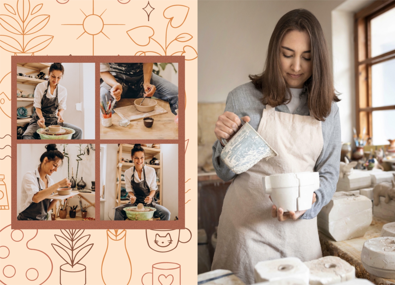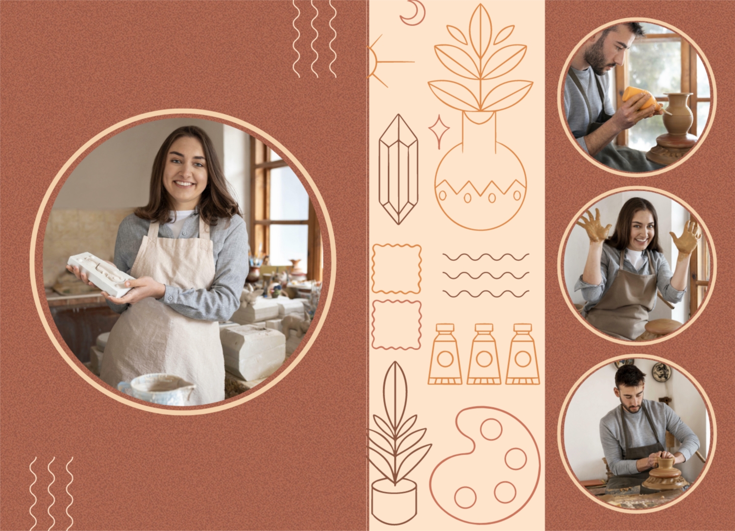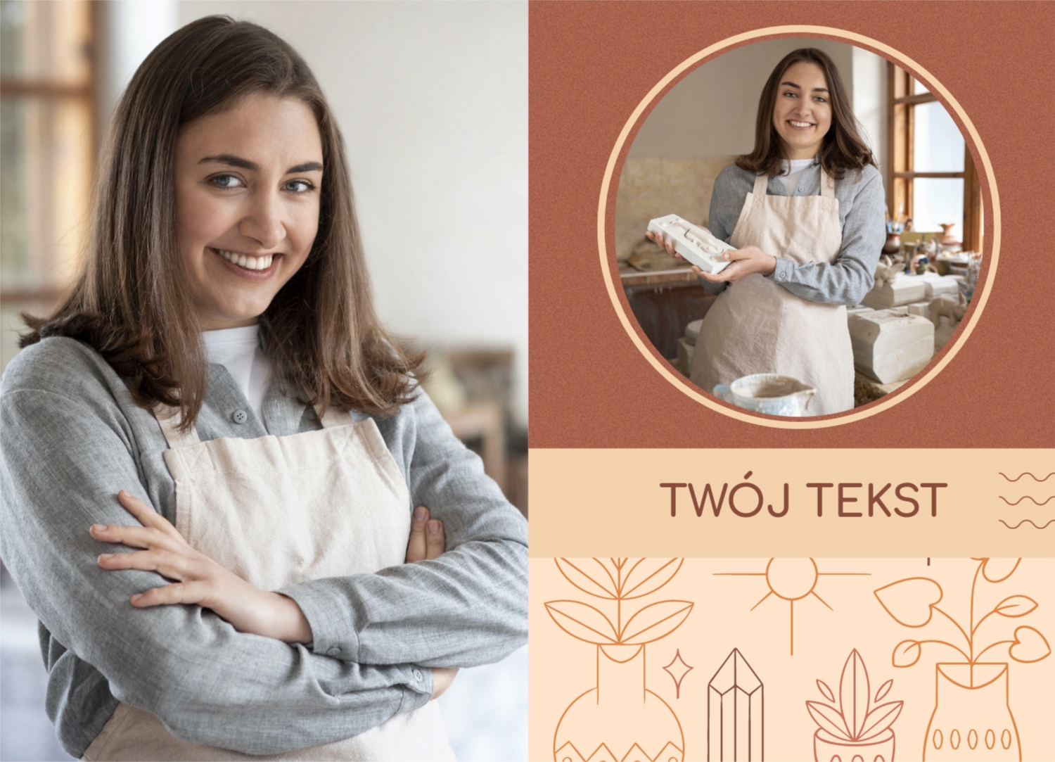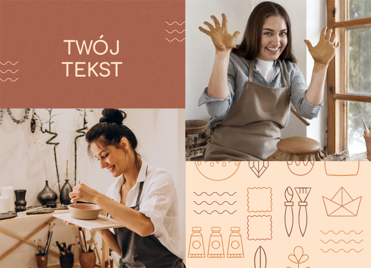 Szablon fotoksiążki "najlepsze wspomnienia z garncarstwa" stanowi idealną podstawę do zapisywania i tworzenia niezapomnianych chwil związanych z biegłością w garncarstwie. Ten album jest wyjątkową formą, która pozwala uosabiać twoją miłość do gliny i tworzyć unikalne dzieła ceramiczne. Na okładce fotoksiążki sugerujemy umieszczenie obrazu Twojego ulubionego arcydzieła ceramiki. Może to być kubek, wazon lub dowolny inny przedmiot, który stworzyłeś własnymi rękami. Wokół tego obrazu można dodać elementy dekoracyjne w stylu garncarskim, takie jak gliniane wzory lub fragmenty nieosłoniętej glazury. Aby nadać osobisty akcent w fotoksiążce, możesz dołączyć ujęcia dłoni podczas pracy, podkreślając, jak twórczy jest proces garncarski. Te zdjęcia mogą ilustrować etapy tworzenia, od kawałka gliny po gotowy produkt. Korzystając z tego szablonu w naszym kreatorze online, możesz stworzyć unikalną pionową książkę fotograficzną w twardej oprawie, która będzie nie tylko cennym artefaktem w Twojej kolekcji, ale także wspaniałym prezentem dla przyjaciół i bliskich, dzieląc się z nimi najlepszymi chwilami ze świata garncarstwa.