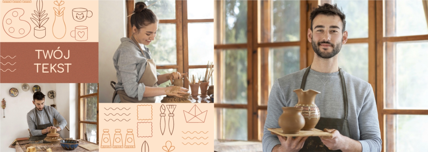 Szablon fotoksiążki "najlepsze wspomnienia z mistrzowskiej klasy garncarskiej" stanowi idealną podstawę do zapisywania i tworzenia niezapomnianych chwil związanych z mistrzowską ceramiką. Ten album jest wyjątkową formą, która pozwala uosabiać twoją miłość do gliny i tworzyć unikalne dzieła ceramiczne. Na okładce fotoksiążki sugerujemy umieszczenie obrazu Twojego ulubionego arcydzieła ceramiki. Może to być kubek, wazon lub dowolny inny przedmiot, który stworzyłeś własnymi rękami. Wokół tego obrazu można dodać elementy dekoracyjne w stylu garncarskim, takie jak gliniane wzory lub fragmenty nieosłoniętej glazury. Nie zapomnij dołączyć do fotoksiążki zdjęć z chwilami, w których pracowałeś razem z przyjaciółmi lub rodziną. Doda Twojej książce ciepła i wartości emocjonalnej, odzwierciedlając Twoją pasję do garncarstwa i bliskie relacje z bliskimi. Korzystając z tego szablonu w naszym kreatorze online, możesz stworzyć wyjątkową, szeroką fotoksiążkę w twardej oprawie, która stanie się nie tylko cennym artefaktem w Twojej kolekcji, ale także wspaniałym prezentem dla przyjaciół i bliskich, dzieląc się z nimi najlepszymi chwilami ze świata garncarstwa.