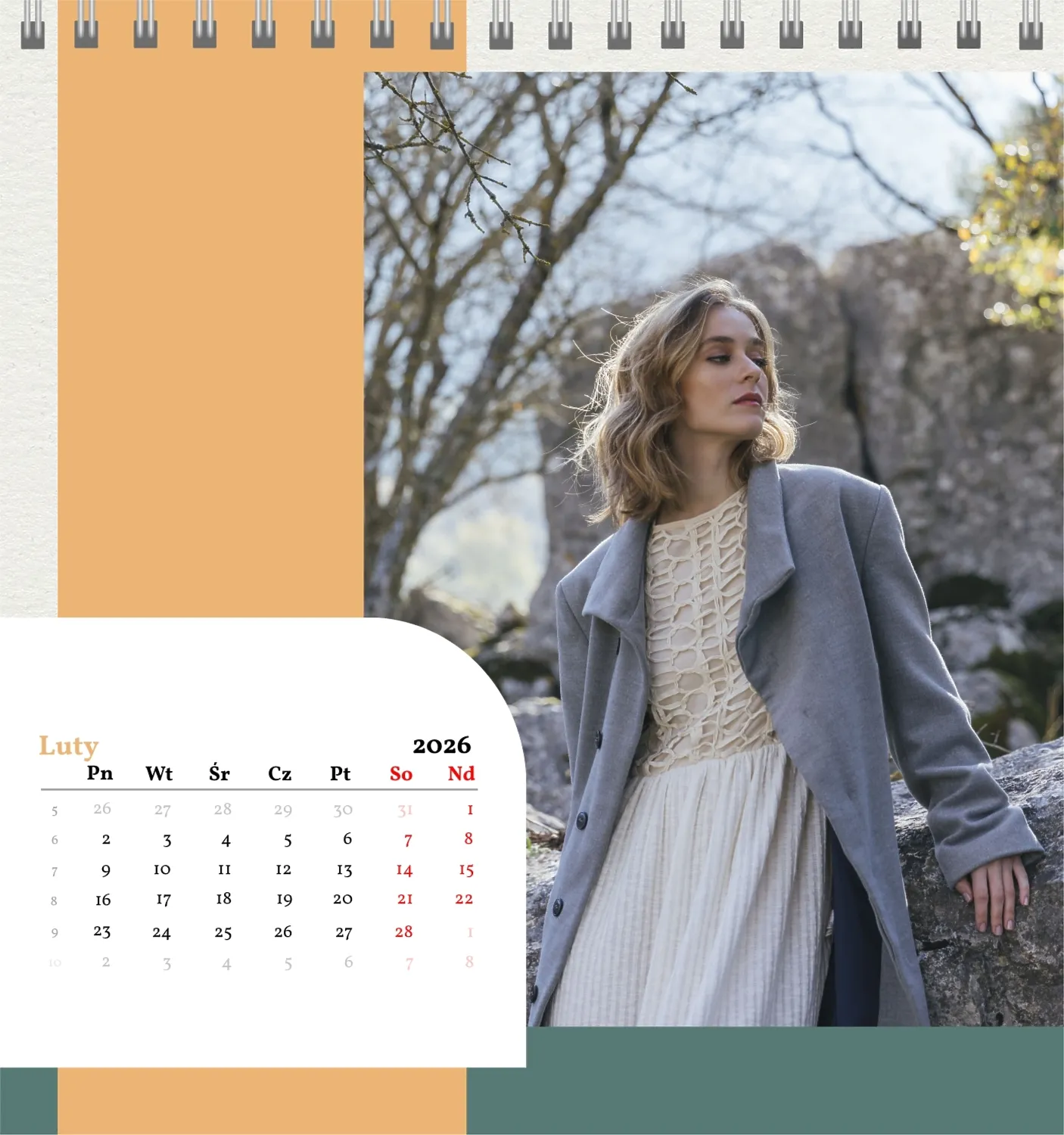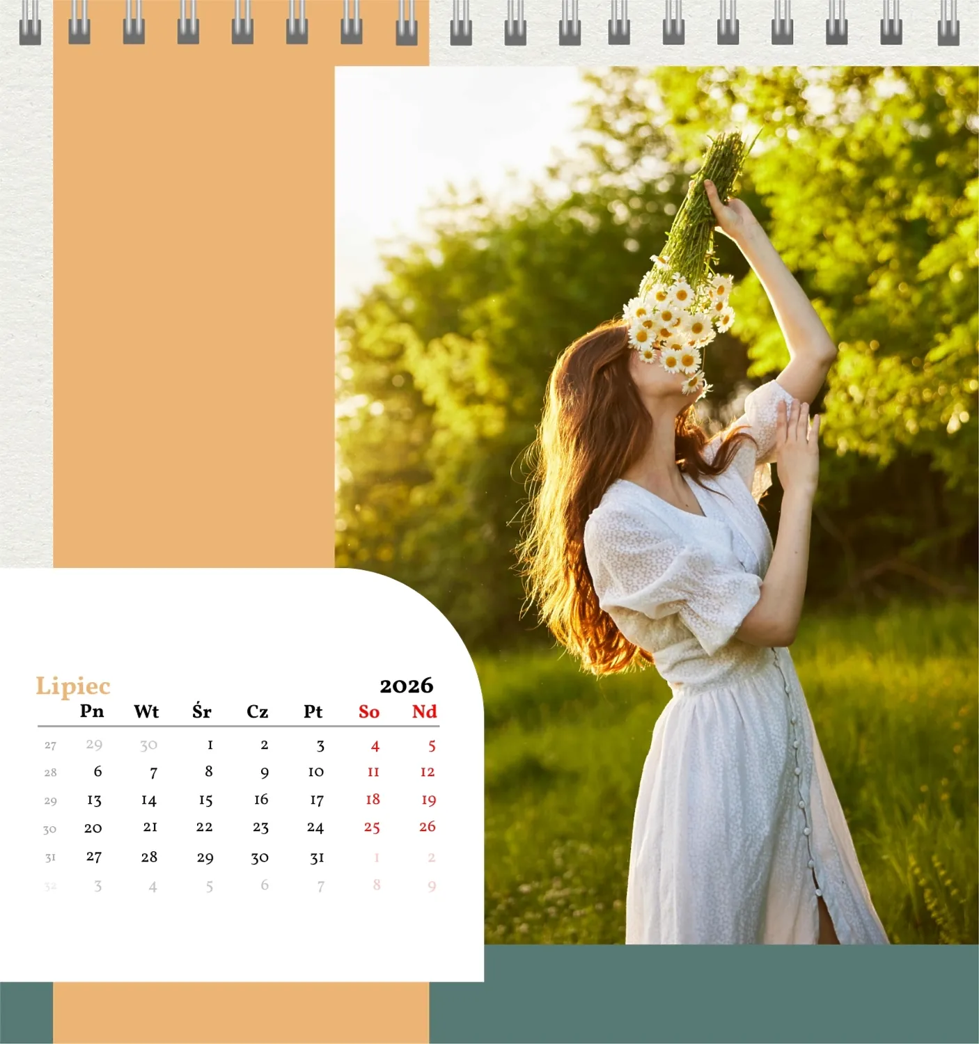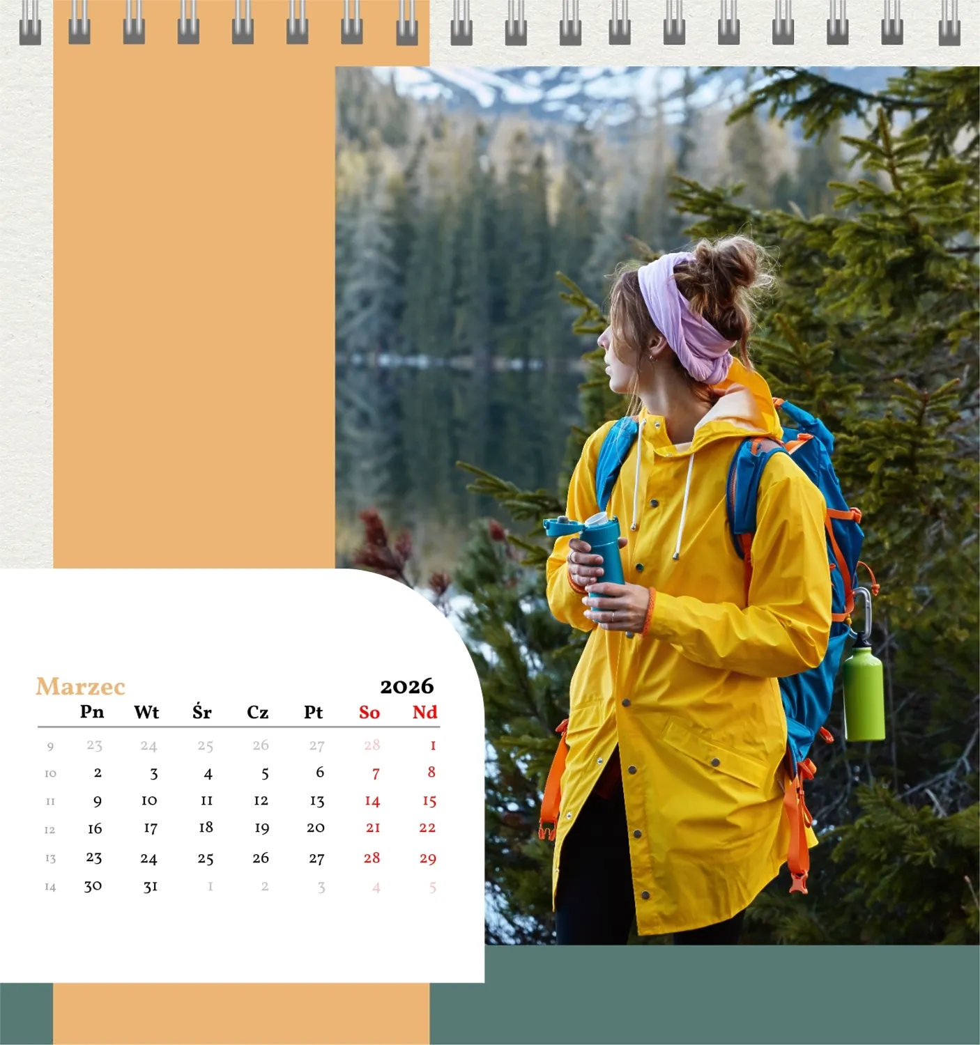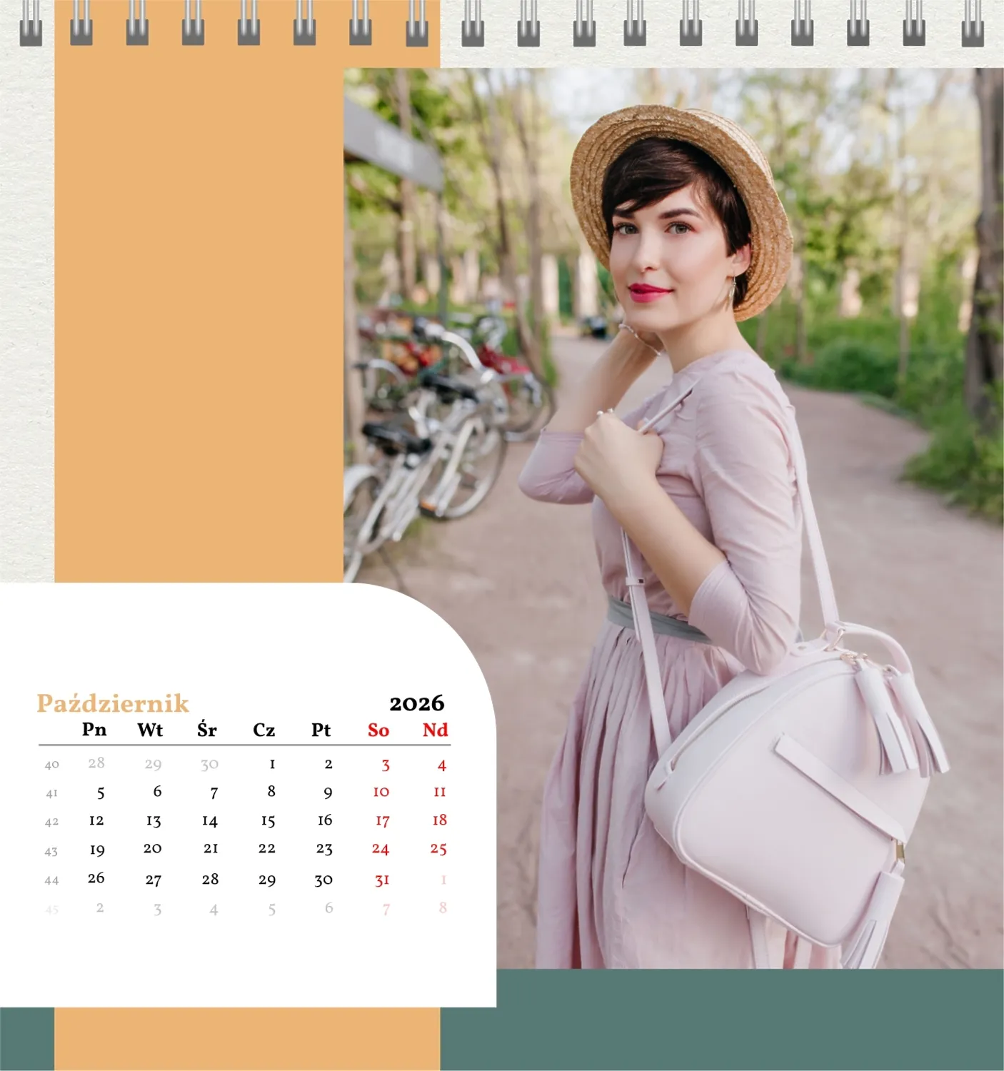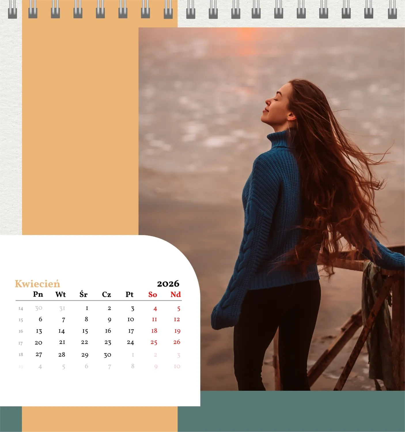 Ten urzekający szablon kalendarza pionowego "najlepsze wspomnienia" ma zainspirować Cię do stworzenia wyjątkowego i delikatnego kalendarza pełnego ciepłych chwil twojego życia. Dostępny dla Ciebie kreator online zapewnia niesamowite możliwości kreatywności. Będziesz mógł łatwo dostosować każdy szczegół, aby kalendarz był naprawdę twój. Szeroki wybór kolorów i czcionek w kreatorze pozwala podkreślić atmosferę każdego miesiąca. Wybierz odcienie, które wywołują w Tobie te same uczucia, które chcesz zachować w pamięci. Stworzenie unikalnego kalendarza biurkowego w kreatorze online to nie tylko proces, ale także możliwość ożywienia najlepszych wspomnień ze szczególną czułością i ciepłem. Niech ten kalendarz będzie odzwierciedleniem twojej wyjątkowej historii.