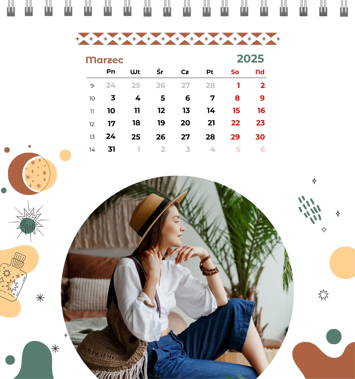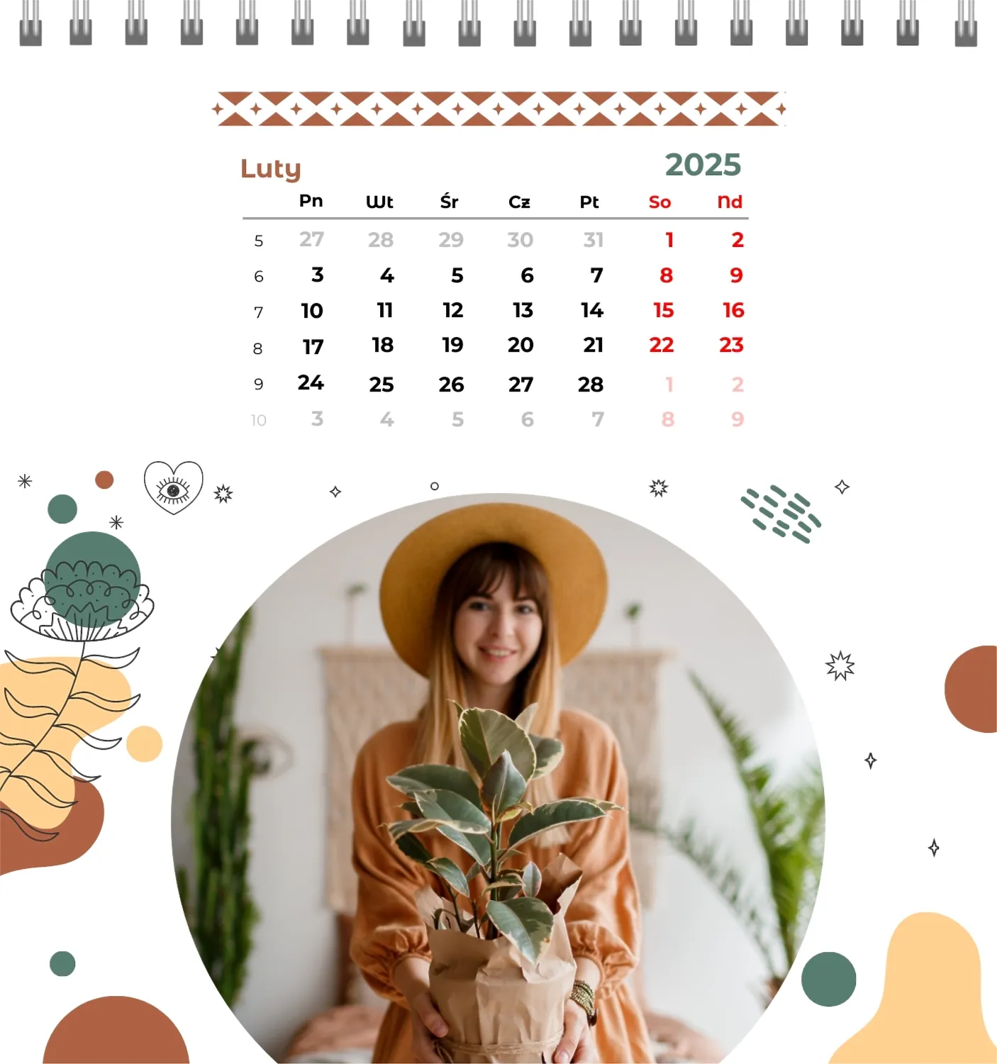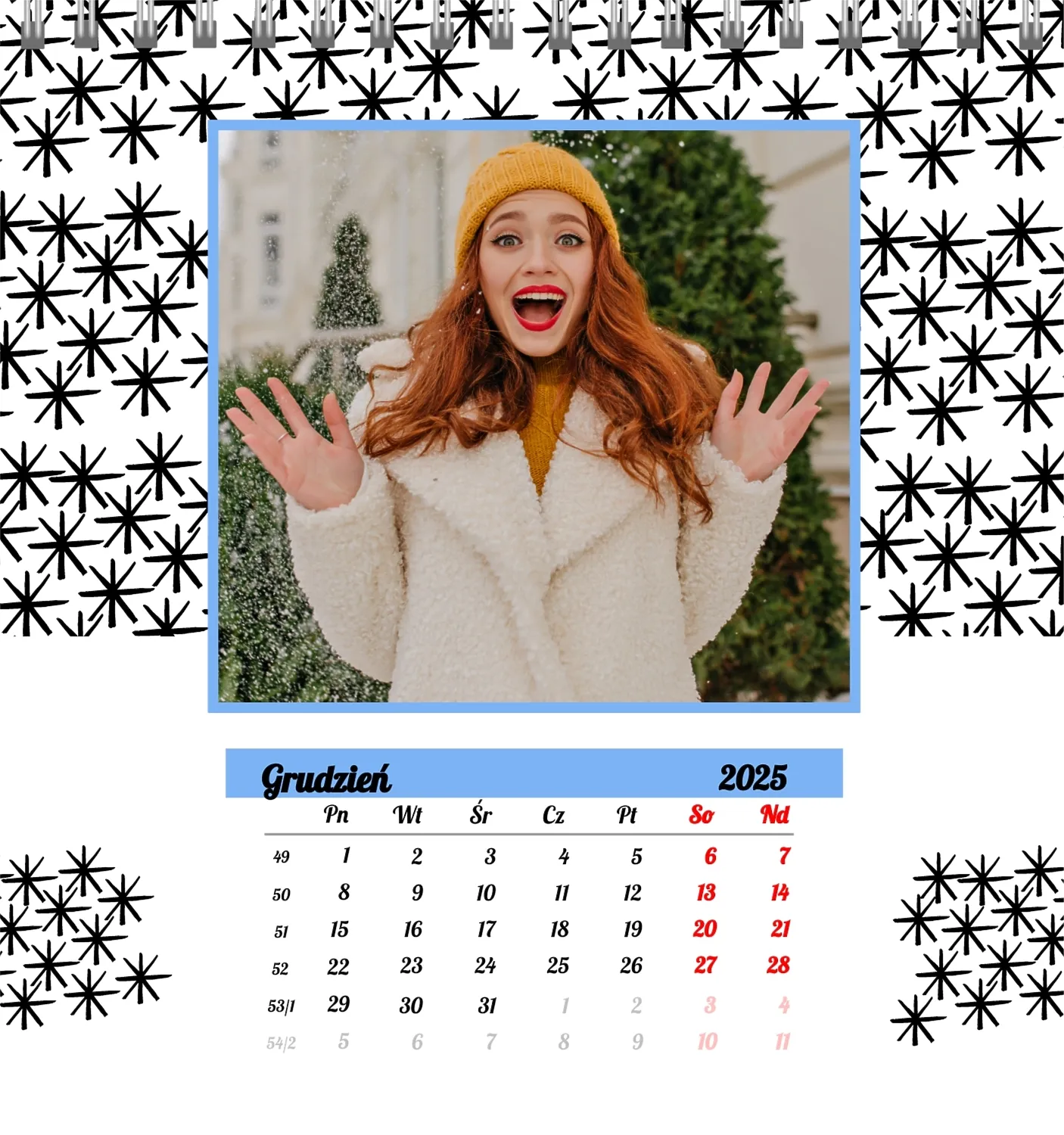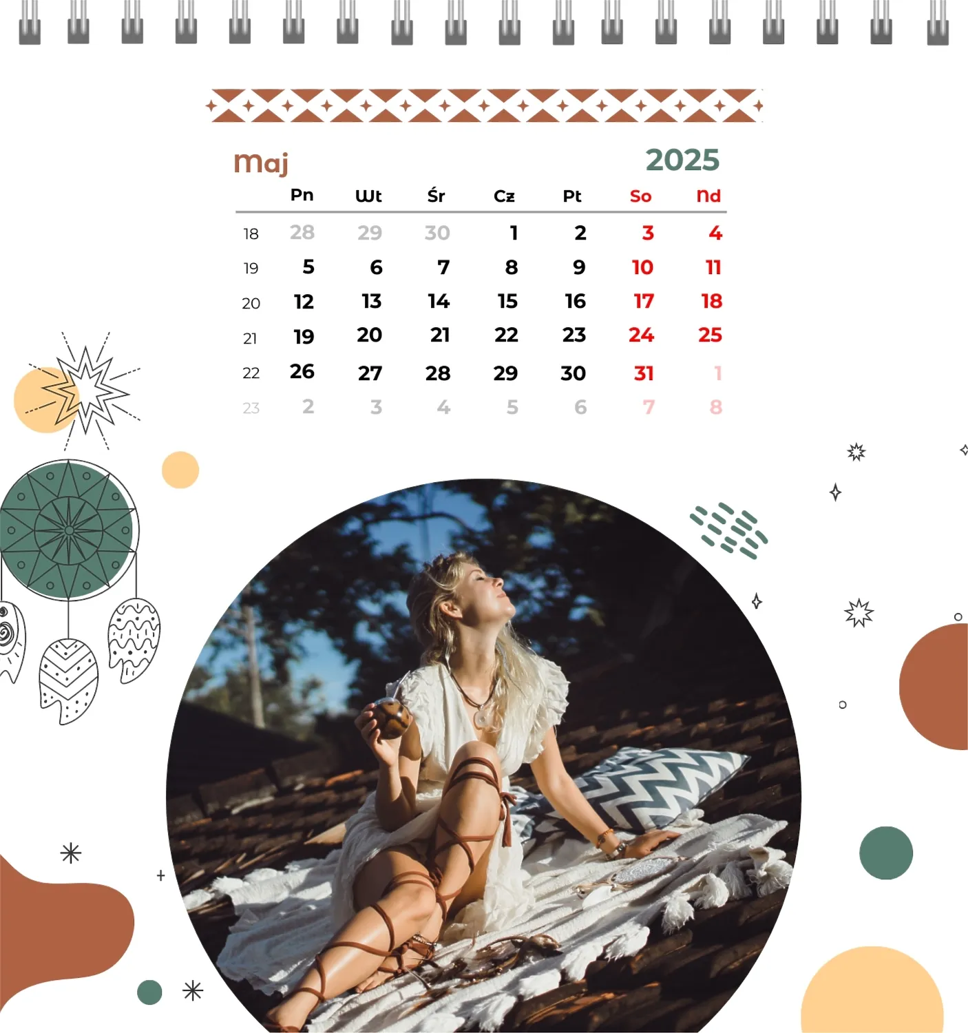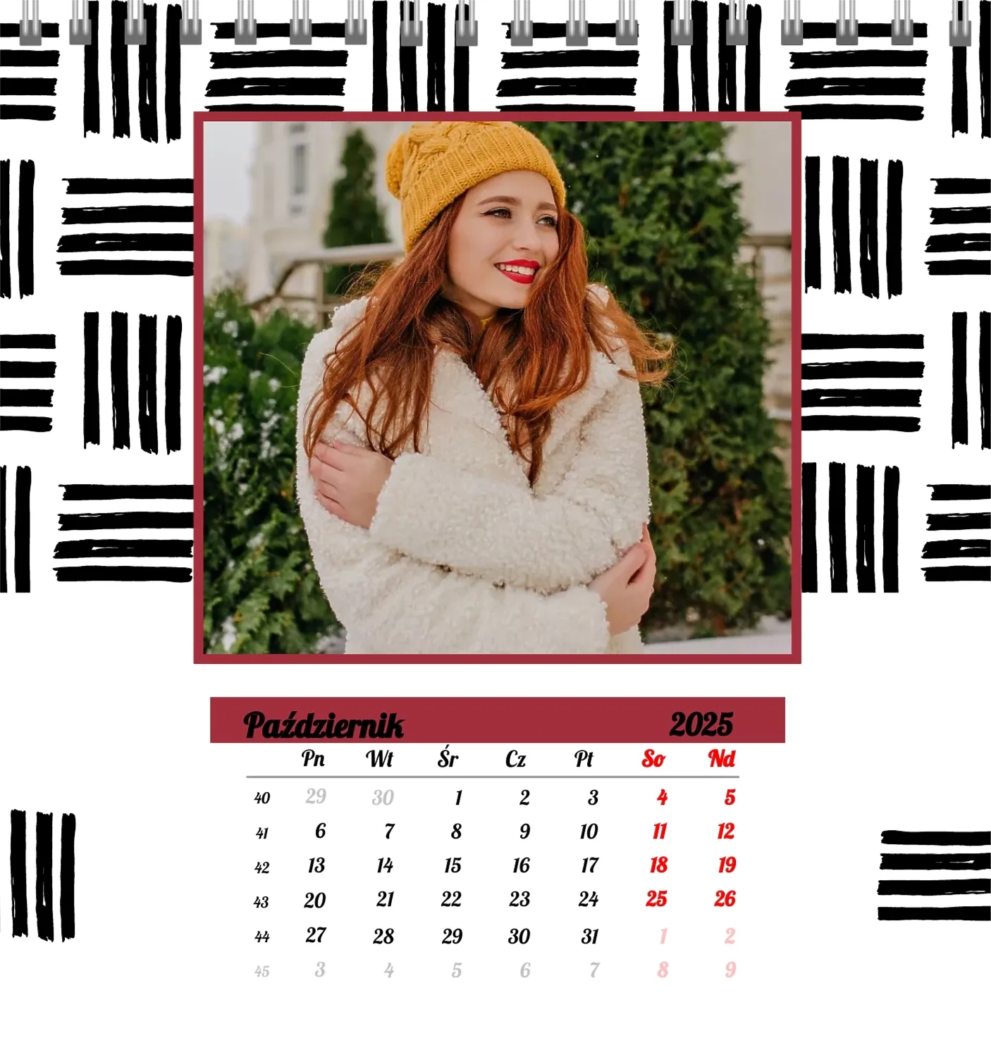 Ten urzekający szablon kalendarza pionowego "najlepsze wspomnienia" ma zainspirować Cię do stworzenia wyjątkowego i delikatnego kalendarza pełnego ciepłych chwil twojego życia. Dostępny dla Ciebie kreator online zapewnia niesamowite możliwości kreatywności. Będziesz mógł łatwo dostosować każdy szczegół, aby kalendarz był naprawdę twój. Szeroki wybór kolorów i czcionek w kreatorze pozwala podkreślić atmosferę każdego miesiąca. Wybierz odcienie, które wywołują w Tobie te same uczucia, które chcesz zachować w pamięci. Stworzenie unikalnego kalendarza biurkowego w kreatorze online to nie tylko proces, ale także możliwość ożywienia najlepszych wspomnień ze szczególną czułością i ciepłem. Niech ten kalendarz będzie odzwierciedleniem twojej wyjątkowej historii.