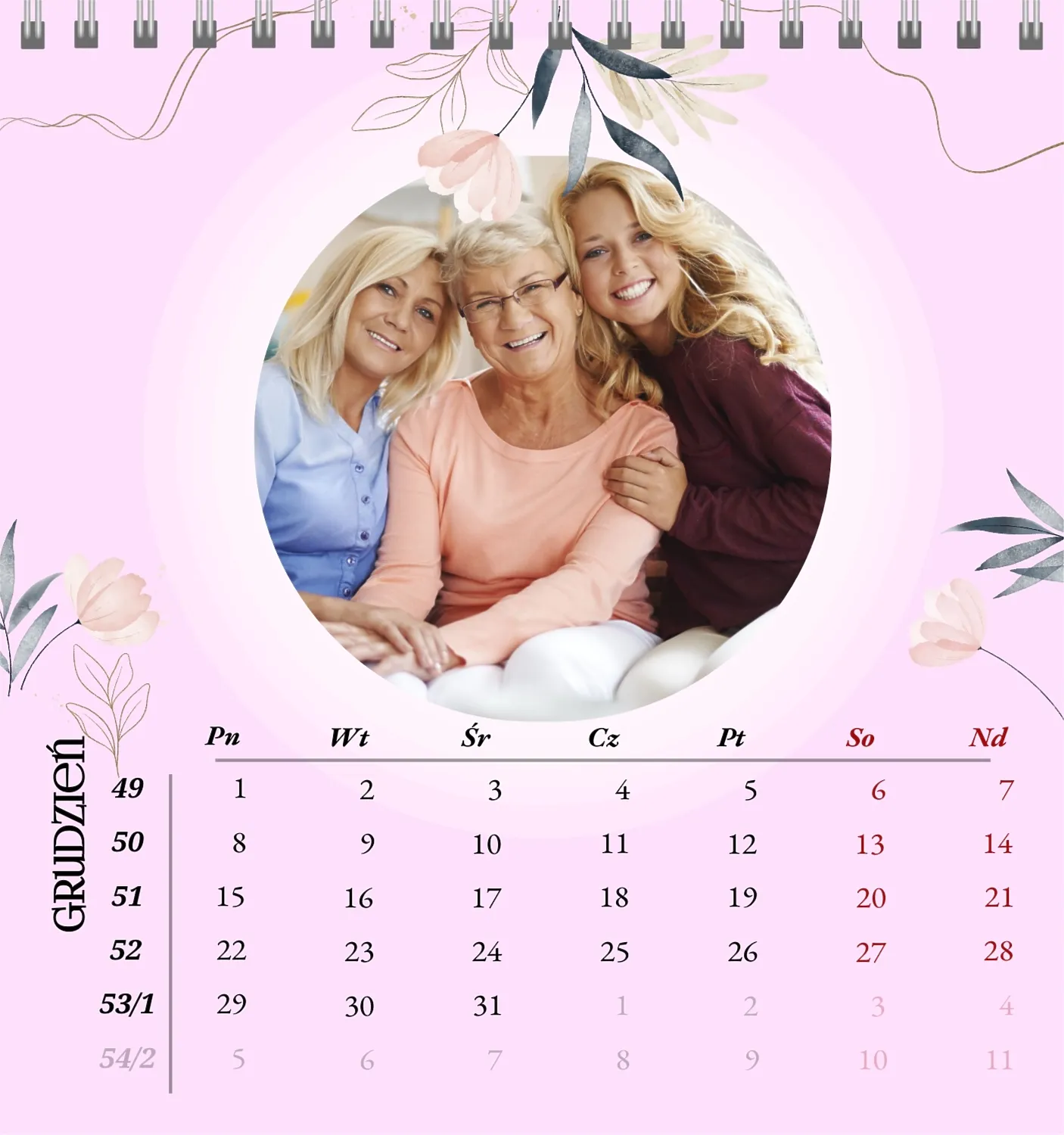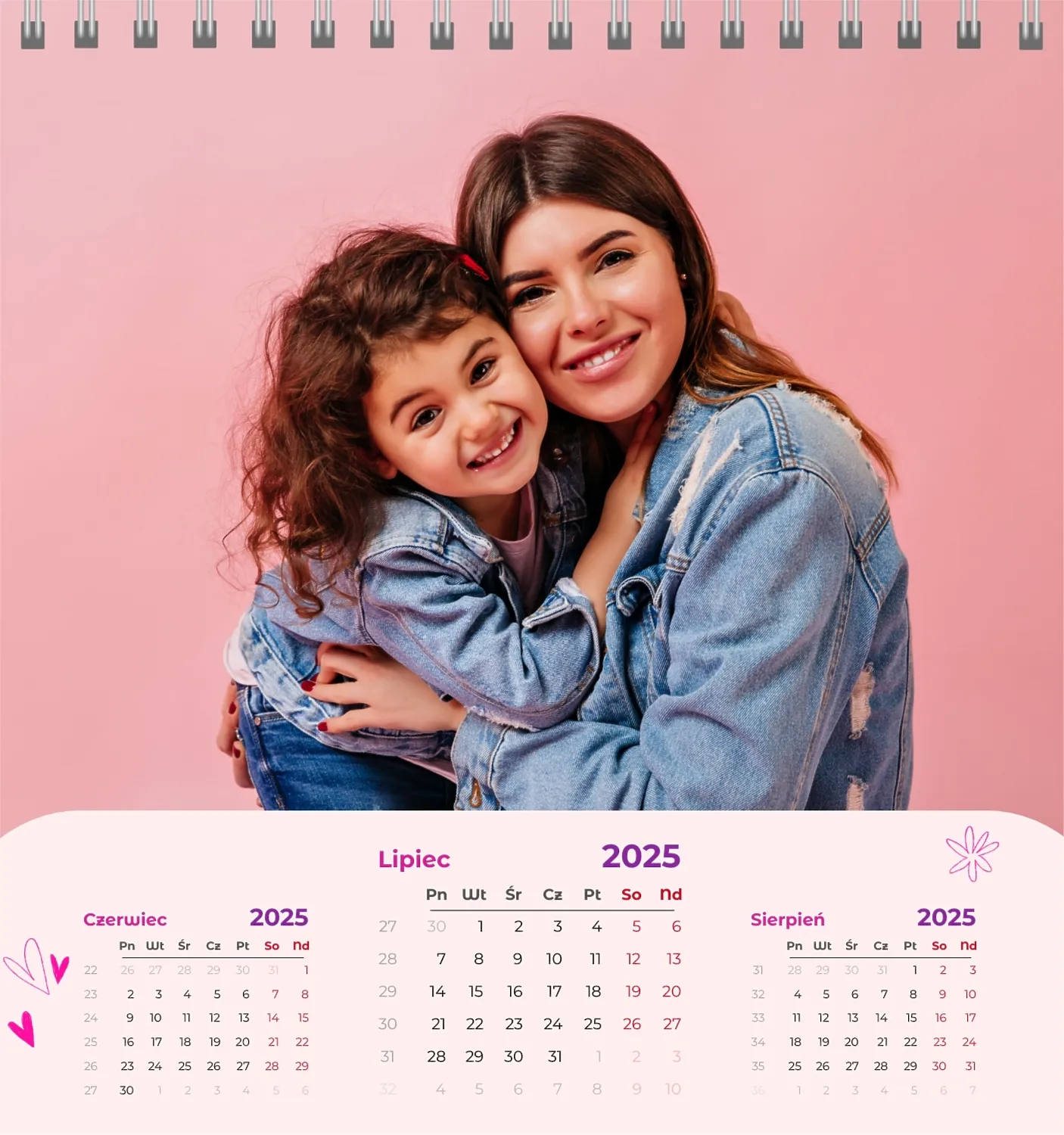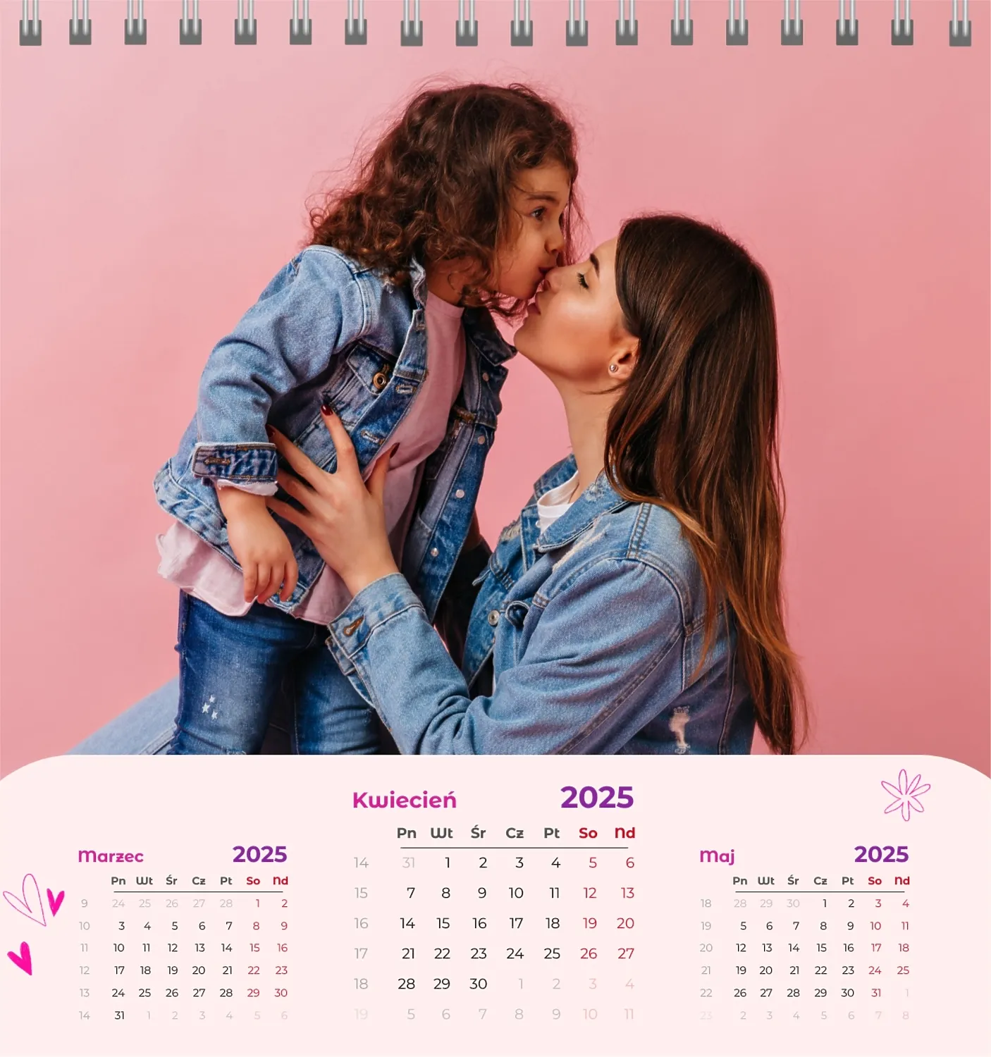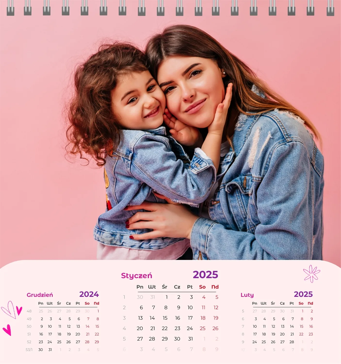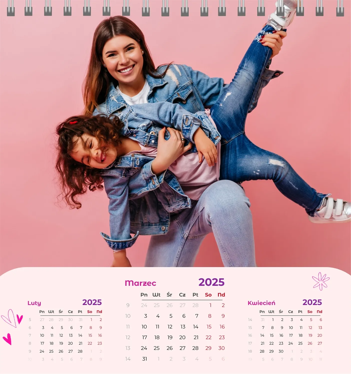 Szablon kalendarza biurkowego nasza rodzina w naszym kreatorze online zapewnia wyjątkową możliwość stworzenia spersonalizowanego kalendarza, który w pełni odzwierciedla twoje życie rodzinne. Kreator online zapewnia szerokie możliwości edycji, umożliwiając dostosowanie wyglądu kalendarza do własnych preferencji. Możesz łatwo zmieniać gamę kolorów, wybierać różne tła i czcionki, aby kalendarz był jak najbardziej spersonalizowany. Ponadto szablon "nasza rodzina" zawiera miejsce na zapisy i plany. Możesz łatwo dodawać codzienne zadania, plany tygodniowe i inne notatki, aby kalendarz był nie tylko kolorowy, ale także praktycznym narzędziem do zarządzania czasem. W ten sposób możesz stworzyć unikalny kalendarz biurkowy "nasza rodzina", który będzie nie tylko wygodnym organizerem, ale także wypełnionym ciepłymi rodzinnymi wspomnieniami.