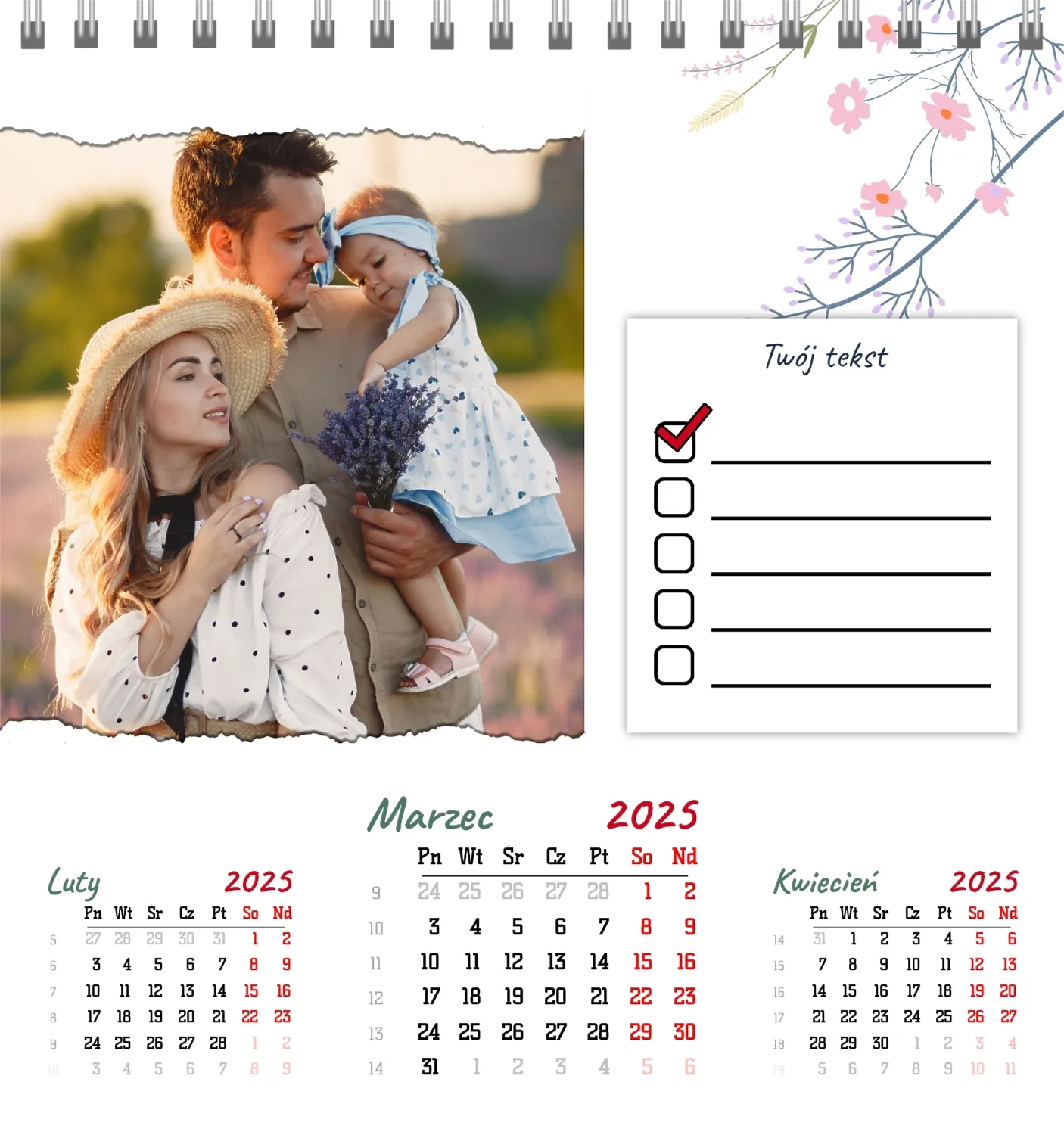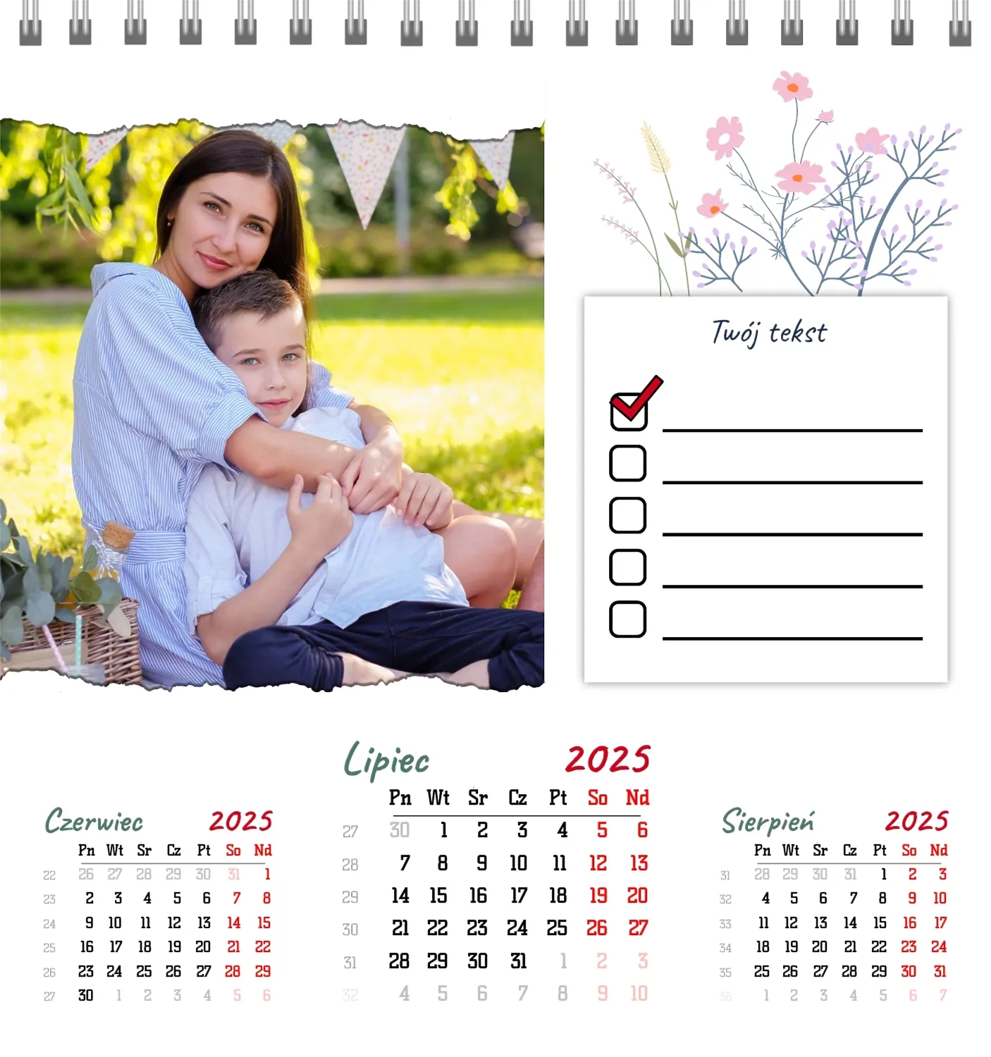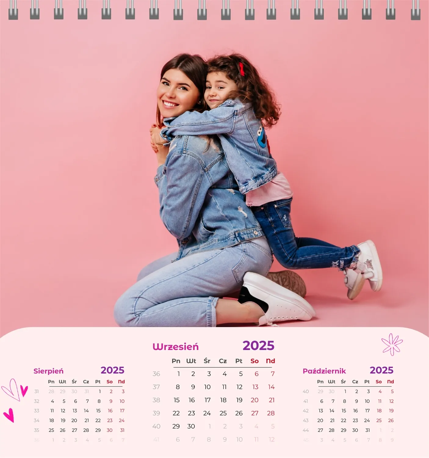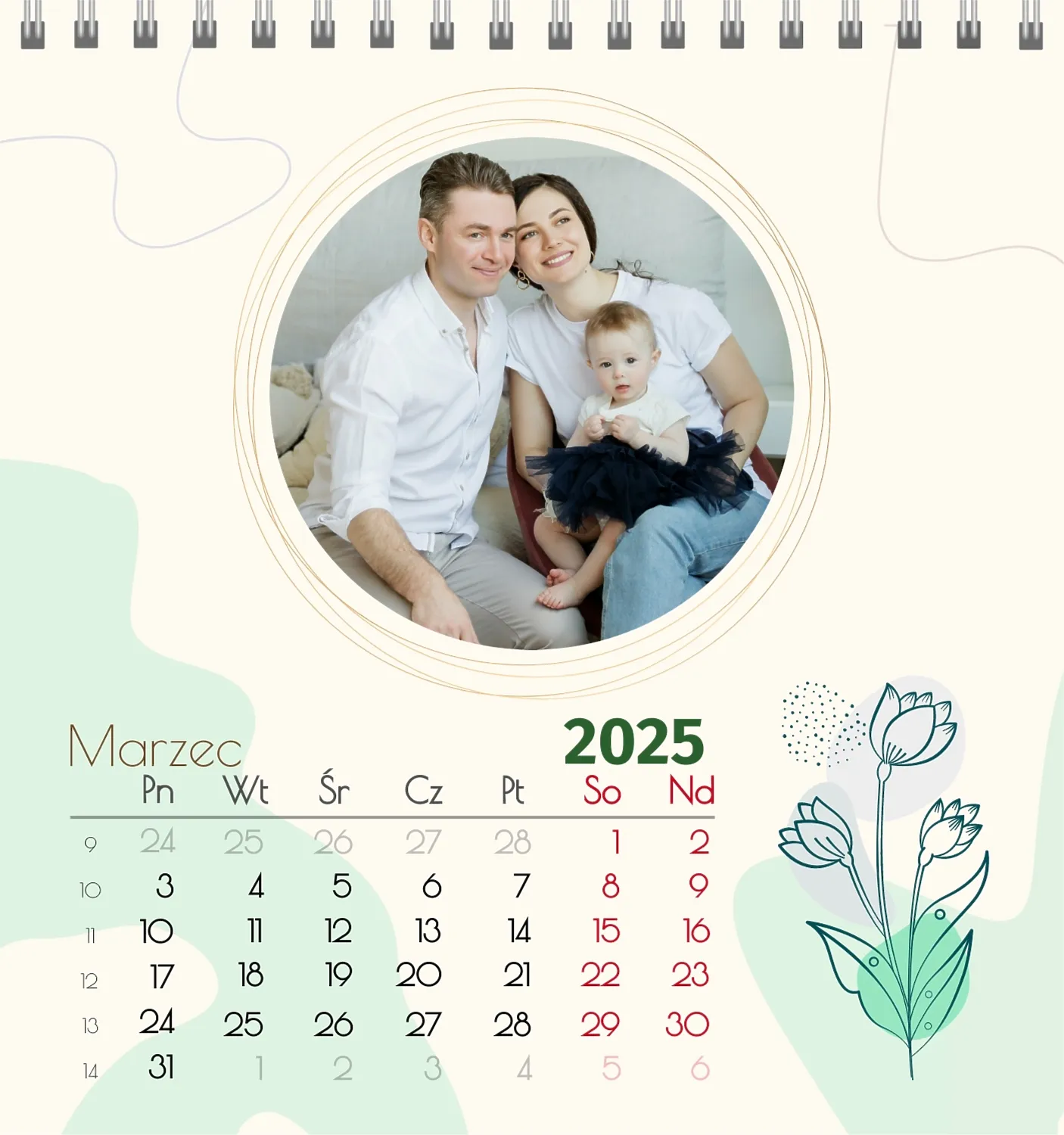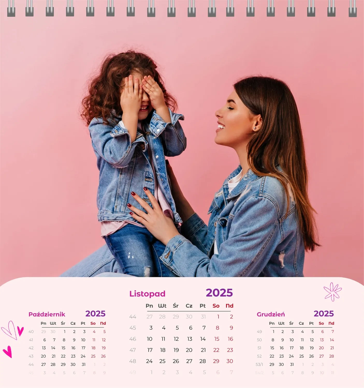 Szablon kalendarza biurkowego nasza rodzina w naszym kreatorze online zapewnia wyjątkową możliwość stworzenia spersonalizowanego kalendarza, który w pełni odzwierciedla twoje życie rodzinne. Kreator online zapewnia szerokie możliwości edycji, umożliwiając dostosowanie wyglądu kalendarza do własnych preferencji. Możesz łatwo zmieniać gamę kolorów, wybierać różne tła i czcionki, aby kalendarz był jak najbardziej spersonalizowany. Ponadto szablon "nasza rodzina" zawiera miejsce na zapisy i plany. Możesz łatwo dodawać codzienne zadania, plany tygodniowe i inne notatki, aby kalendarz był nie tylko kolorowy, ale także praktycznym narzędziem do zarządzania czasem. W ten sposób możesz stworzyć unikalny kalendarz biurkowy "nasza rodzina", który będzie nie tylko wygodnym organizerem, ale także wypełnionym ciepłymi rodzinnymi wspomnieniami.