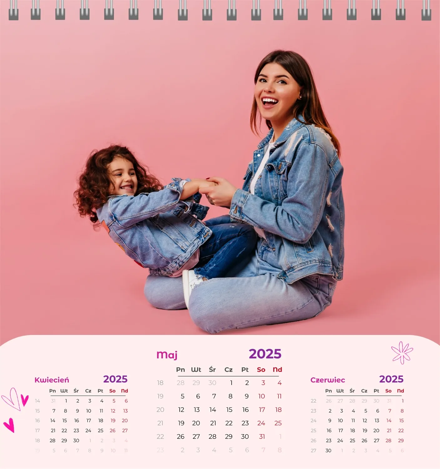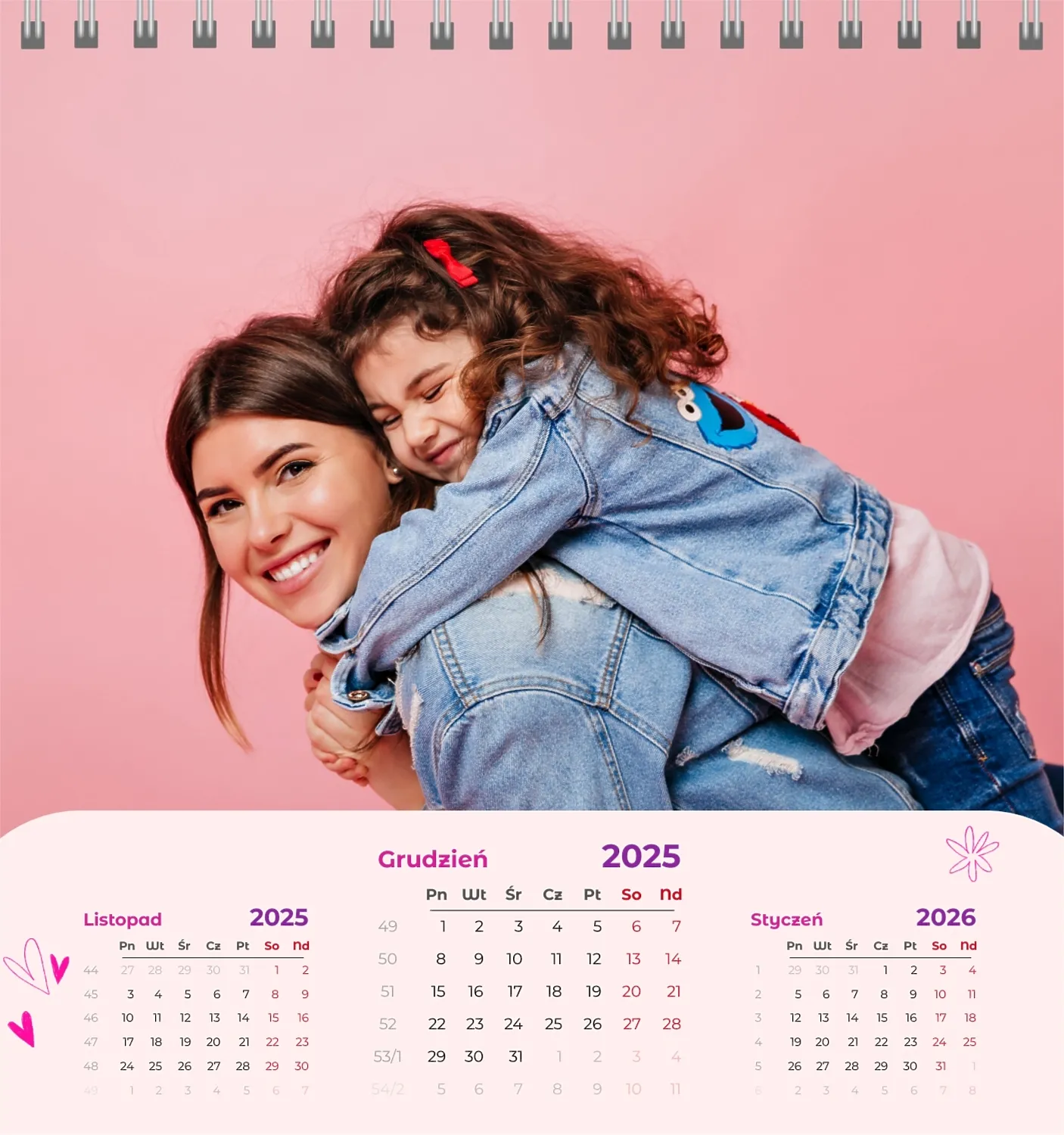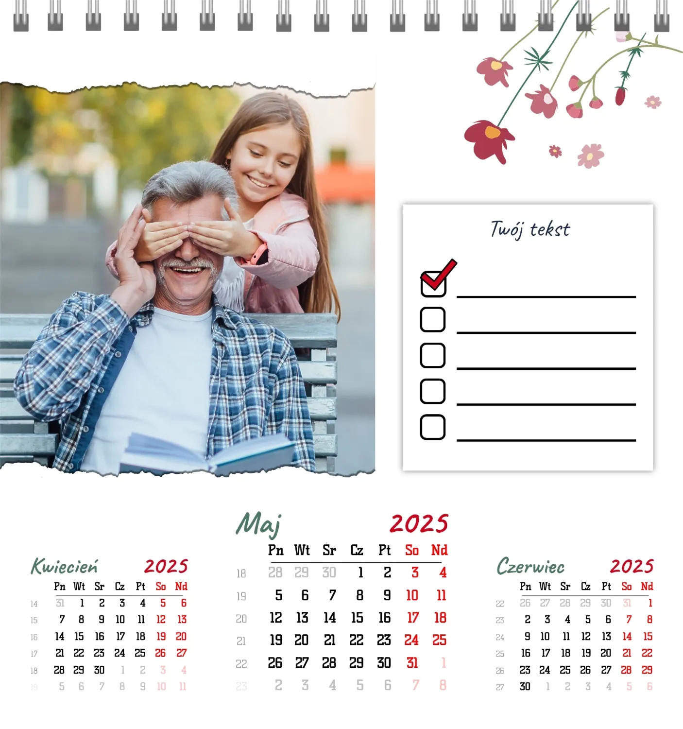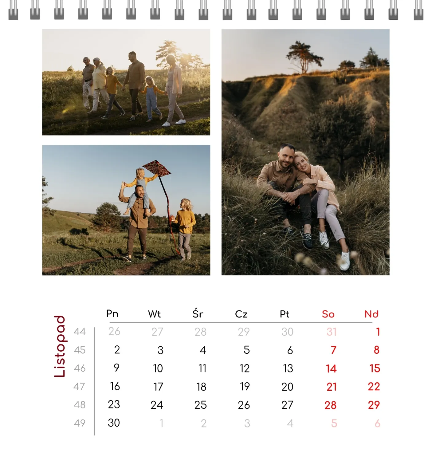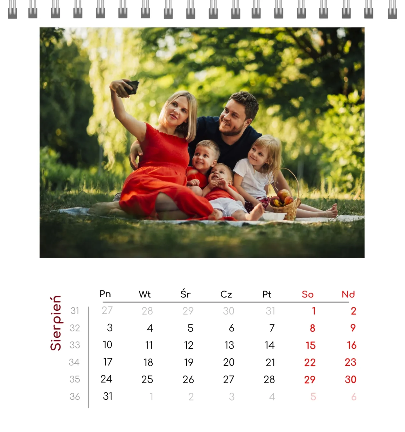Szablon kalendarza biurkowego nasza rodzina w naszym kreatorze online zapewnia wyjątkową możliwość stworzenia spersonalizowanego kalendarza, który w pełni odzwierciedla twoje życie rodzinne. Kreator online zapewnia szerokie możliwości edycji, umożliwiając dostosowanie wyglądu kalendarza do własnych preferencji. Możesz łatwo zmieniać gamę kolorów, wybierać różne tła i czcionki, aby kalendarz był jak najbardziej spersonalizowany. Ponadto szablon "nasza rodzina" zawiera miejsce na zapisy i plany. Możesz łatwo dodawać codzienne zadania, plany tygodniowe i inne notatki, aby kalendarz był nie tylko kolorowy, ale także praktycznym narzędziem do zarządzania czasem. W ten sposób możesz stworzyć unikalny kalendarz biurkowy "nasza rodzina", który będzie nie tylko wygodnym organizerem, ale także wypełnionym ciepłymi rodzinnymi wspomnieniami.