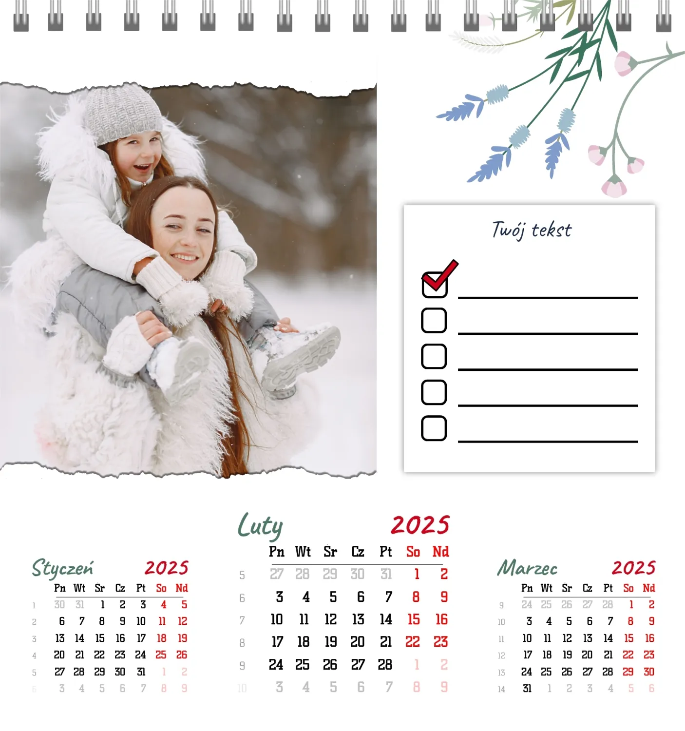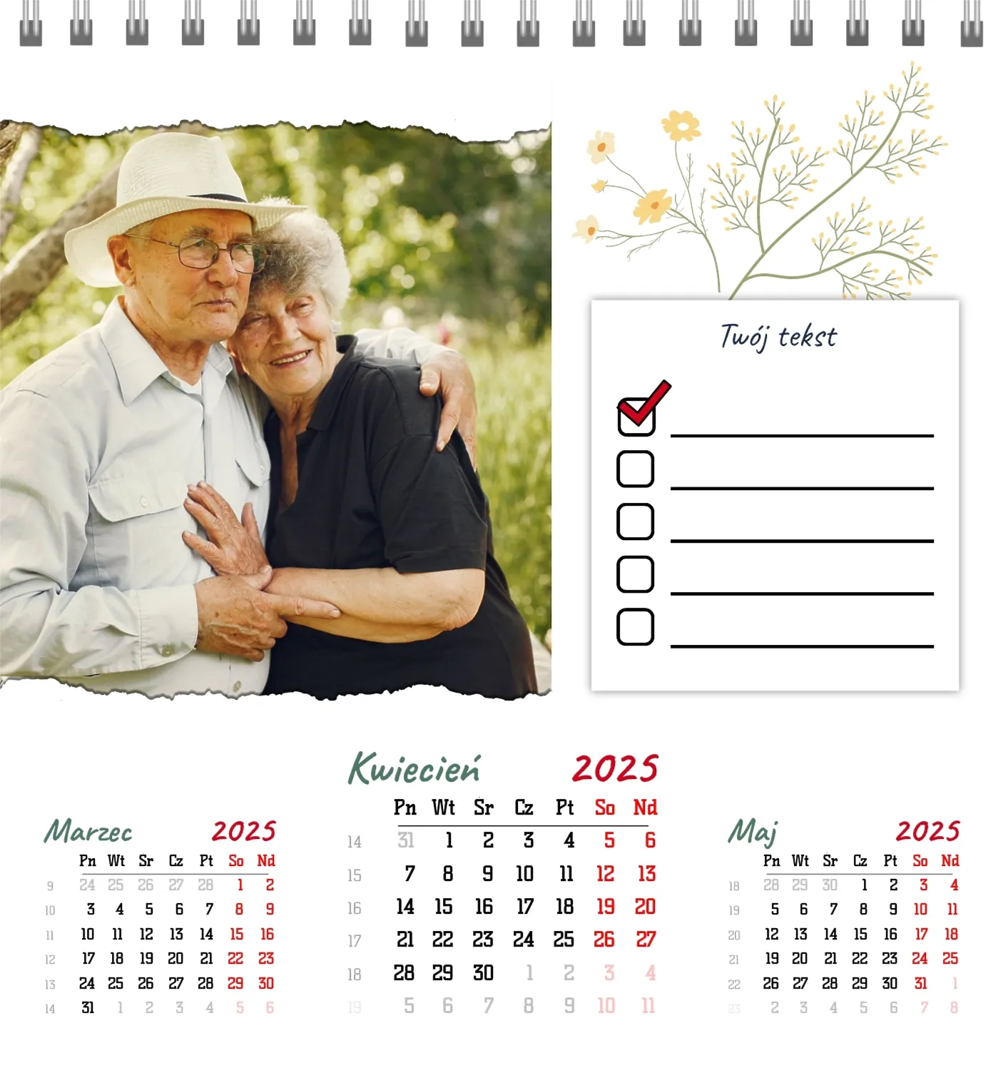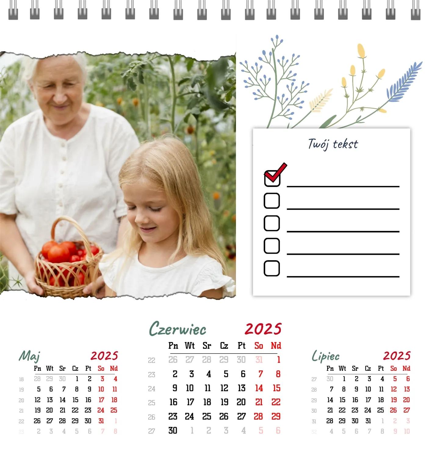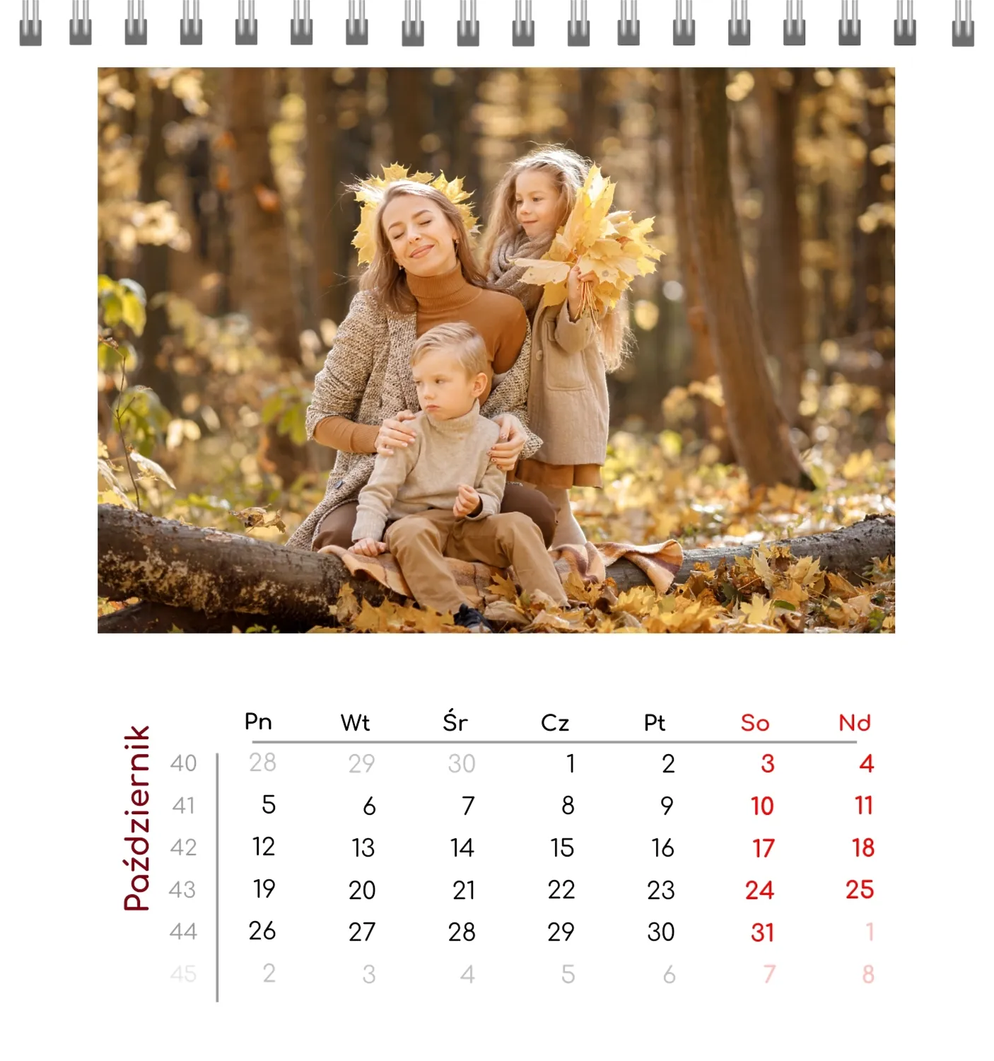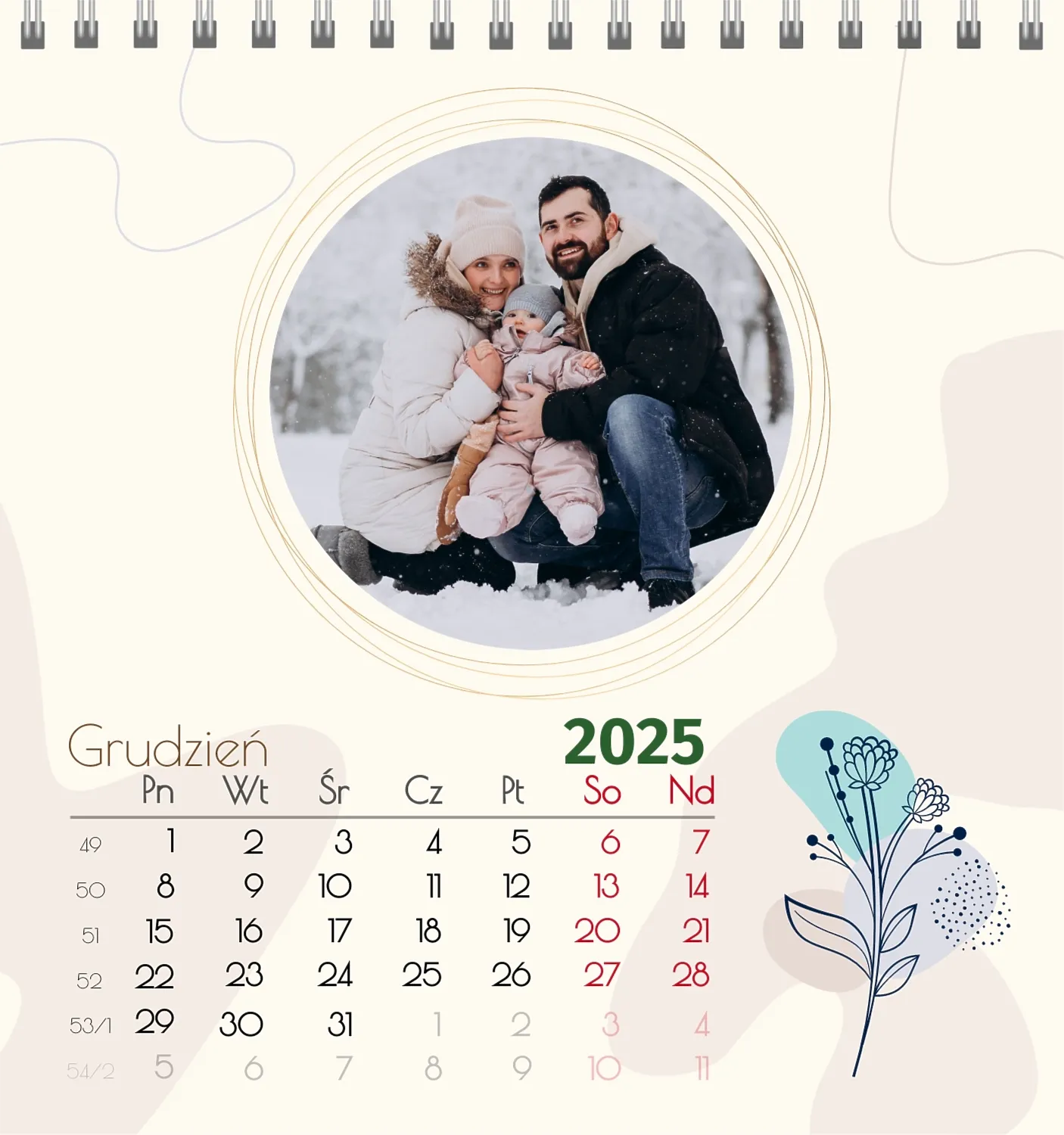 Szablon kalendarza biurkowego nasza rodzina w naszym kreatorze online zapewnia wyjątkową możliwość stworzenia spersonalizowanego kalendarza, który w pełni odzwierciedla twoje życie rodzinne. Kreator online zapewnia szerokie możliwości edycji, umożliwiając dostosowanie wyglądu kalendarza do własnych preferencji. Możesz łatwo zmieniać gamę kolorów, wybierać różne tła i czcionki, aby kalendarz był jak najbardziej spersonalizowany. Ponadto szablon "nasza rodzina" zawiera miejsce na zapisy i plany. Możesz łatwo dodawać codzienne zadania, plany tygodniowe i inne notatki, aby kalendarz był nie tylko kolorowy, ale także praktycznym narzędziem do zarządzania czasem. W ten sposób możesz stworzyć unikalny kalendarz biurkowy "nasza rodzina", który będzie nie tylko wygodnym organizerem, ale także wypełnionym ciepłymi rodzinnymi wspomnieniami.