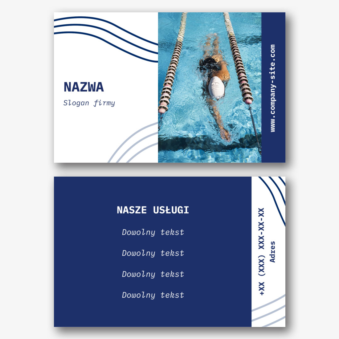 Ten szablon Eurowizji jest idealny dla trenerów pływania, aerobiku w wodzie, a także klubów fitness, basenów i kompleksów sportowych. Pomoże podkreślić Twoją fachową wiedzę i przyciągnie uwagę potencjalnych klientów. Nasz kreator online umożliwia łatwe wprowadzanie zmian w tym szablonie, aby dopasować go do Twoich preferencji i potrzeb. Dodaj informacje o usługach, dane kontaktowe, logo, a także udekoruj wizytówkę dodatkowymi elementami projektu. Dzięki temu szablonowi Twoje wizytówki euro będą nie tylko pouczające, ale także stylowe!