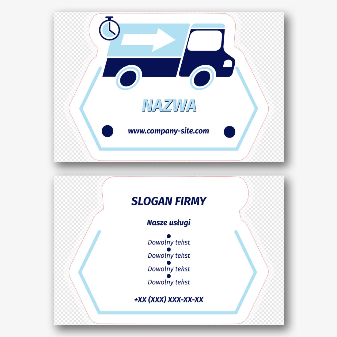 Szablon wizytówki w kształcie ciężarówki to unikalne i kreatywne rozwiązanie dla przedstawicieli różnych dziedzin biznesu związanych z transportem, logistyką, transportem towarowym i serwisem samochodowym. Taka wizytówka natychmiast przyciąga uwagę i jest niezapomniana, co jest szczególnie ważne w warunkach wysokiej konkurencji. Ten szablon jest idealny dla firm i prywatnych przedsiębiorców, którzy chcą wyróżnić się na tle swoich rówieśników i klientów. Wizytówka w kształcie Ciężarówki podkreśla specjalizację firmy i tworzy pozytywne wrażenie o firmie, pokazując jej oryginalność i profesjonalizm. Nasz kreator online zapewnia szerokie możliwości edycji tego szablonu, umożliwiając tworzenie unikalnych wizytówek własnymi rękami. W kreatorze możesz łatwo zmienić tekst, dodając imię i nazwisko, stanowisko, dane kontaktowe i logo firmy. Możesz także zmieniać schematy kolorów, wybierając te, które najlepiej pasują do tożsamości marki Twojej firmy. Korzystając z gotowego szablonu wizytówki w kształcie Ciężarówki, oszczędzasz czas na projektowanie i możesz skupić się na innych ważnych aspektach swojej firmy. Kreator online jest intuicyjny i nie wymaga specjalnych umiejętności, więc tworzenie wizytówki będzie dla ciebie prostym i przyjemnym procesem. Skorzystaj z naszego kreatora, aby stworzyć wizytówkę, która będzie działać dla Ciebie i Twojej firmy, przyciągając nowych klientów i partnerów.