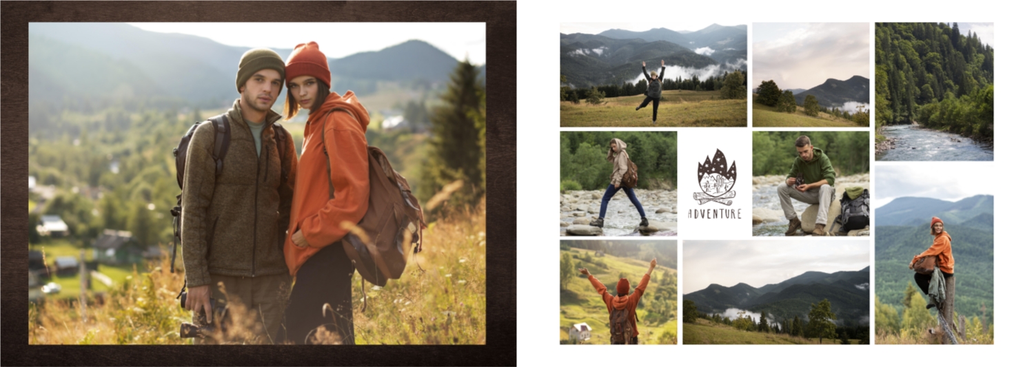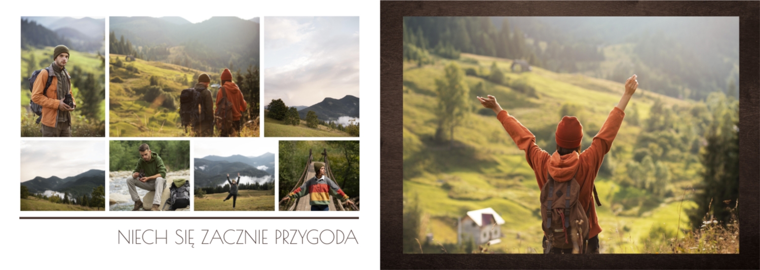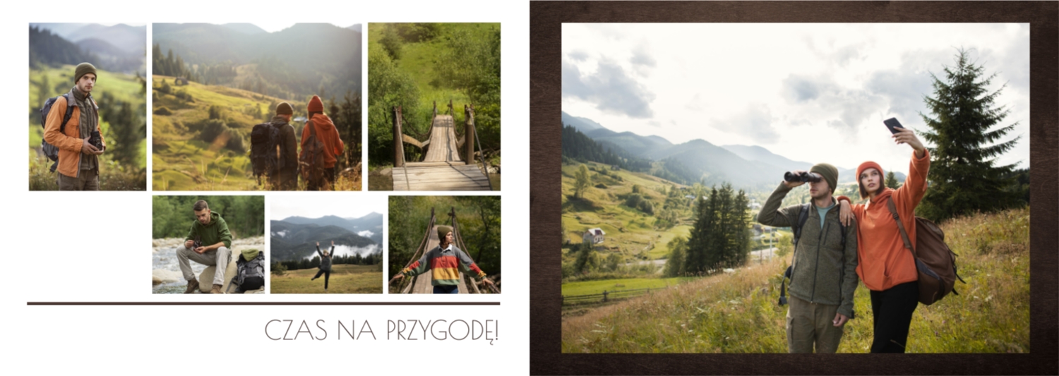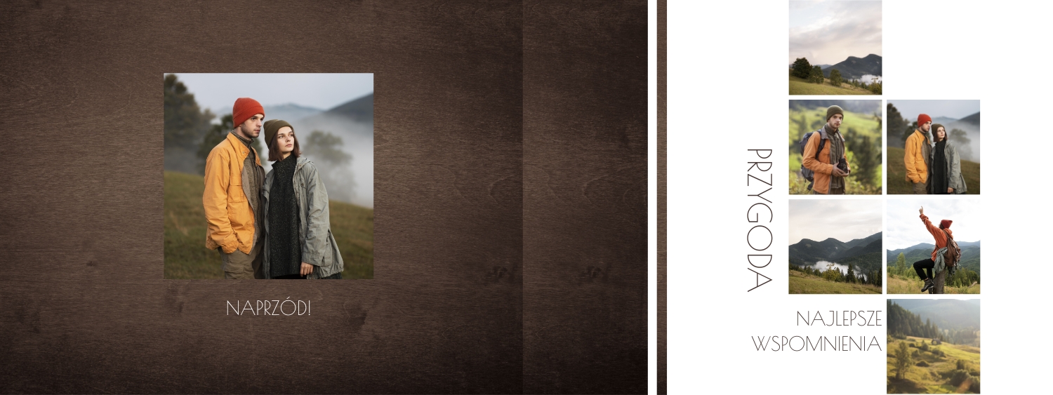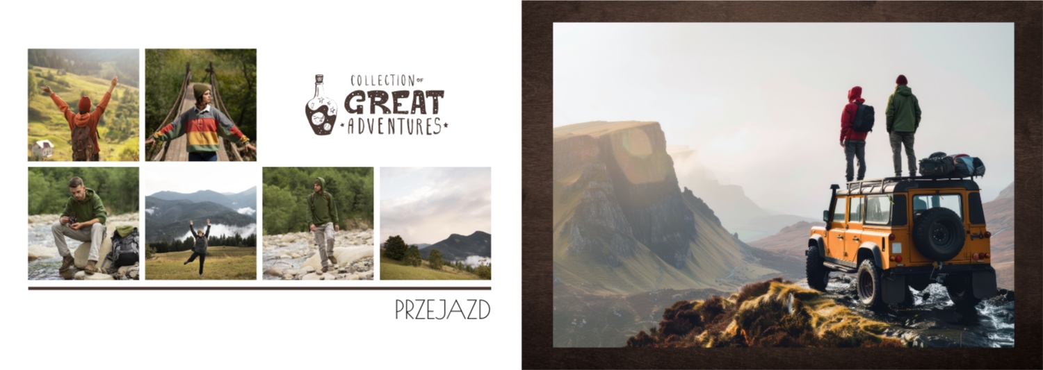 Szablon fotoksiążki Adventure w twardej oprawie jest idealny dla tych, którzy kochają aktywny tryb życia, Podróże i żywe doświadczenia. Ten szablon został stworzony, aby ożywić najbardziej ekscytujące chwile, niezależnie od tego, czy wspinasz się na szczyt góry, jeździsz po nowych miastach, czy relaksujesz się nad morzem. Horyzontalna fotoksiążka "przygody" zainteresuje nie tylko podróżników, ale także profesjonalistów, których praca wiąże się z aktywnymi zajęciami i wydarzeniami na świeżym powietrzu. Fotografowie, przewodnicy turystyczni, blogerzy i organizatorzy wydarzeń znajdą w tym szablonie doskonałą okazję do zaprezentowania swojej pracy lub stworzenia unikalnego albumu, który będzie pamiątką dla klientów i partnerów. Ten szablon jest również odpowiedni dla osób z branży rekreacyjnej i rozrywkowej, oferując klientom unikalne fotoksiążki, które opowiedzą historię każdego wydarzenia. Główną zaletą korzystania z tego szablonu jest elastyczność edycji, którą zapewnia nasz kreator online. Każdy element projektu, od tła i ramek po czcionki i schematy kolorów, można łatwo dostosować do indywidualnych preferencji. Możesz dodać swoje zdjęcia, opisy tekstowe, a nawet grafikę, tworząc naprawdę wyjątkowy produkt. To sprawia, że szablon Adventure jest idealnym rozwiązaniem dla tych, którzy chcą stworzyć coś własnego bez poświęcania dużo czasu na projektowanie od podstaw.