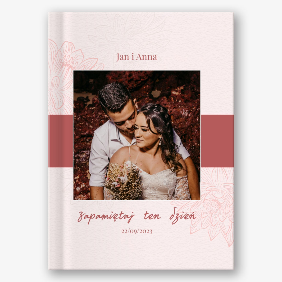 Gotowy szablon pionowej książki fotograficznej w twardej oprawie do zdjęć ślubnych jest idealny dla tych, którzy chcą stworzyć wyjątkowy album, który uchwyci jeden z najważniejszych dni w życiu. Ten szablon został zaprojektowany z myślą o wszystkich funkcjach motywu ślubnego, w tym eleganckich tłach, romantycznych elementach i stylowych ramkach do zdjęć. Jednak jego możliwości wykraczają daleko poza fotoksiążkę ślubną. Ten szablon przyda się nie tylko nowożeńcom, ale także profesjonalnym fotografom pracującym w branży ślubnej, projektantom, a także organizatorom ślubów, którzy chcą zaoferować swoim klientom coś wyjątkowego. Ten szablon można również dostosować do innych uroczystych wydarzeń, takich jak rocznice, urodziny lub uroczystości rodzinne, ponieważ można w nim łatwo zmieniać obrazy, teksty i projekty elementów. Główną zaletą tego szablonu jest możliwość edycji w naszym kreatorze online. Możesz łatwo zastępować obrazy, dodawać niestandardowe napisy, zmieniać kolory i tła, aby album był jak najbardziej spersonalizowany. W kreatorze online możesz także dodawać nowe strony, zmieniać ich kolejność, dodawać cliparty lub elementy graficzne. Korzystając z naszego internetowego kreatora, możesz stworzyć fotoksiążkę, która nie będzie tylko zbiorem zdjęć, ale prawdziwym dziełem sztuki, które oddaje atmosferę i emocje twoich wakacji.