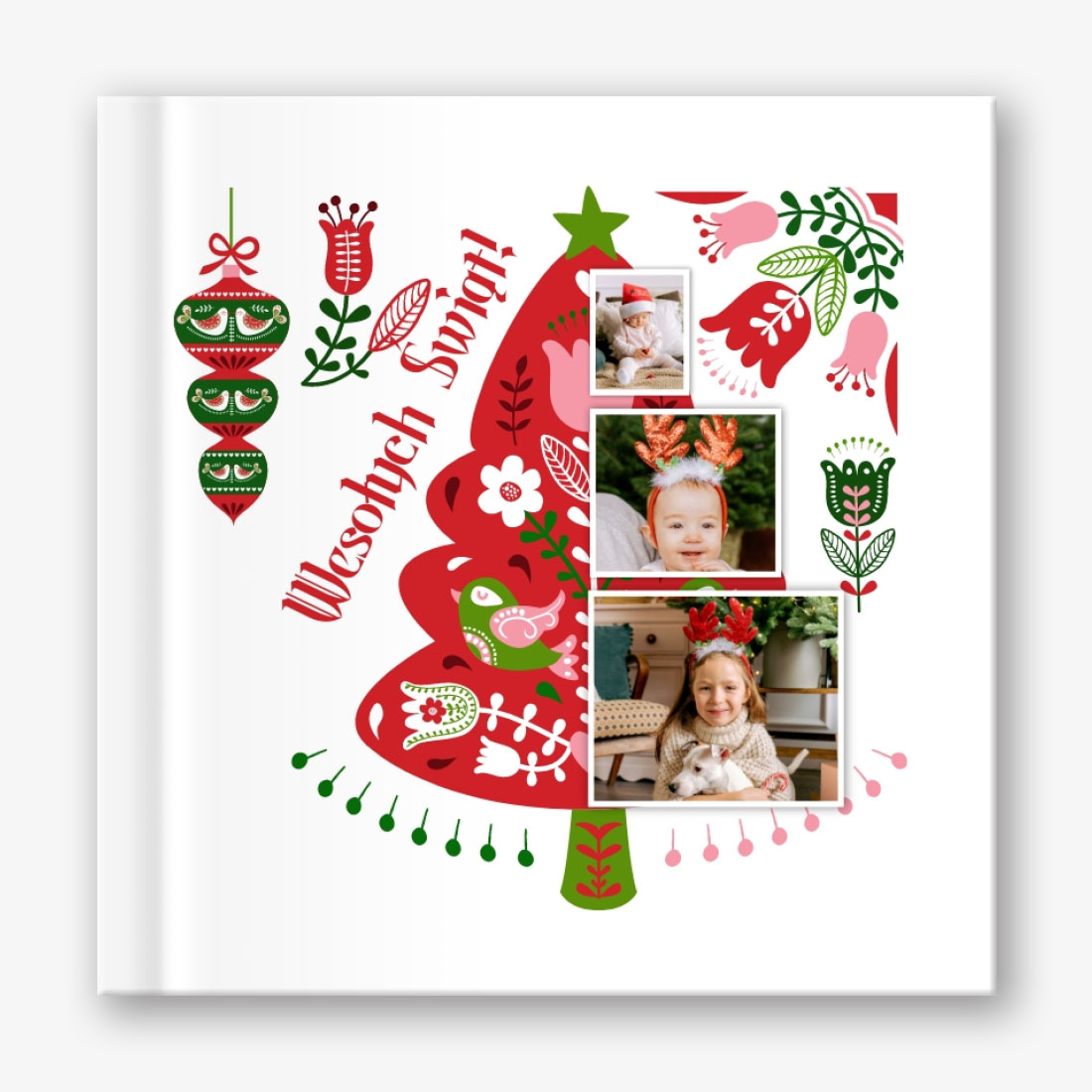 Gotowy szablon noworocznej książki fotograficznej w twardej oprawie dla rodziny to idealny wybór dla tych, którzy chcą stworzyć wyjątkowy i niezapomniany prezent świąteczny. Ten szablon pozwala zachować najcieplejsze chwile ferii zimowych, takich jak Boże Narodzenie i Nowy Rok, w stylowej i profesjonalnie zaprojektowanej fotoksiążce. Szablon jest idealny dla szerokiej gamy profesjonalistów i dziedzin. Na przykład fotografowie i projektanci mogą go wykorzystać do zaprezentowania swojej pracy lub jako przykład dla klientów, którzy chcą stworzyć rodzinne fotoksiążki. Nauczyciele i wychowawcy mogą go wykorzystać do tworzenia pamiątkowych książek o uroczystościach w placówkach edukacyjnych. Dzięki naszemu kreatorowi online możesz łatwo dostosować układ strony, dodać własne zdjęcia i teksty, wybrać kolory i czcionki pasujące do Twojego stylu. Kreator online zapewnia intuicyjny interfejs, który umożliwia łatwe przeciąganie i upuszczanie elementów, zmianę ich rozmiaru i formatowanie tekstu. Daje to możliwość stworzenia unikalnej kwadratowej fotoksiążki w twardej oprawie, która w pełni odzwierciedla indywidualne preferencje i cechy Twojego święta.