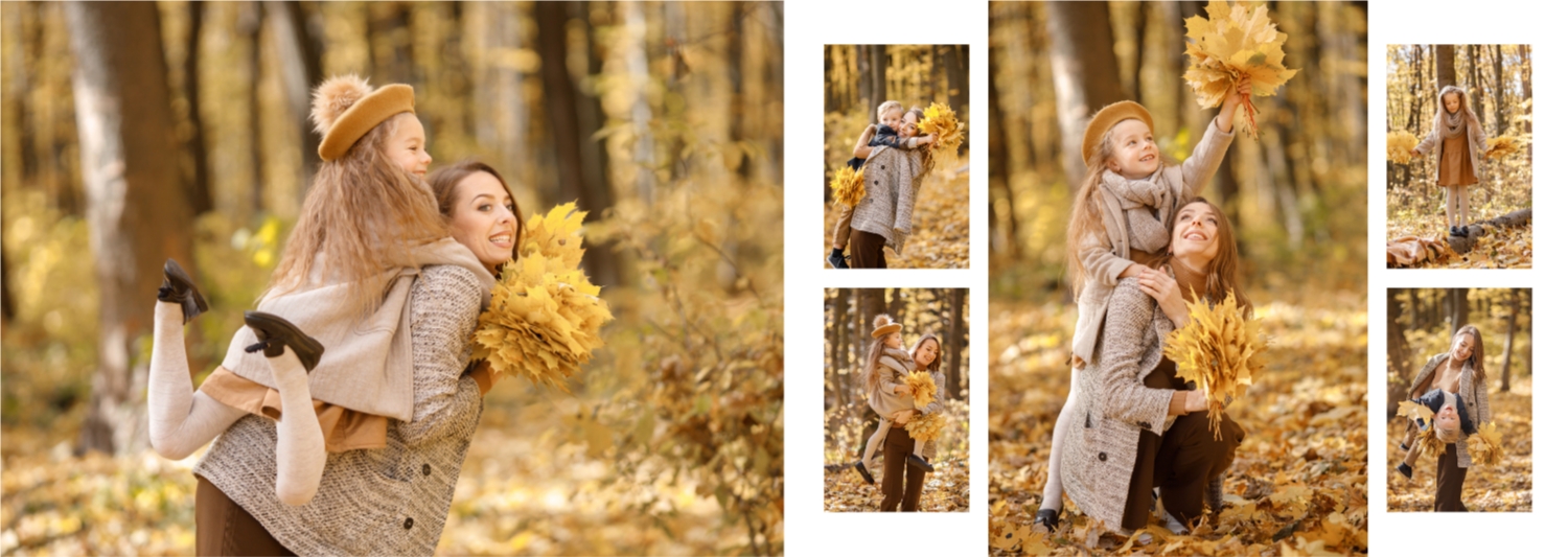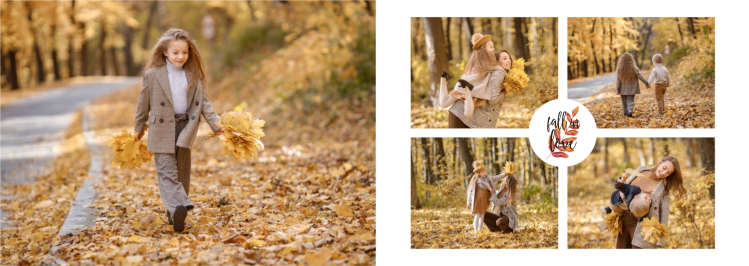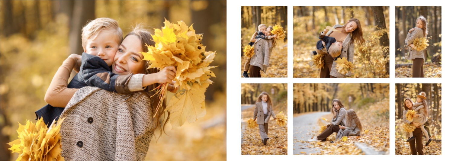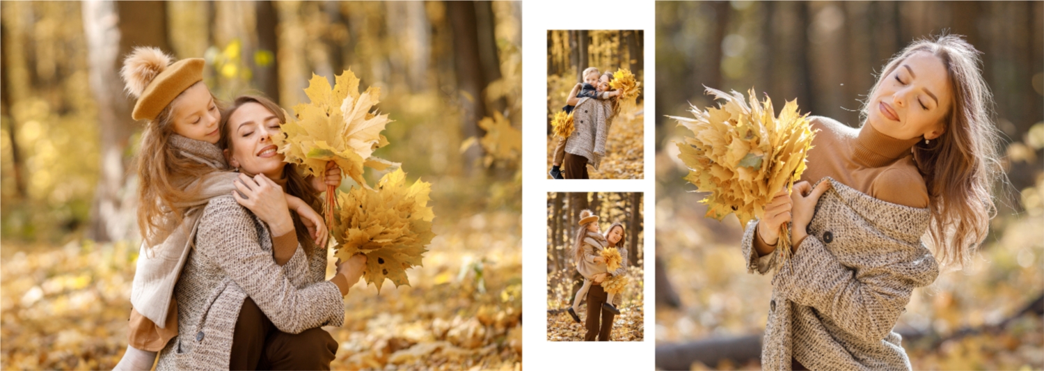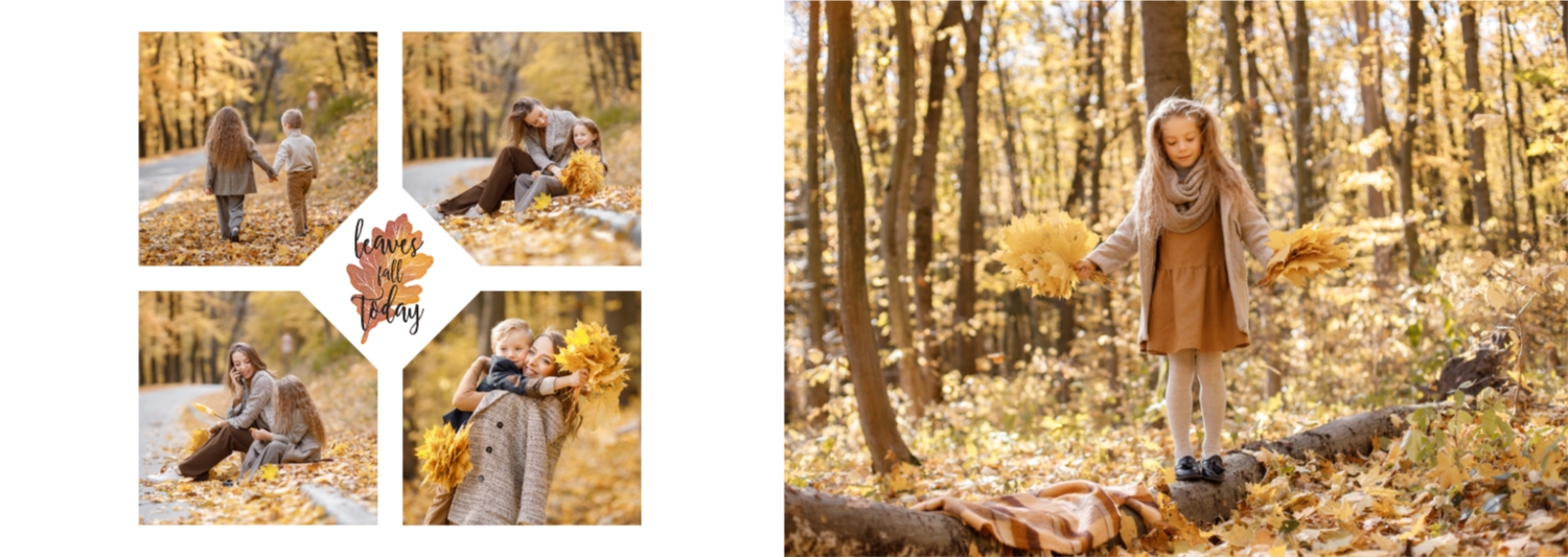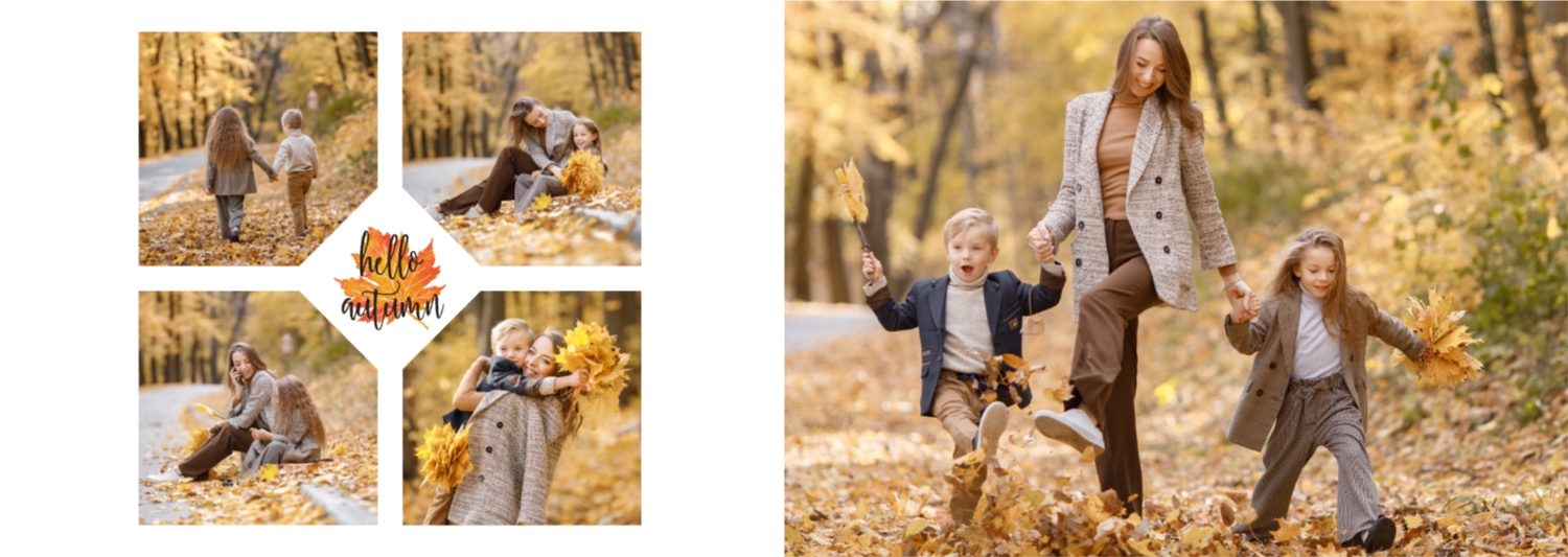 Gotowy szablon fotoksiążki w twardej oprawie o tematyce jesiennej to świetne rozwiązanie dla tych, którzy chcą zachować żywe i ciepłe wspomnienia o złotej porze roku. Ten szablon oferuje nie tylko stylowy design z elementami jesiennego krajobrazu, ale także pełną swobodę edycji w naszym kreatorze online. Możesz łatwo zmieniać zdjęcia, dodawać bloki tekstowe z podpisami i wybierać odpowiednie czcionki, aby fotoksiążka była naprawdę wyjątkowa i spersonalizowana. Ten poziomy szablon jest szczególnie odpowiedni dla fotografów, którzy tworzą portfolio sezonowych sesji zdjęciowych, oraz dla projektantów, którzy chcą przekazać atmosferę jesieni w swoich projektach. Będzie również interesujący dla blogerów i specjalistów, którzy pracują w branży turystycznej, organizując jesienne wycieczki lub imprezy przyrodnicze. Z pomocą naszego projektanta możesz szybko dostosować szablon do konkretnych potrzeb: zmienić projekt, dodać własne ilustracje lub grafikę, aby fotoksiążka stała się odzwierciedleniem indywidualnego stylu. W ten sposób jesienny szablon fotoksiążki może służyć jako podstawa do stworzenia oryginalnego produktu, który spełni wszelkie preferencje, niezależnie od dziedziny zawodowej lub osobistej.