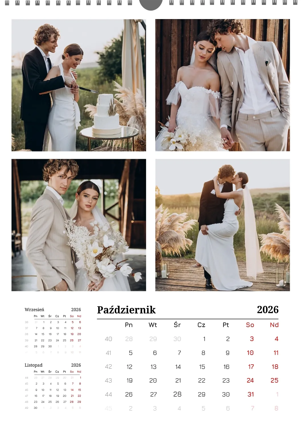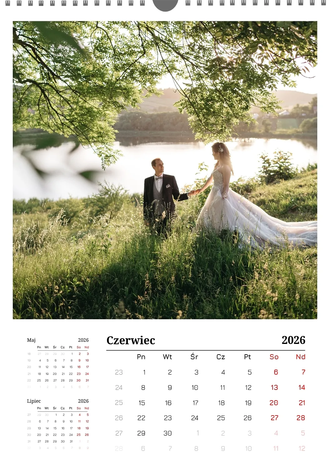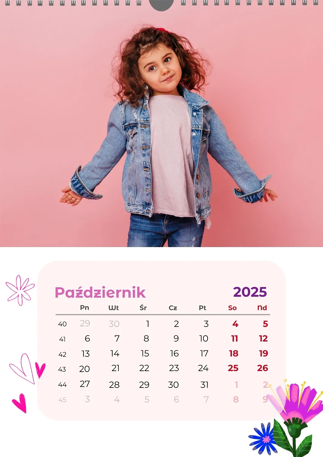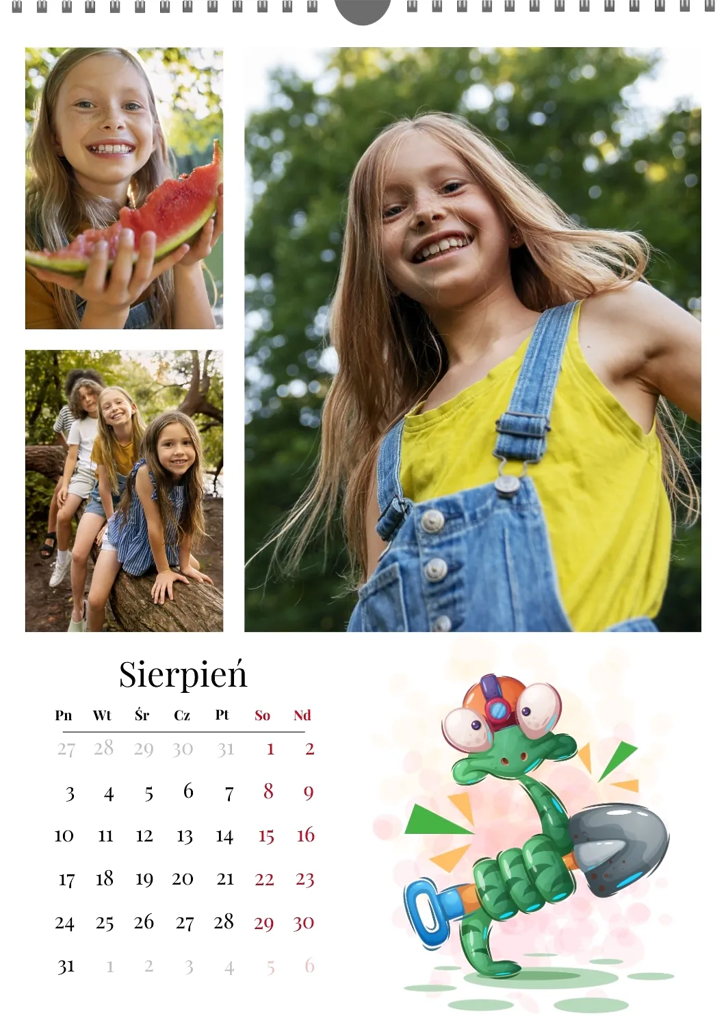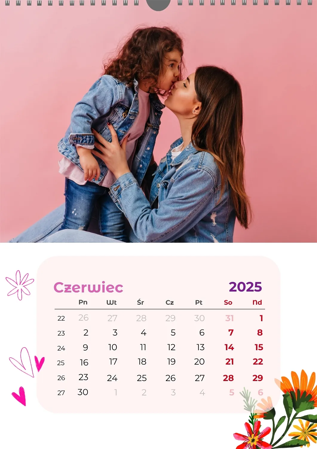 Gotowy szablon ściennego kalendarza rodzinnego to wygodne i wszechstronne rozwiązanie dla tych, którzy cenią sobie indywidualne podejście do planowania i chcą zachować ważne rodzinne chwile w stylowej i praktycznej formie. Ten szablon jest idealny do tworzenia spersonalizowanego kalendarza własnymi rękami, który zachwyci Ciebie i Twoich bliskich przez cały rok. Jedną z głównych zalet rodzinnego kalendarza pionowego na ścianie jest możliwość pełnej edycji w naszym kreatorze online. Możesz zmienić tło, dodać zdjęcia, podpisać każdy miesiąc indywidualnie, świętując urodziny, rocznice i inne ważne daty. Intuicyjny interfejs projektanta ułatwia zamianę obrazów, Wybór odpowiednich czcionek i kolorów oraz ułożenie elementów tak, aby idealnie pasowały do Twojego stylu i zadań. Ten gotowy szablon będzie podstawą do stworzenia unikalnego kalendarza, który będzie odzwierciedlał Twoją historię i styl życia. Odkryj kreatywność i wygodę w tworzeniu spersonalizowanych kalendarzy rodzinnych w naszym kreatorze online!