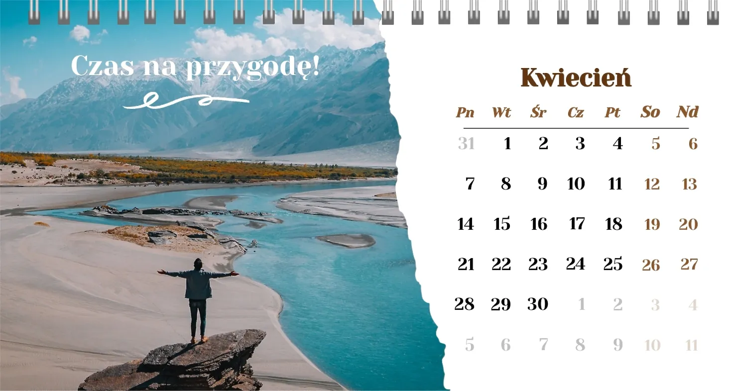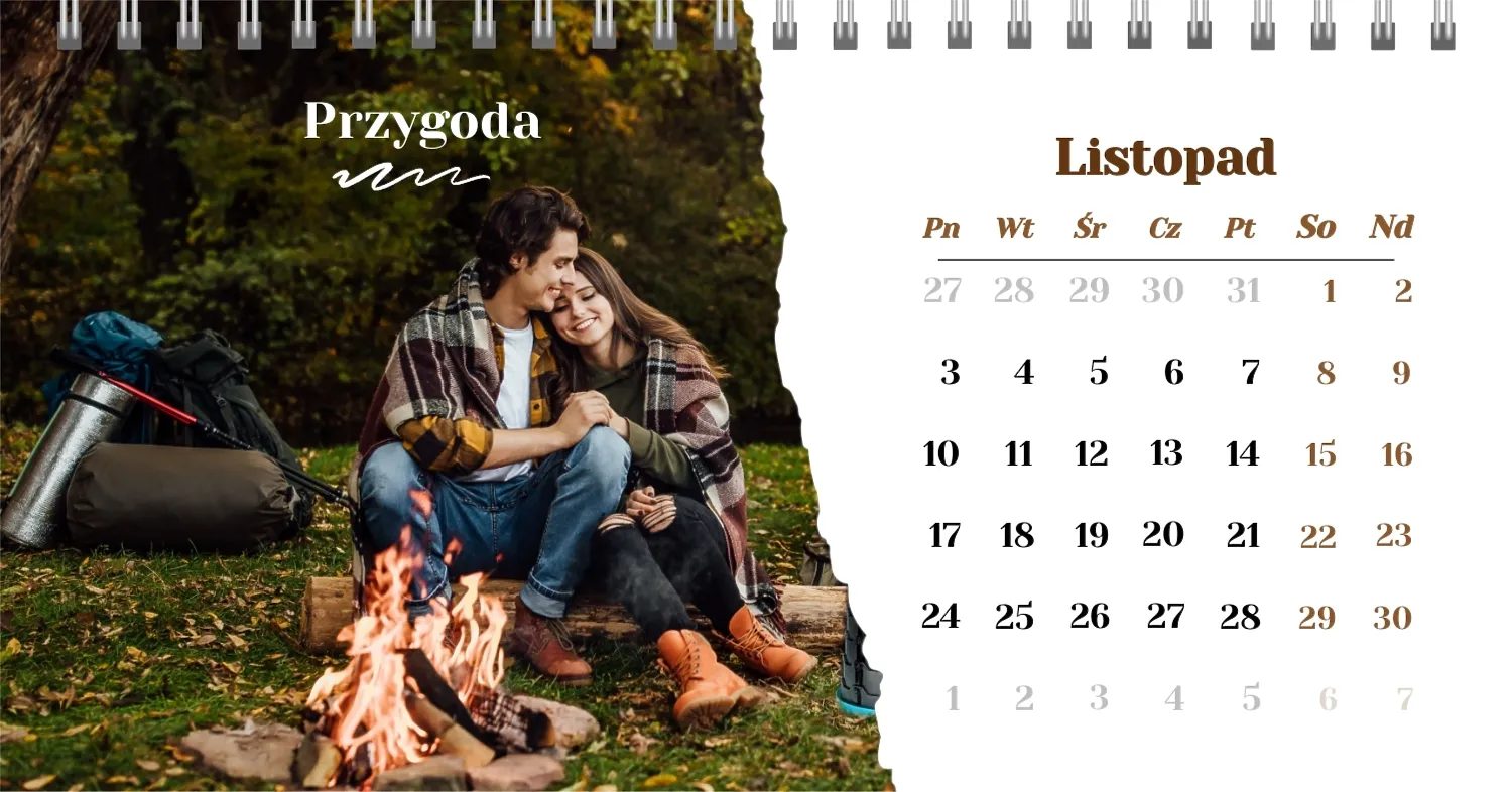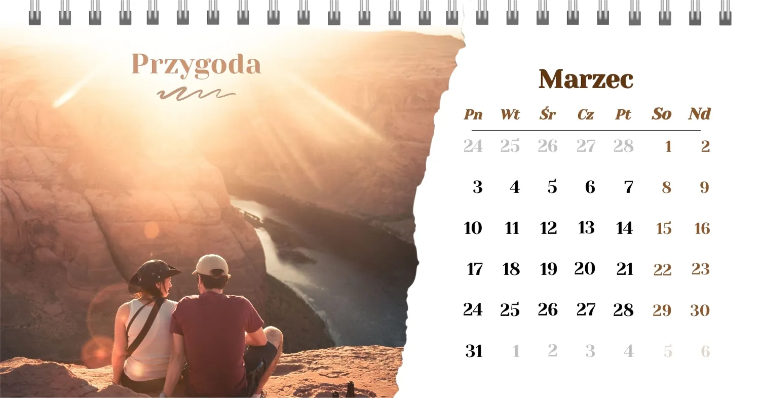 Darmowy szablon kalendarza ze zdjęciami ślubnymi. Utwórz układ DIY w kreatorze kalendarzy.