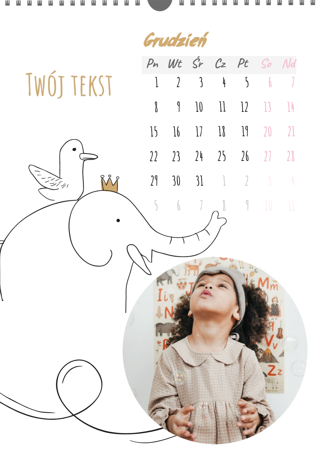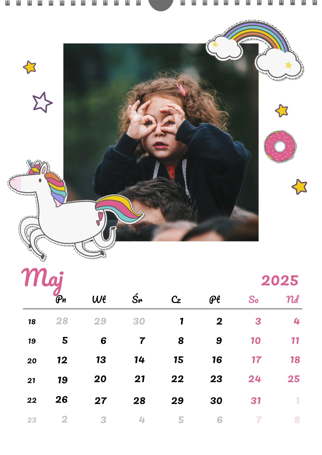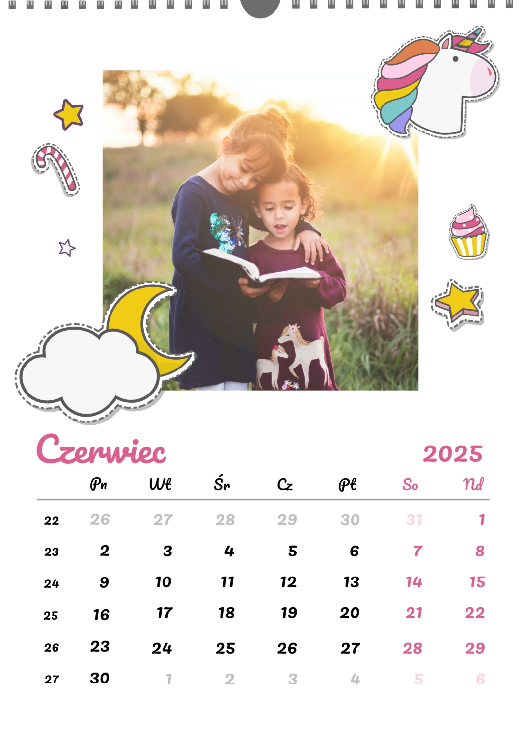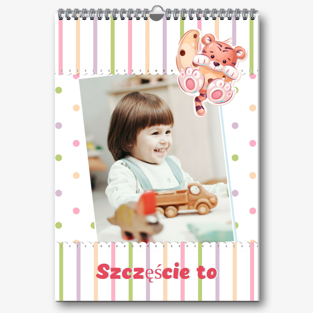 Darmowy szablon kalendarza ściennego na niezapomniane chwile ze zdjęciami dzieci. Utwórz układ DIY w kreatorze kalendarzy online.