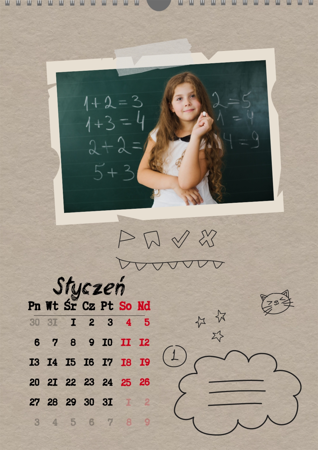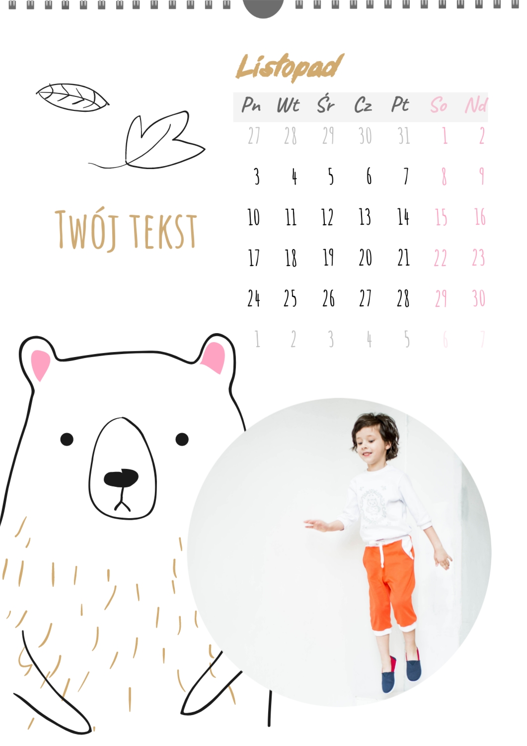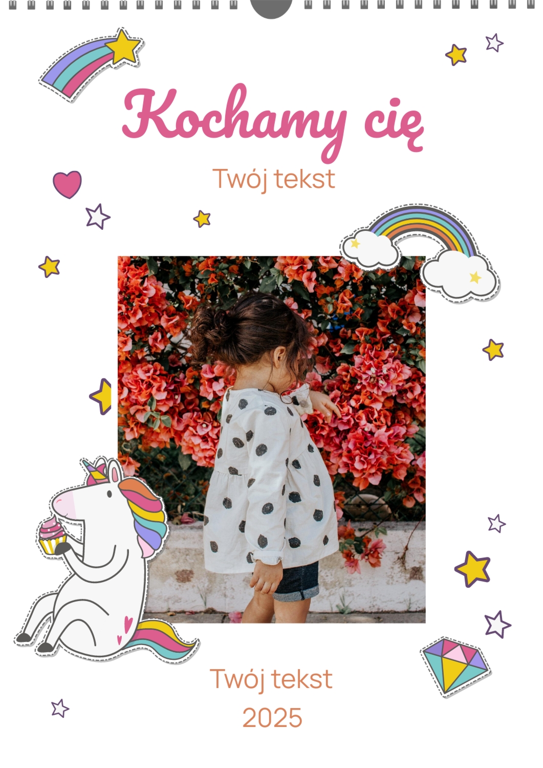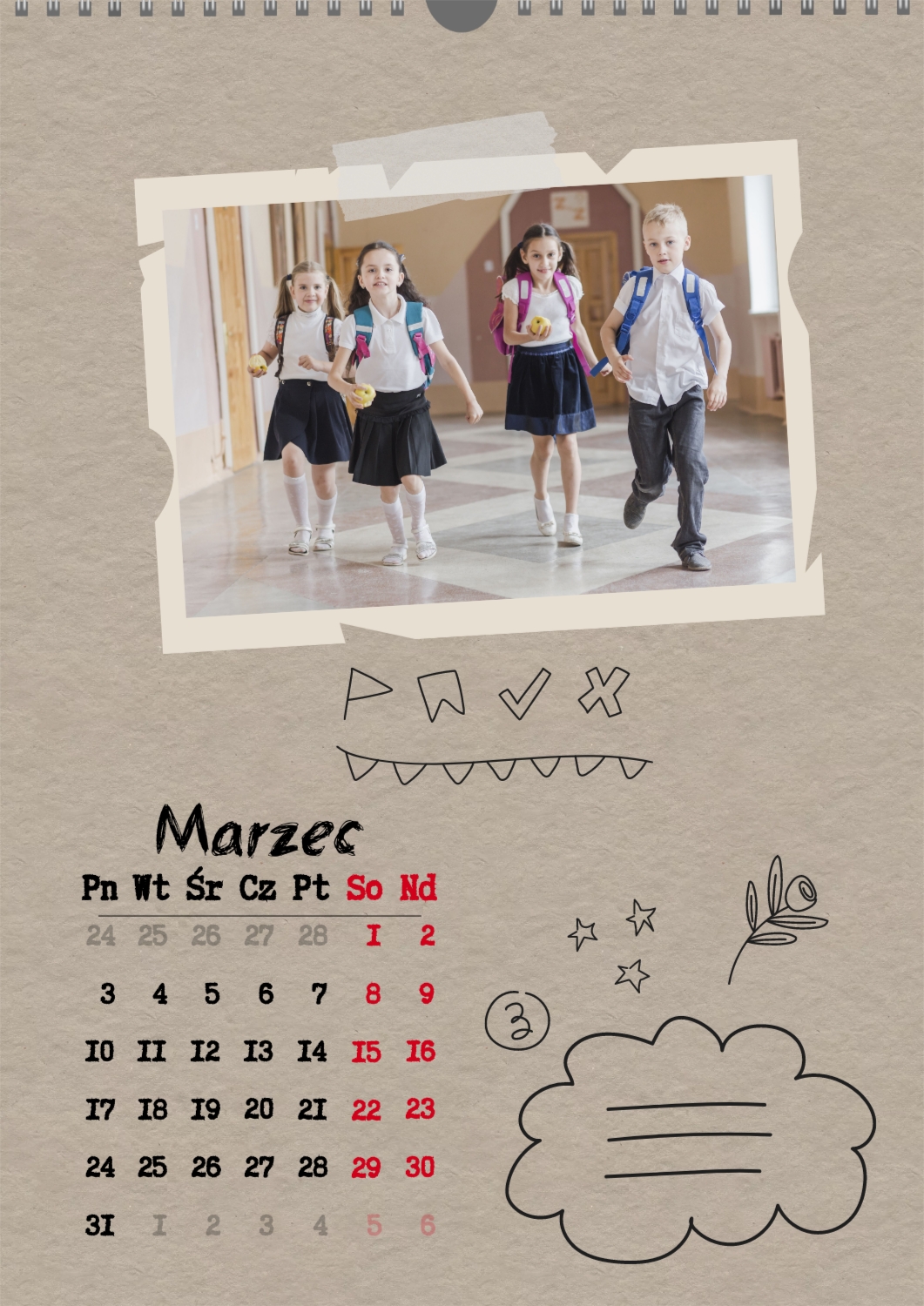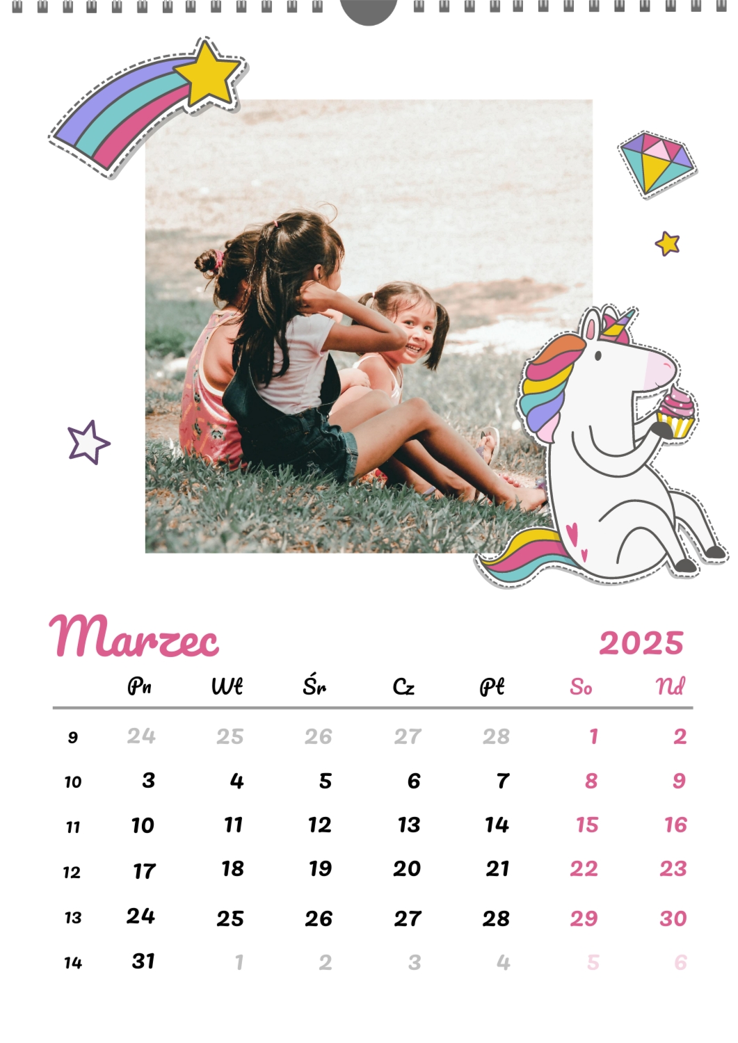 Darmowy szablon kalendarza ściennego na niezapomniane chwile ze zdjęciami dzieci. Utwórz układ DIY w kreatorze kalendarzy online.