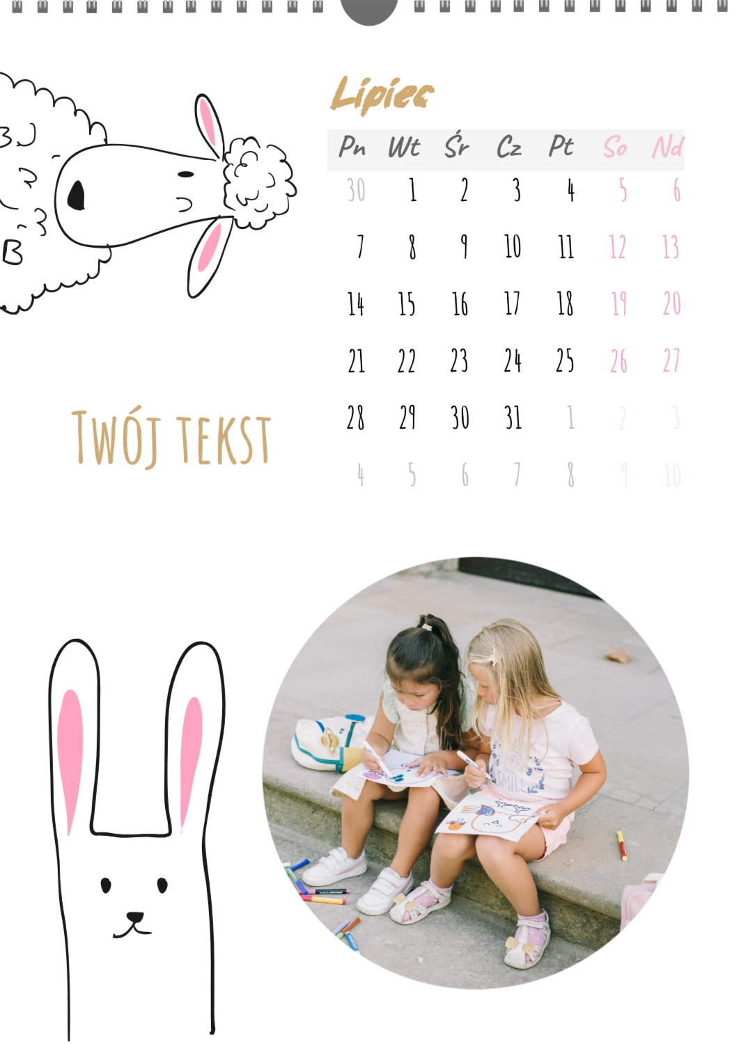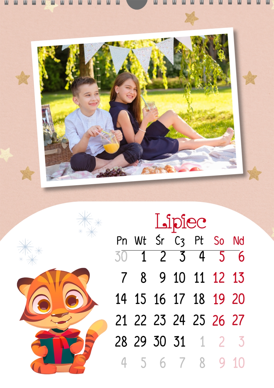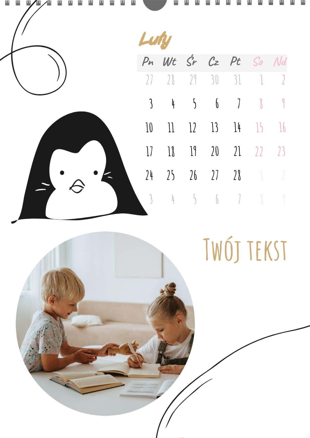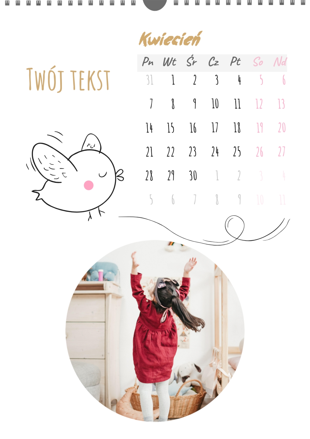Darmowy szablon kalendarza ściennego na niezapomniane chwile ze zdjęciami dzieci. Utwórz układ DIY w kreatorze kalendarzy online.