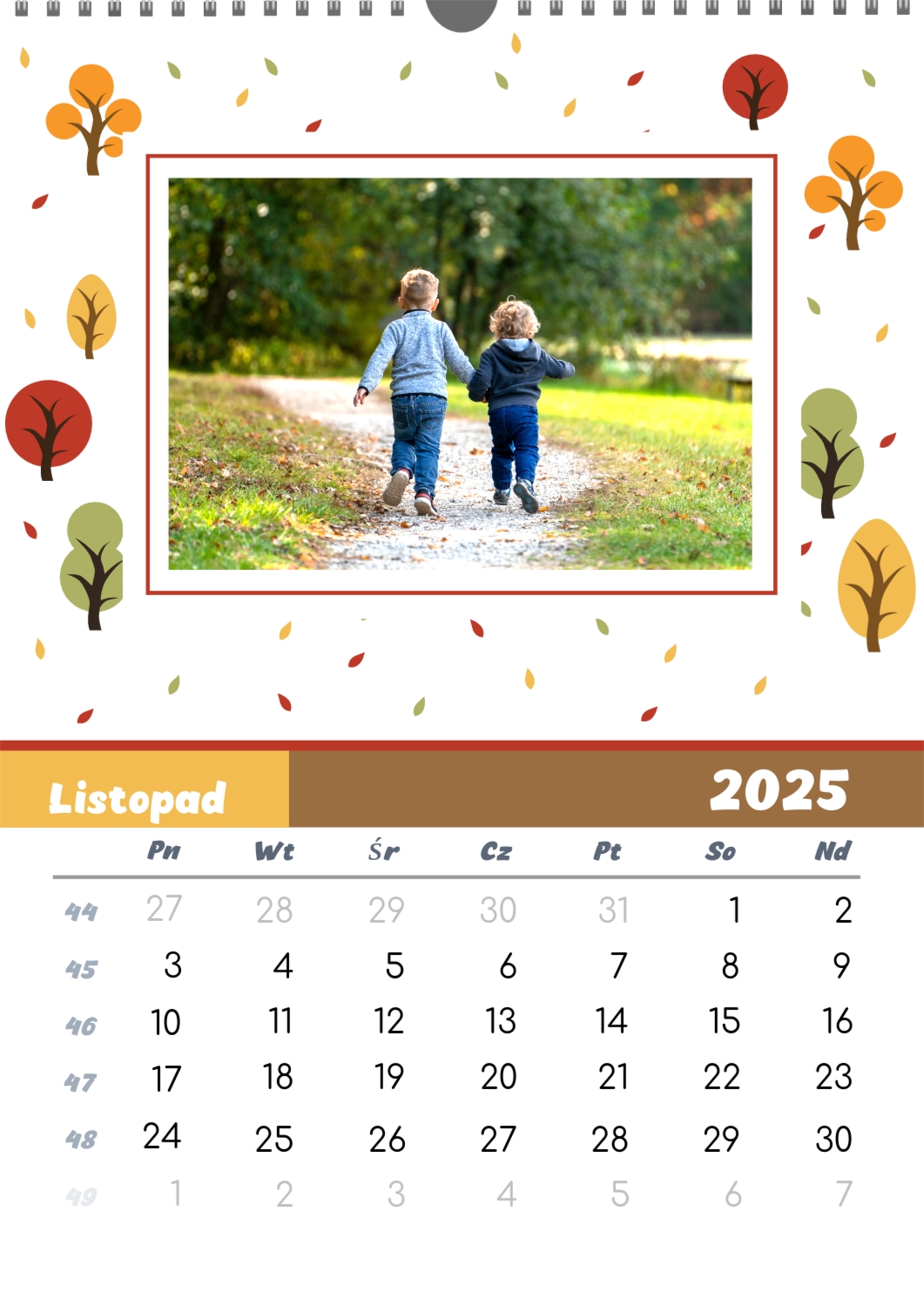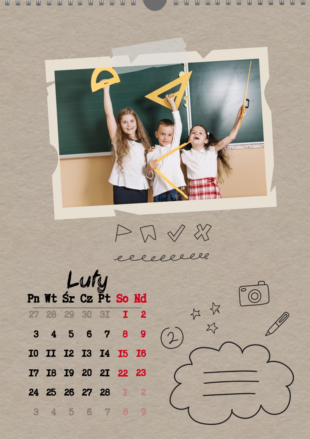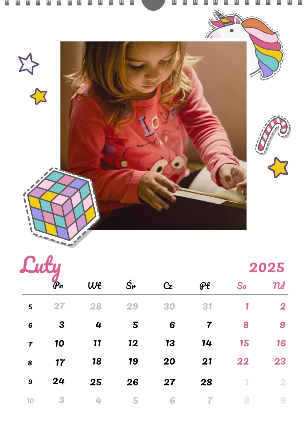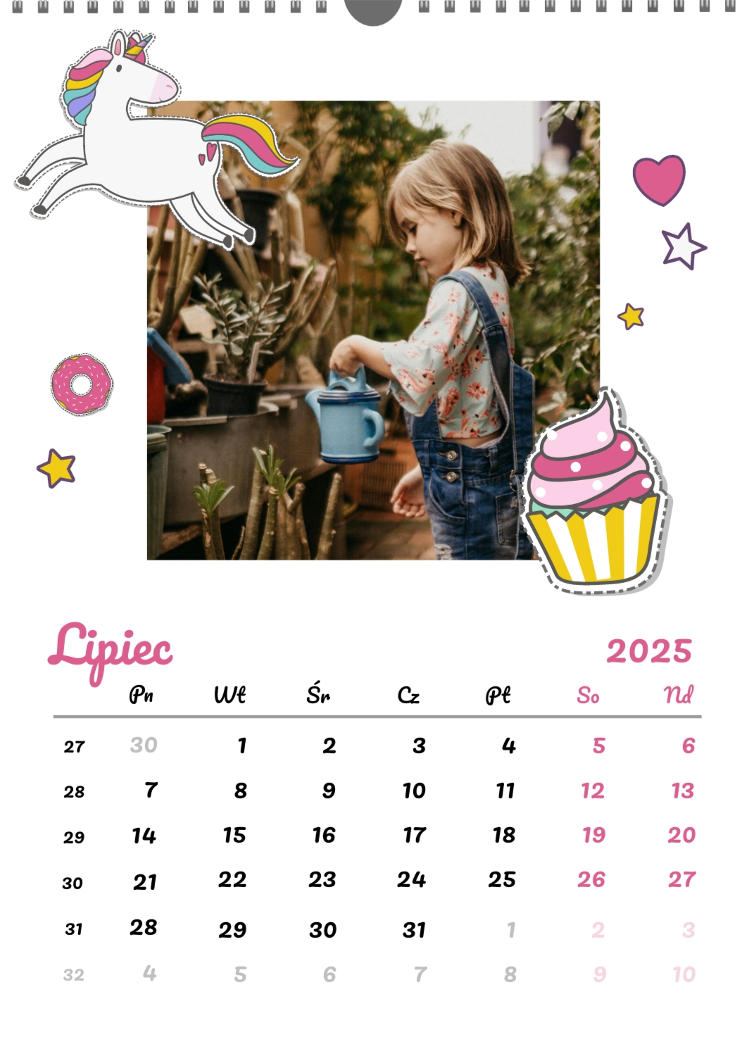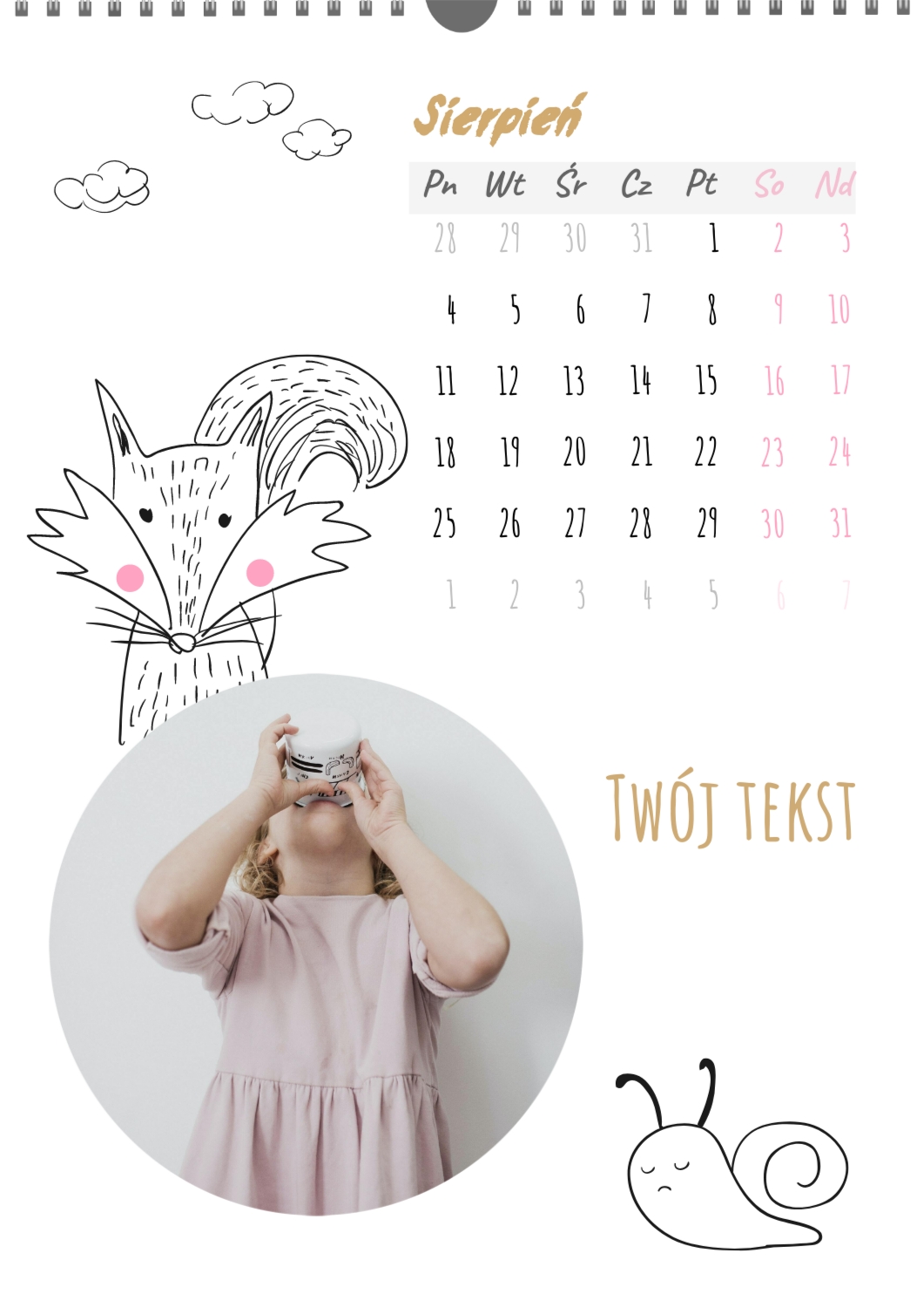 Darmowy szablon kalendarza ściennego na niezapomniane chwile ze zdjęciami dzieci. Utwórz układ DIY w kreatorze kalendarzy online.