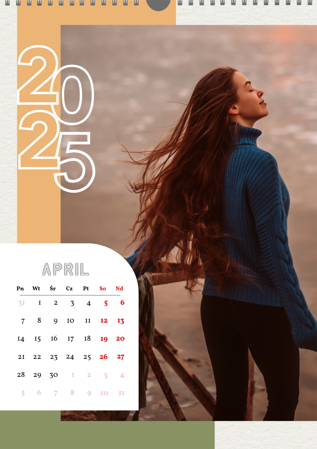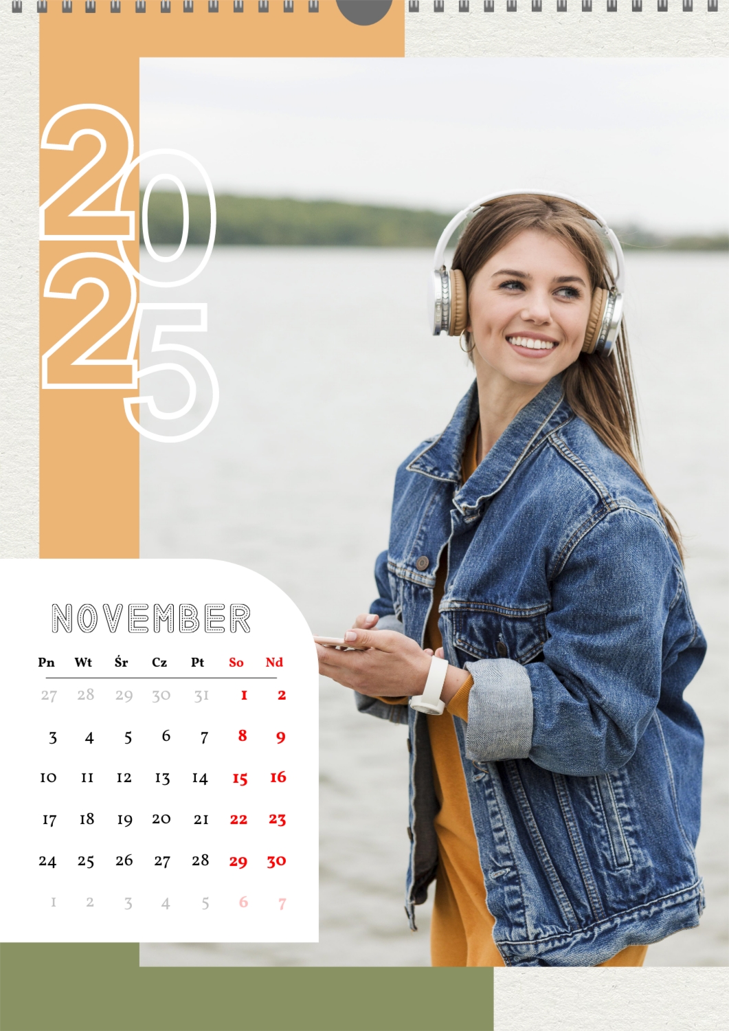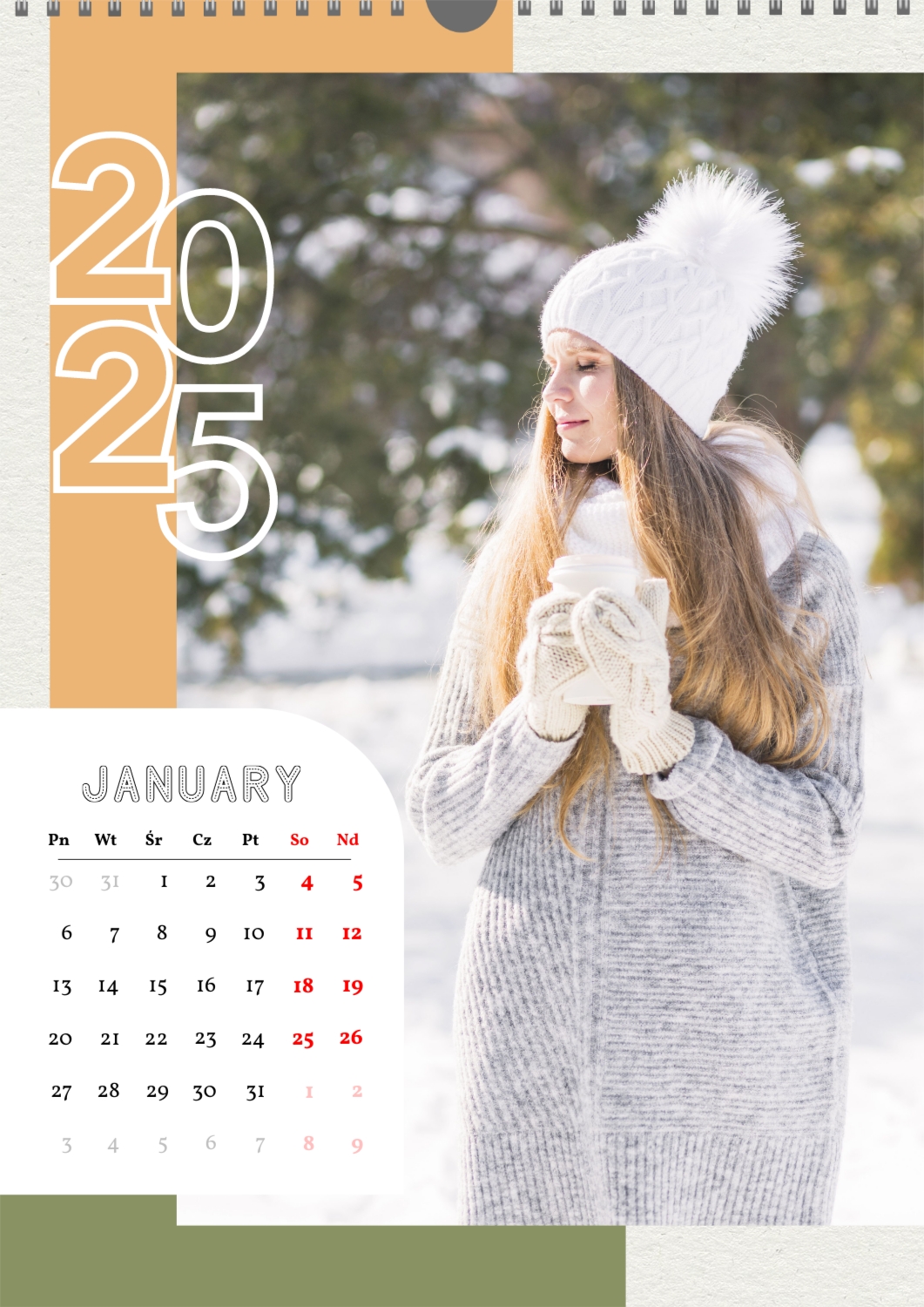 Darmowy szablon kalendarza z niezapomnianymi chwilami w stylu Instagram. Utwórz układ DIY w kreatorze kalendarzy online.
