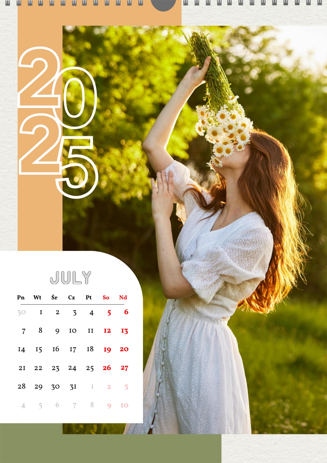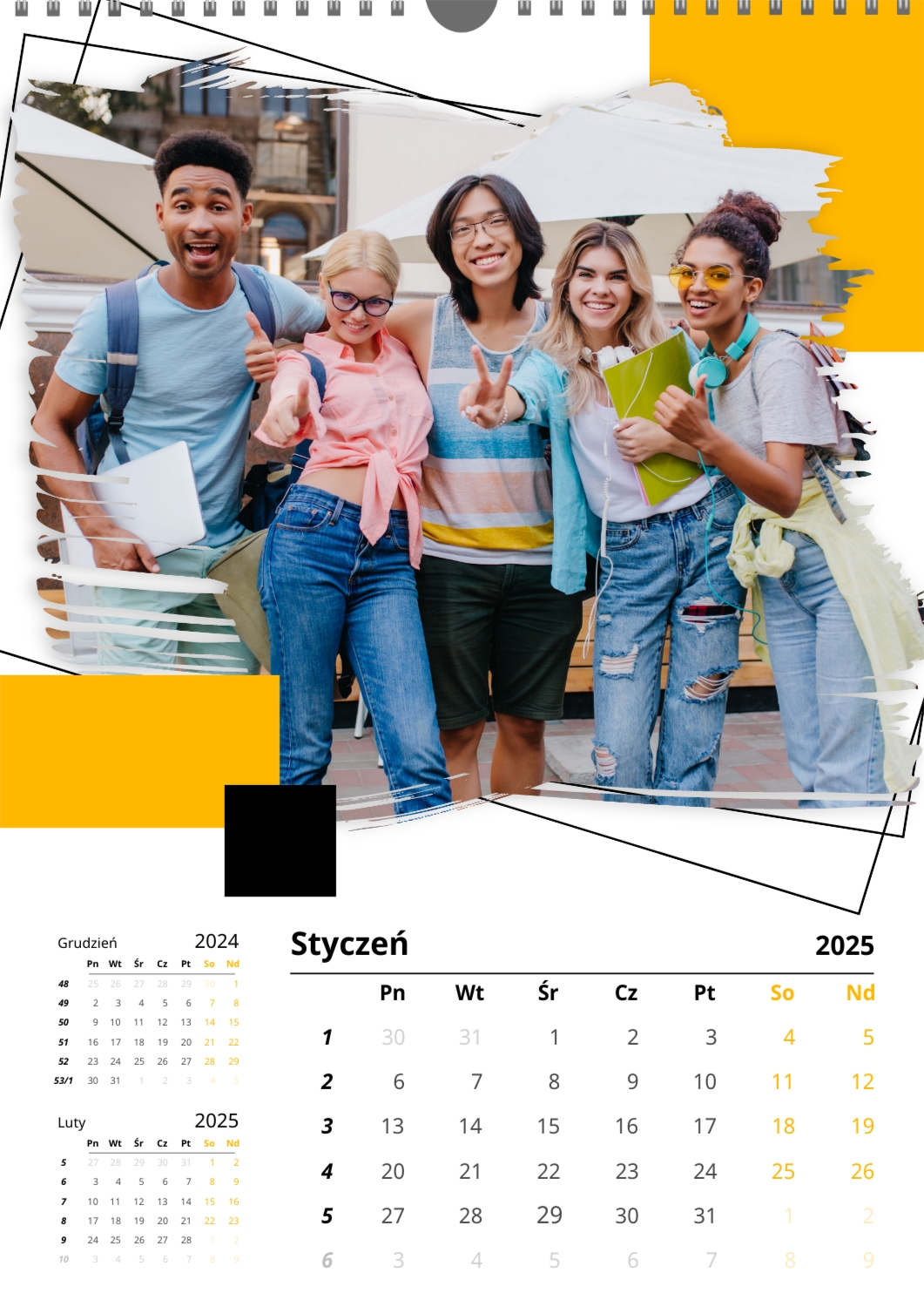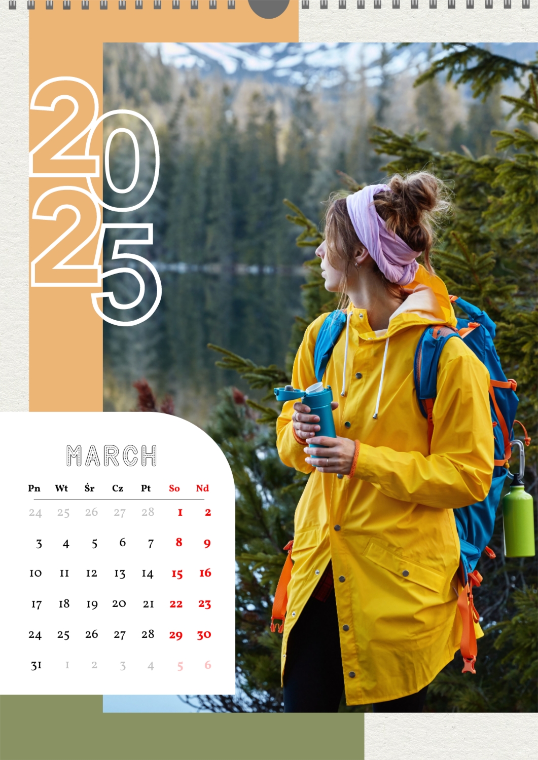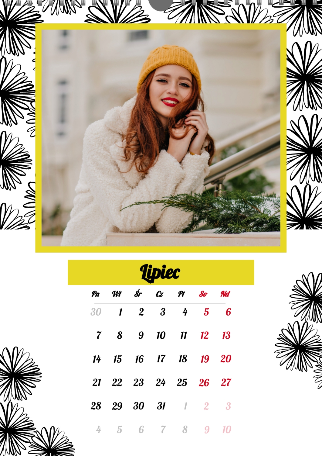 Darmowy szablon kalendarza z niezapomnianymi chwilami w stylu Instagram. Utwórz układ DIY w kreatorze kalendarzy online.