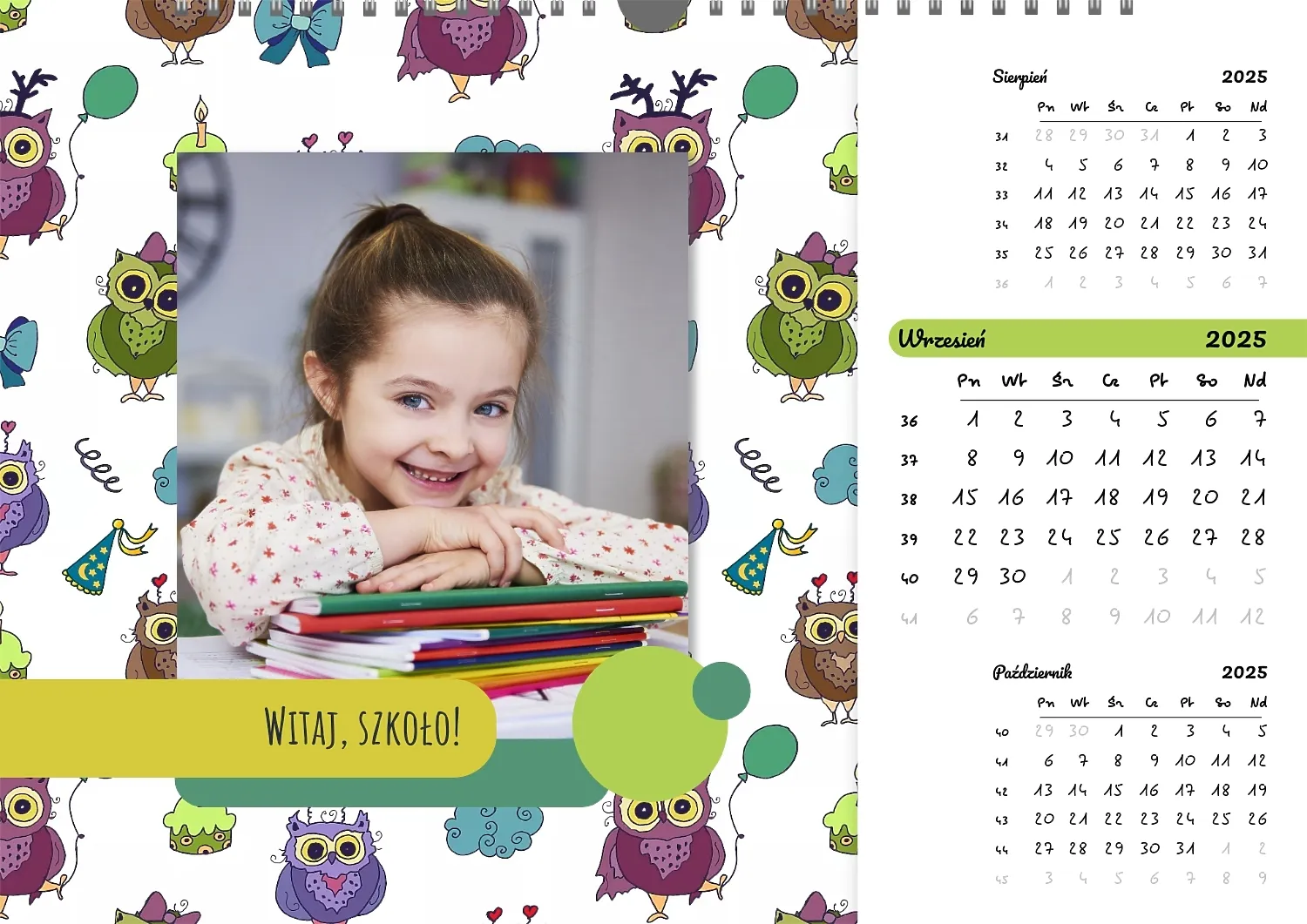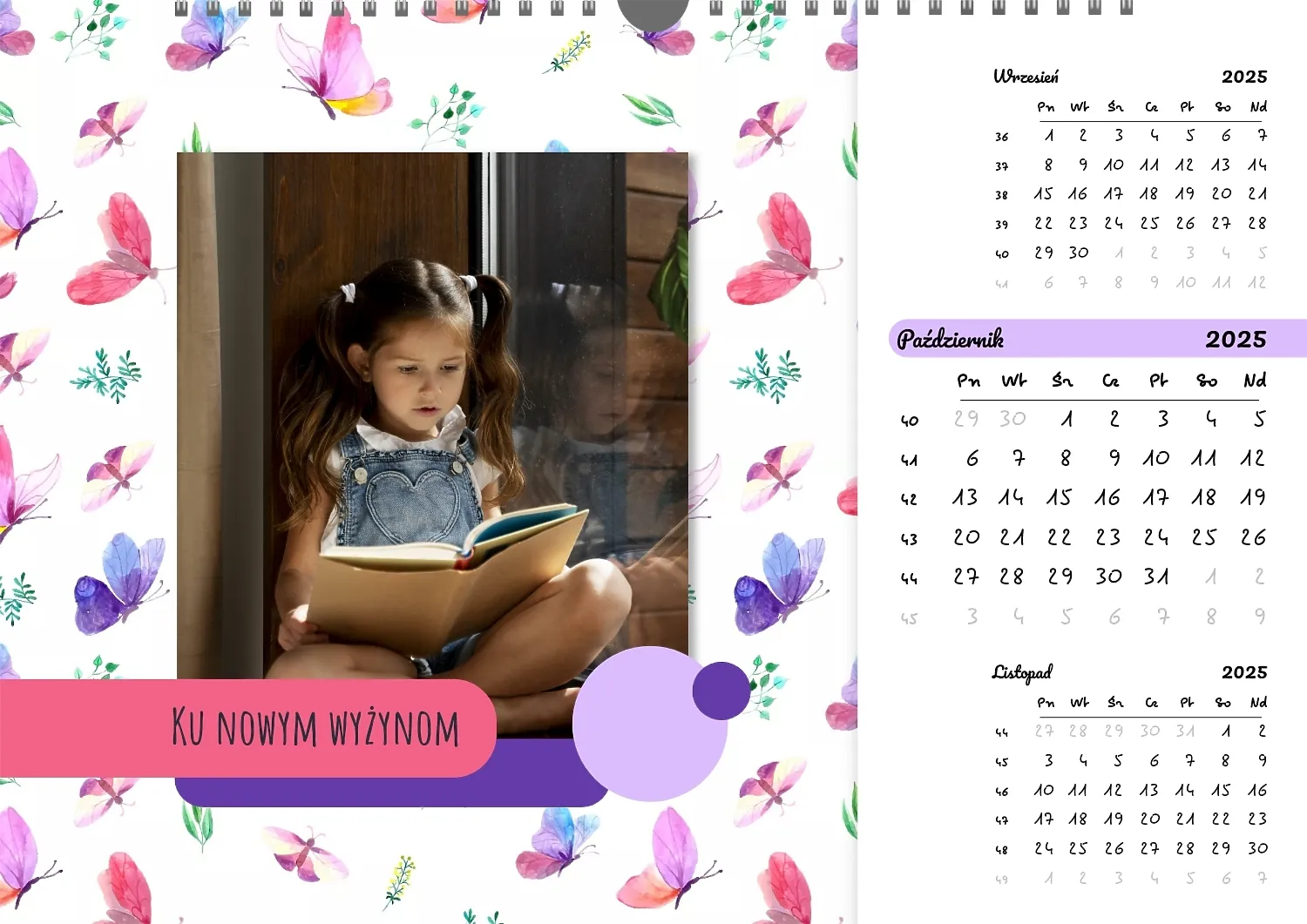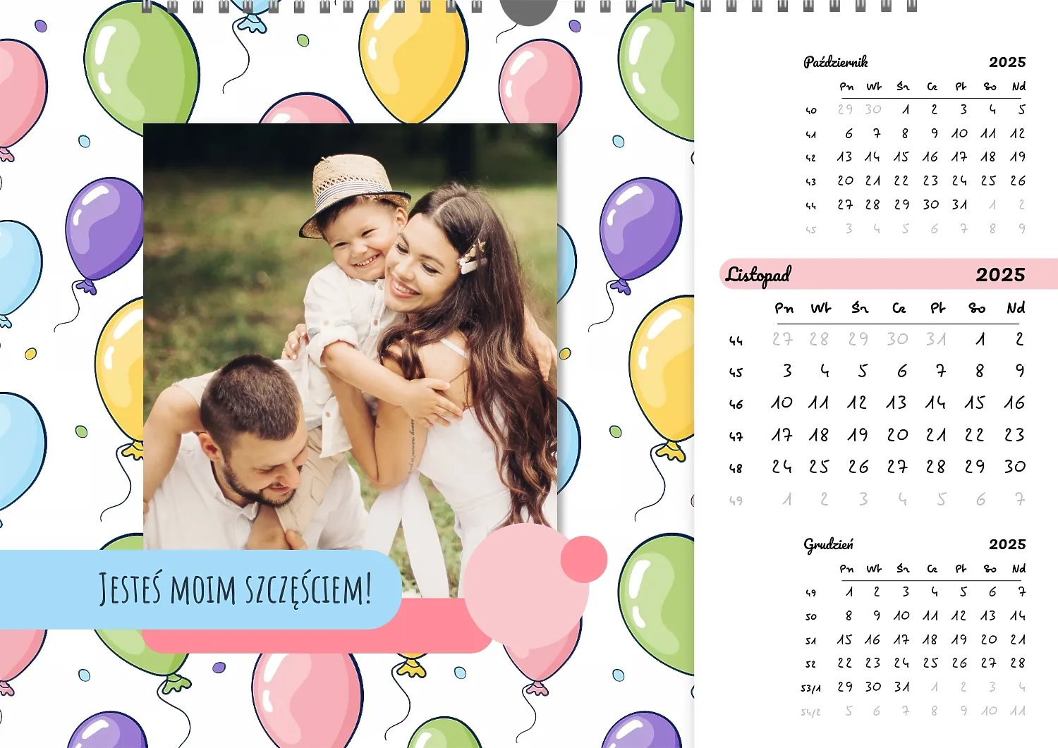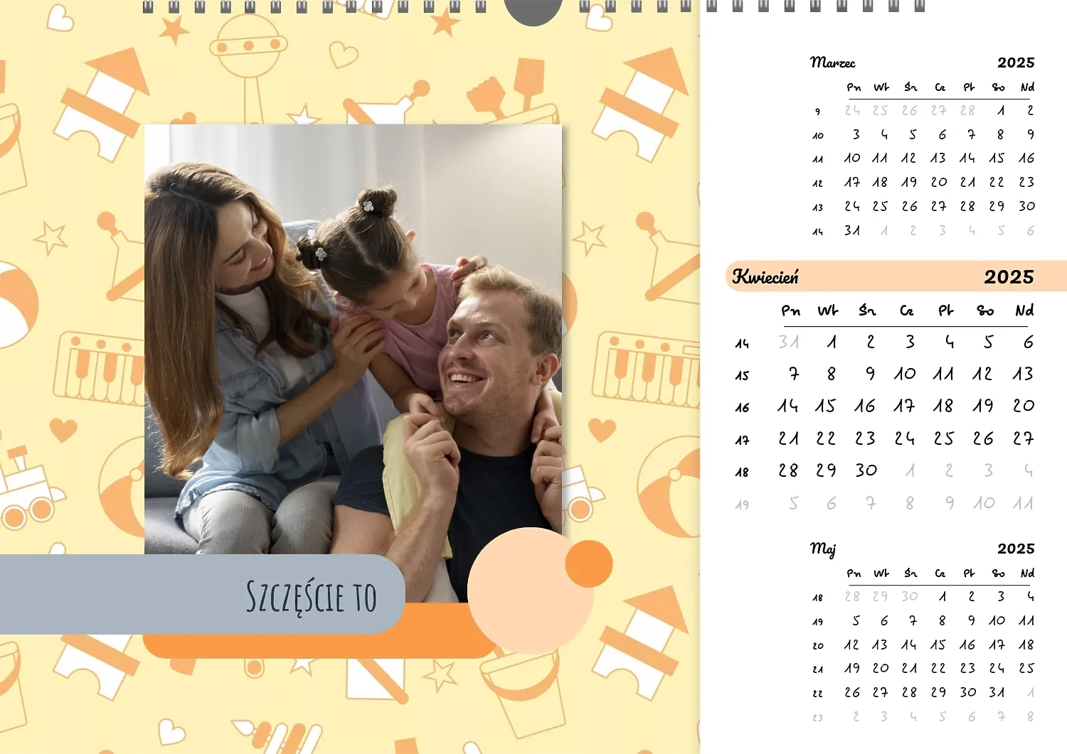 Darmowy szablon kalendarza ściennego dla dzieci na niezapomniane chwile, z możliwością edycji w kreatorze kalendarza.