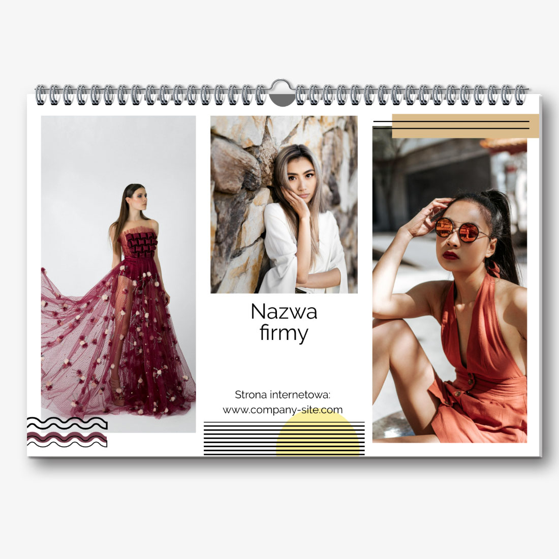 Darmowy szablon kalendarza ściennego-portfolio dla studiów fotograficznych, fotografów i artystów fotograficznych, z możliwością edycji w kreatorze kalendarzy.