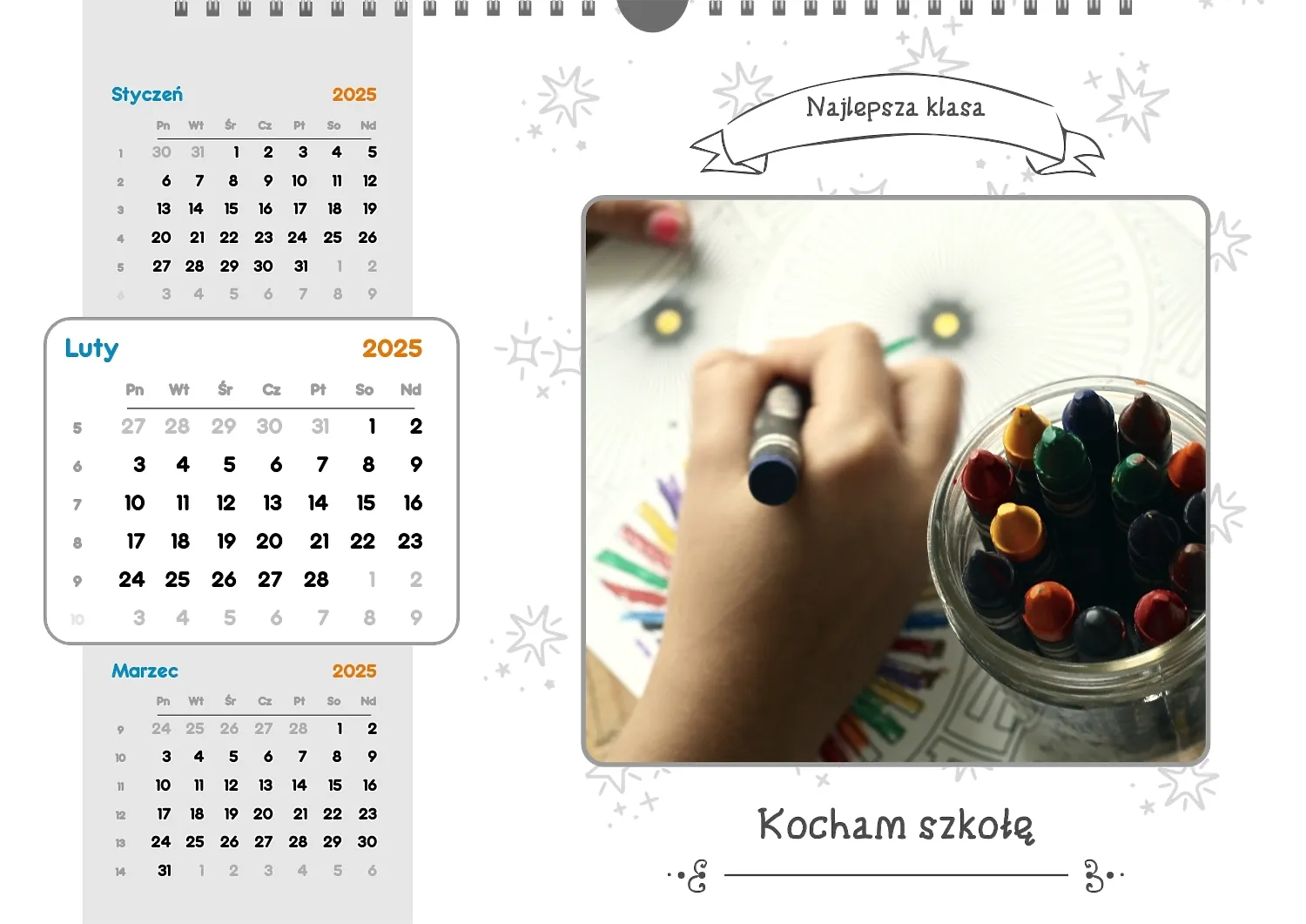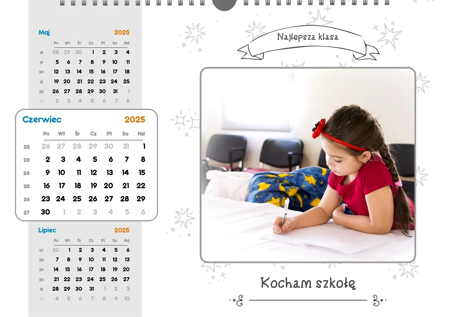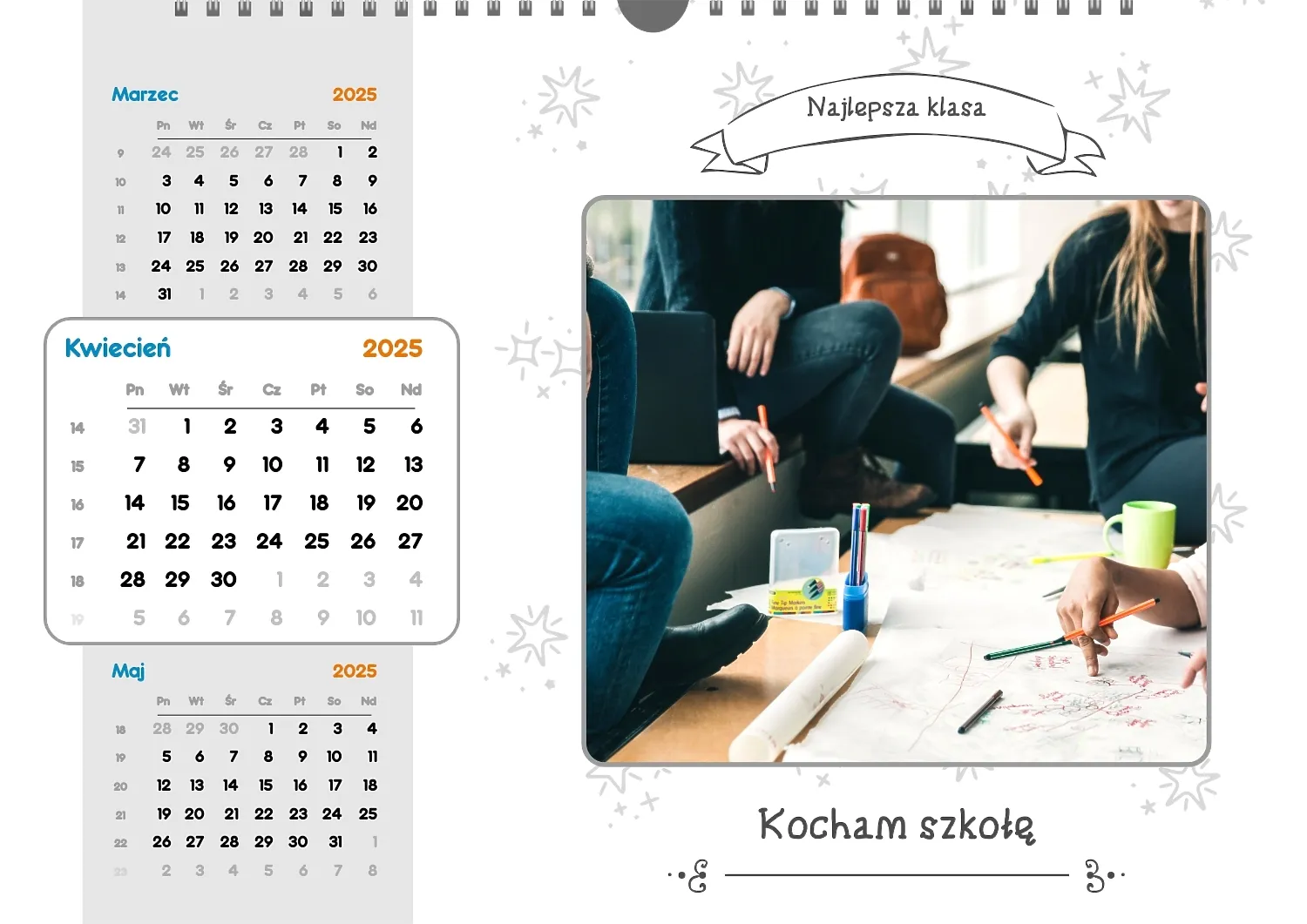 Darmowy szablon kalendarza ściennego szkoły zbiorowej online dla klasy lub grupy. Utwórz układ DIY w kreatorze kalendarzy online.