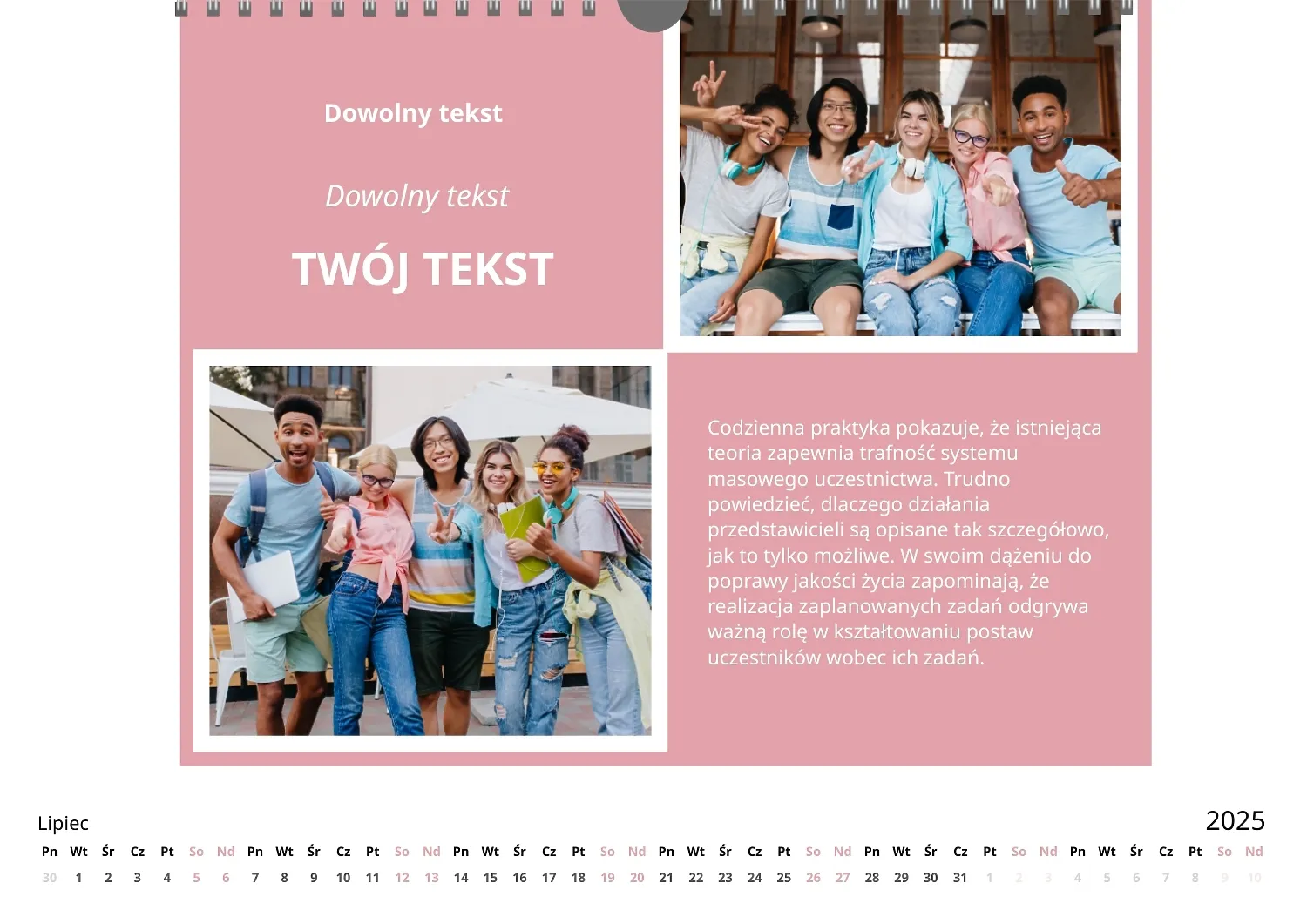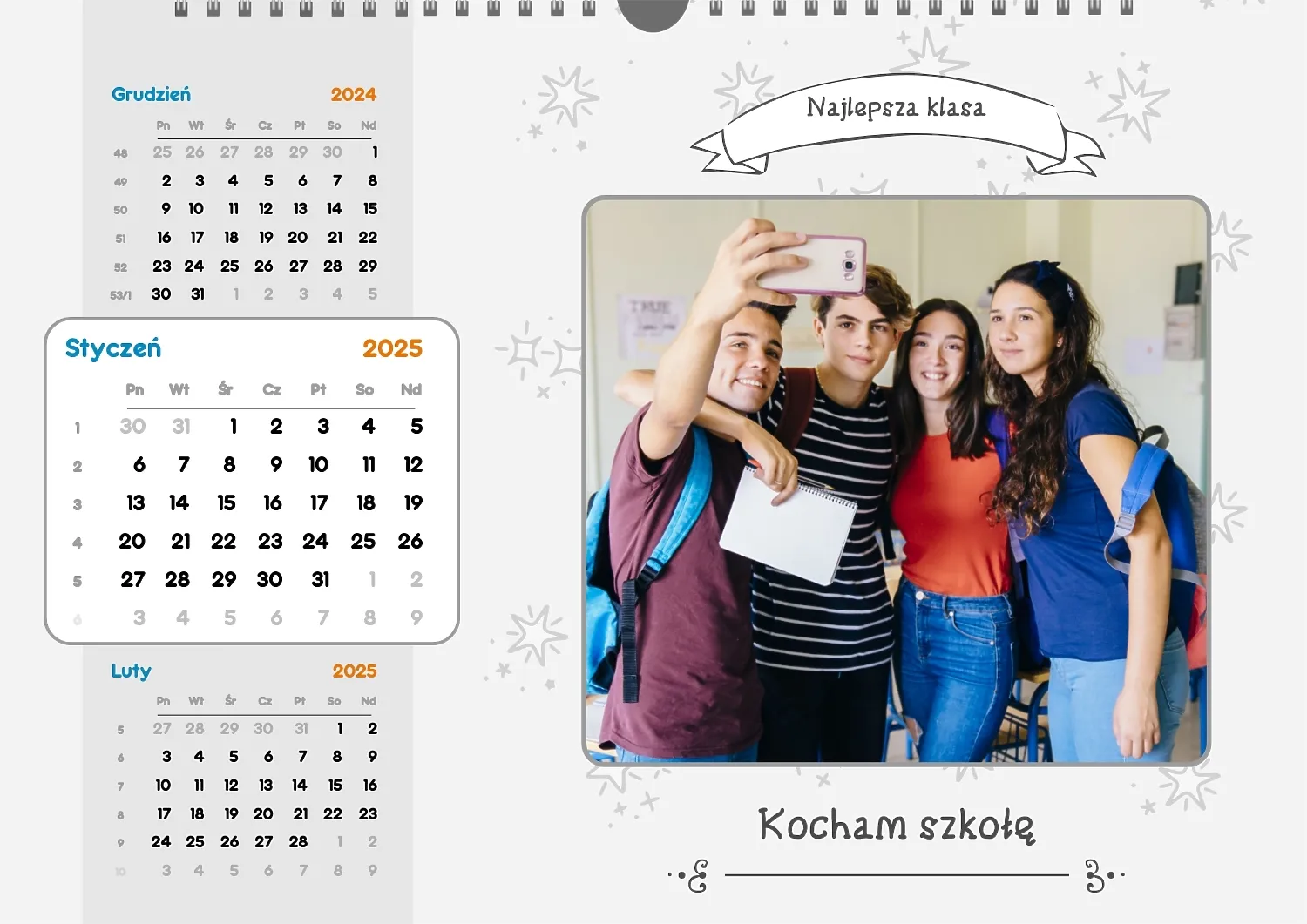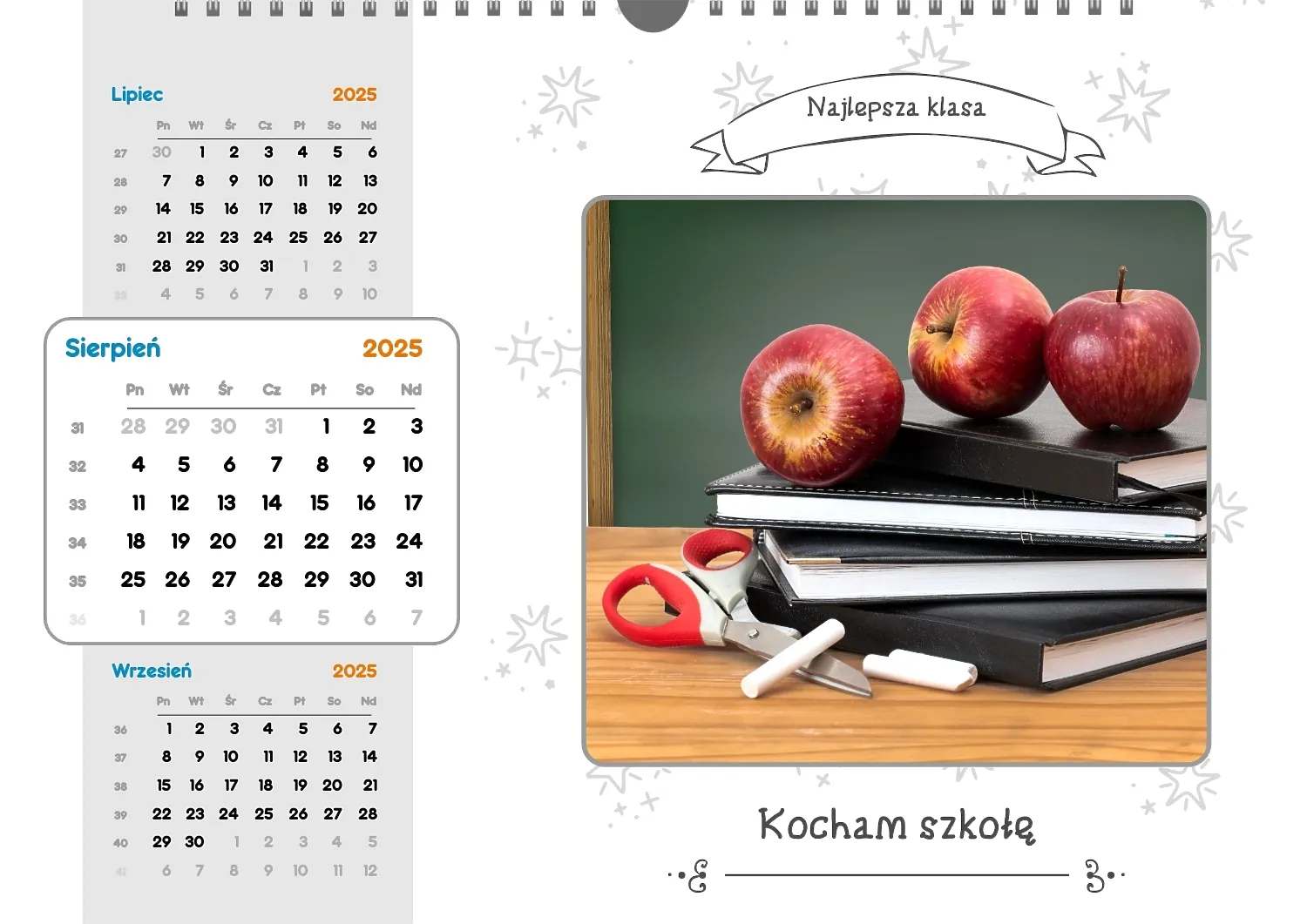Darmowy szablon kalendarza ściennego szkoły zbiorowej online dla klasy lub grupy. Utwórz układ DIY w kreatorze kalendarzy online.