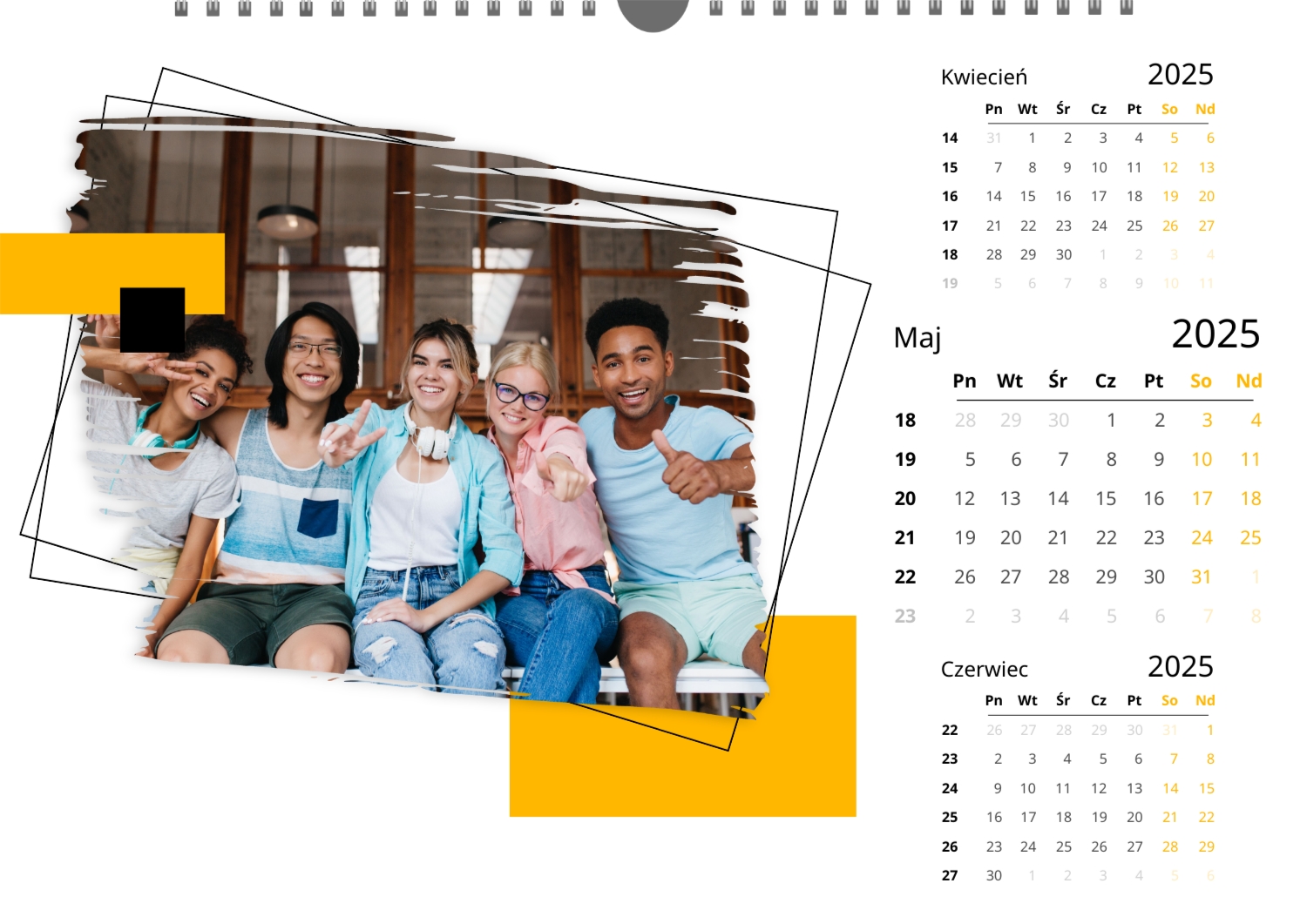 Darmowy szablon kalendarza ściennego szkoły zbiorowej online dla klasy lub grupy. Utwórz układ DIY w kreatorze kalendarzy online.