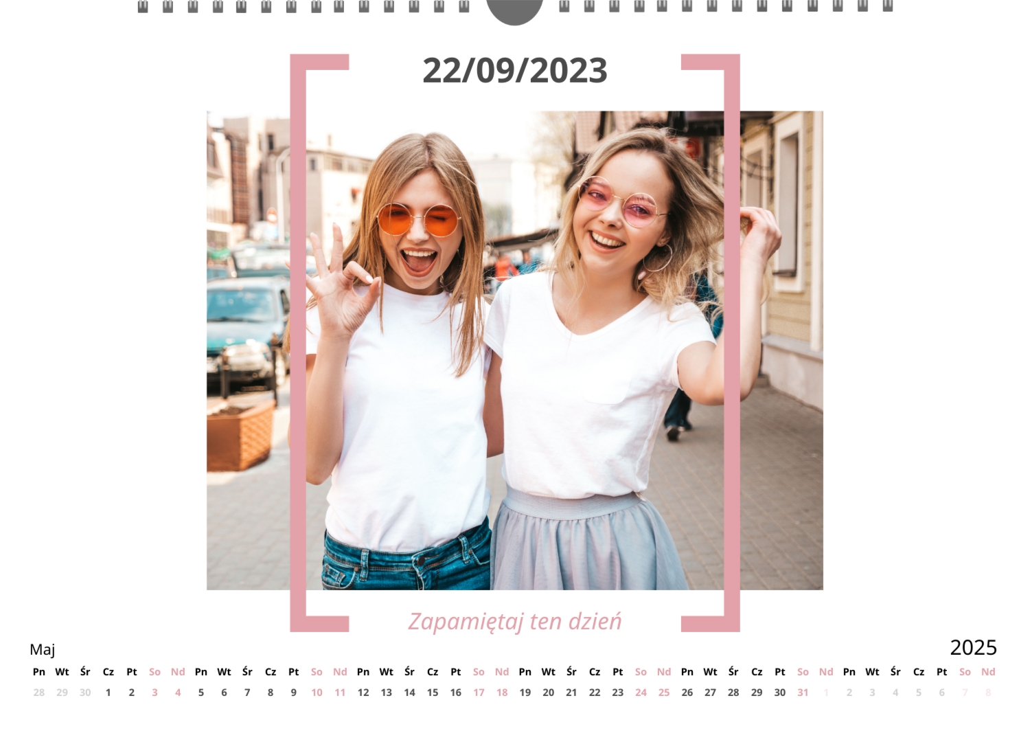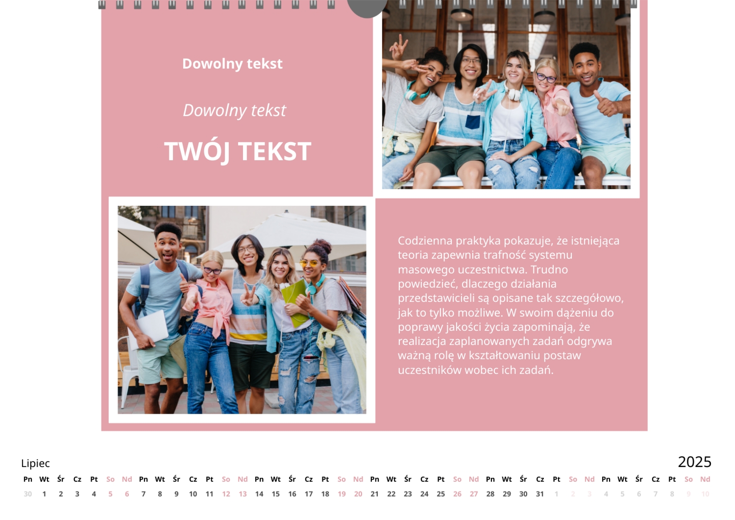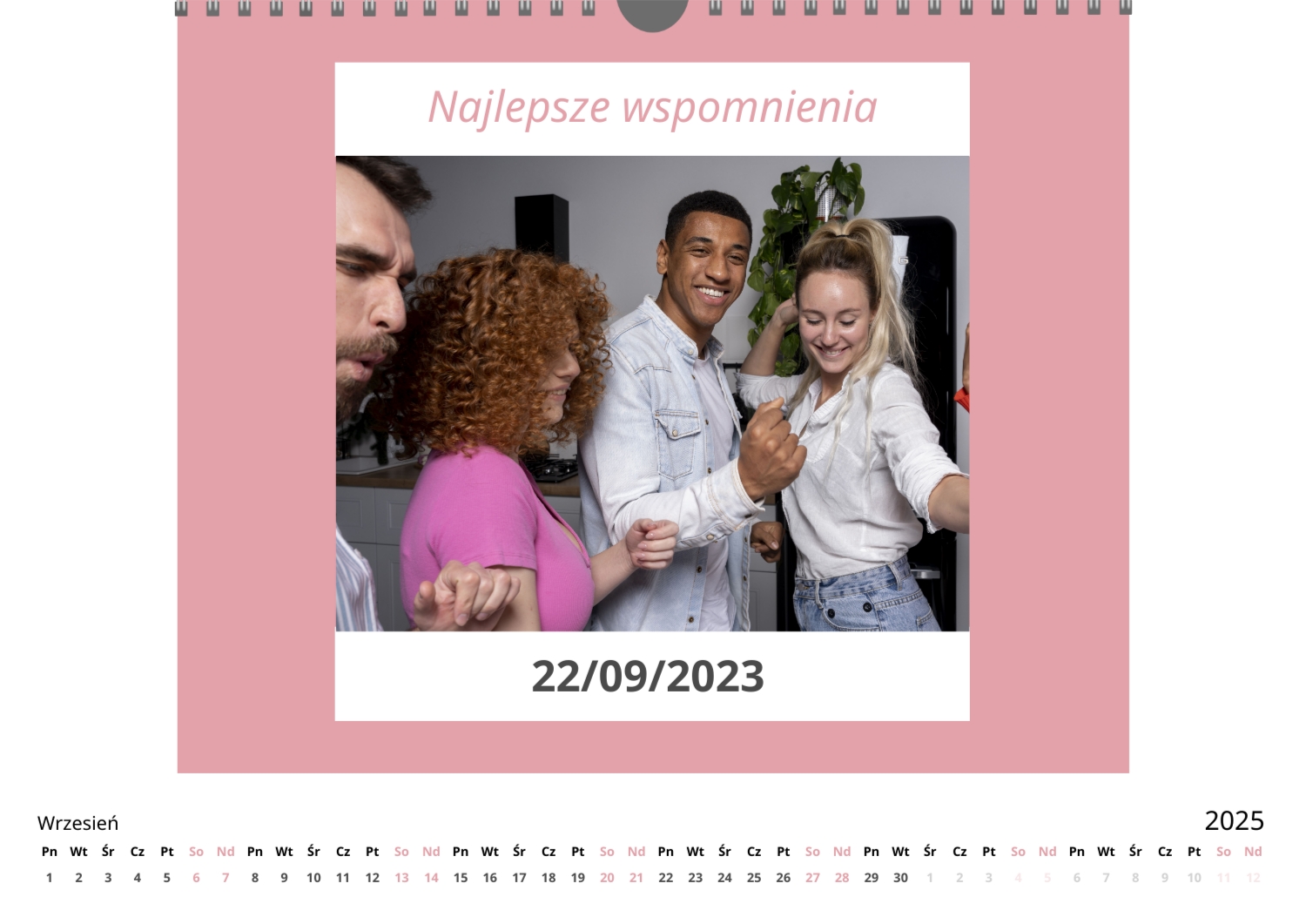 Darmowy szablon kalendarza ze wspólnymi wspomnieniami znajomych. Utwórz układ DIY w kreatorze kalendarzy online.
