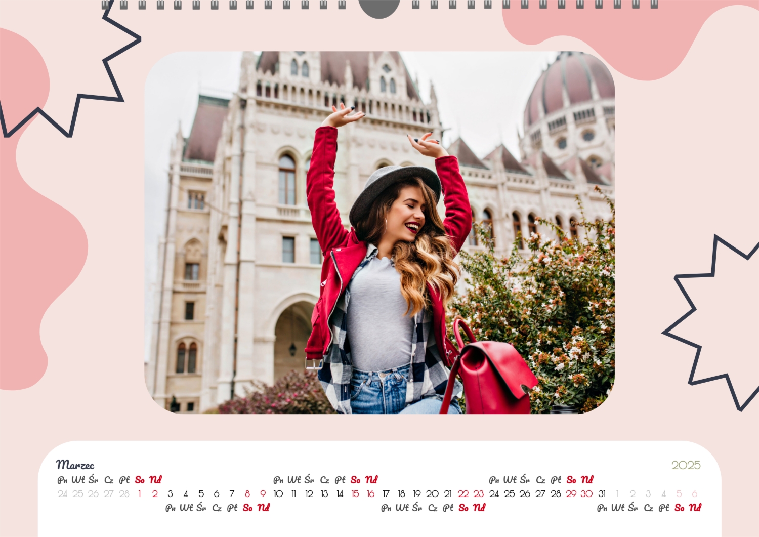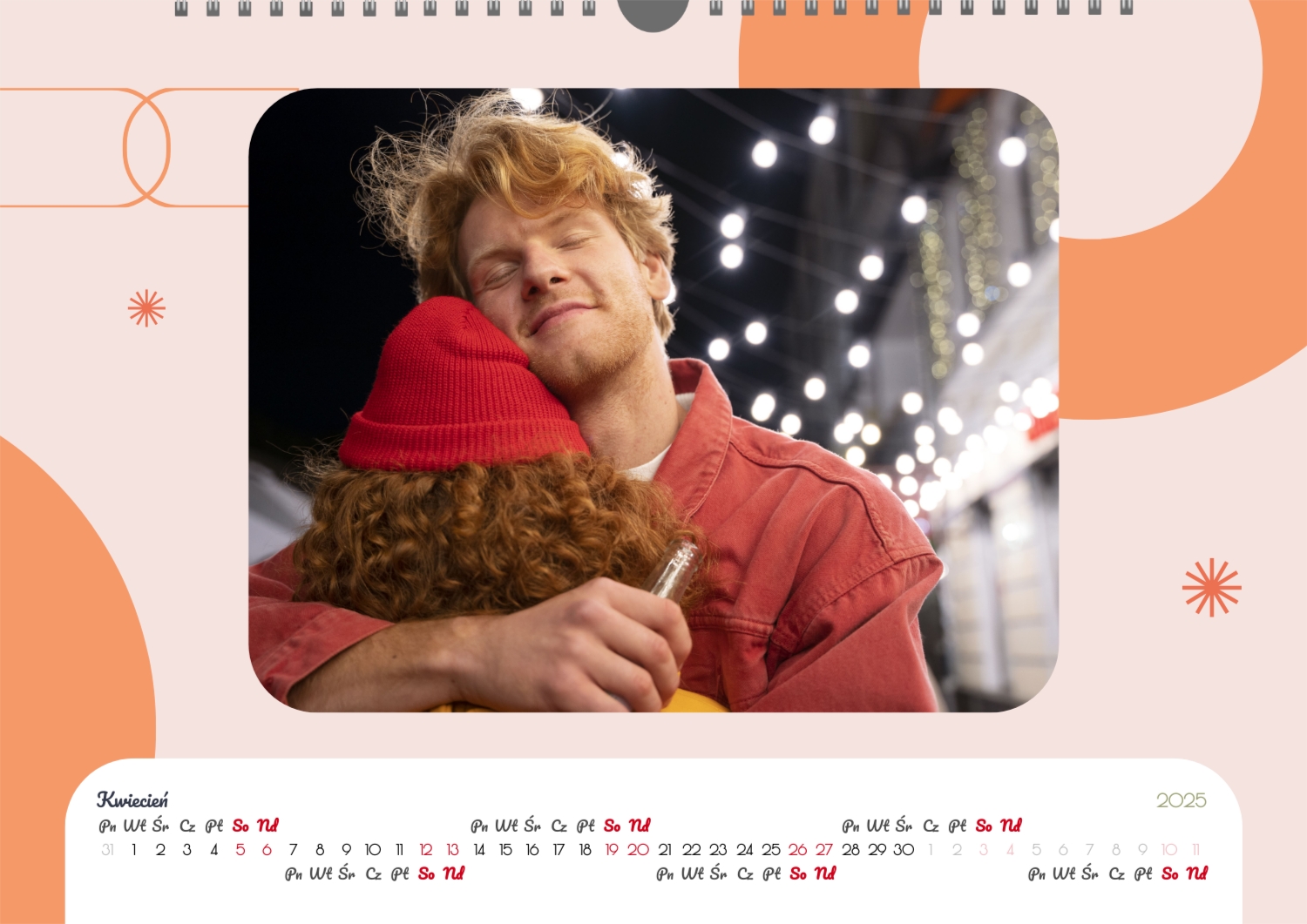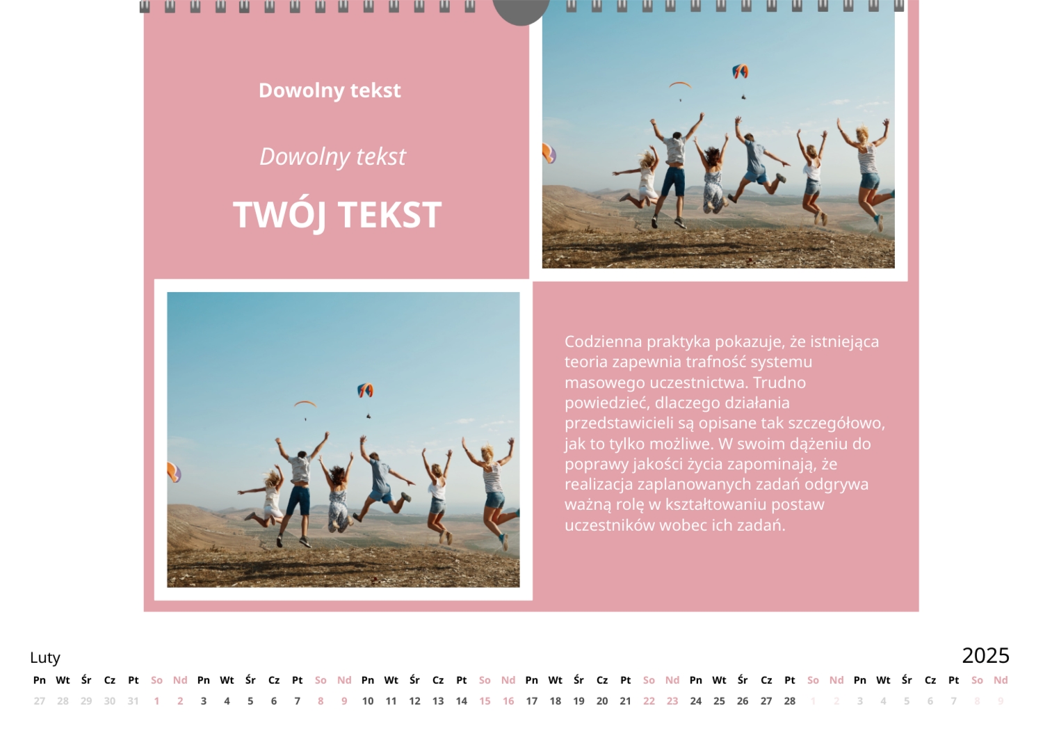 Darmowy szablon kalendarza ze wspólnymi wspomnieniami znajomych. Utwórz układ DIY w kreatorze kalendarzy online.