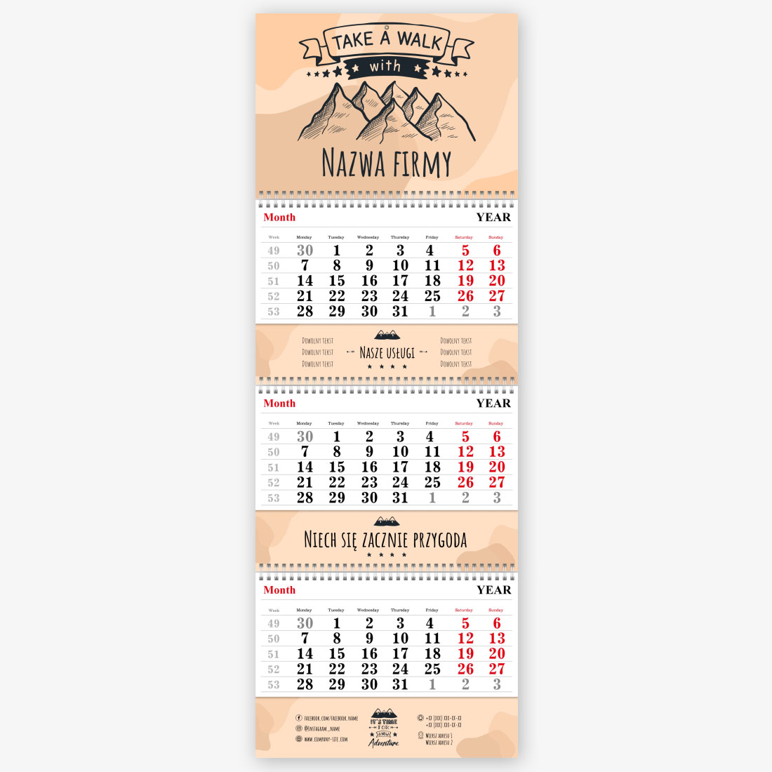 Gotowy szablon kalendarza ściennego ze zdjęciami potraw to idealne rozwiązanie do stworzenia stylowego i profesjonalnego kalendarza dla restauracji, kawiarni i innych lokali gastronomicznych. Jasne i apetyczne obrazy potraw, harmonijnie wkomponowane w projekt, natychmiast przyciągną uwagę i stworzą u klienta poczucie jakości i dbałości o szczegóły. Ten szablon będzie przydatnym narzędziem dla szefów kuchni, restauratorów, menedżerów marketingu, a nawet blogerów gastronomicznych. Podkreśli niepowtarzalny styl instytucji i może stać się nie tylko funkcjonalnym kalendarzem, ale także elementem tożsamości korporacyjnej. W kreatorze online przyjazny dla użytkownika i intuicyjny interfejs ułatwia dostosowanie projektu do Twoich potrzeb. Możesz zamienić zdjęcia na zdjęcia swoich potraw, dodać logo, zmienić kolory i czcionki, aby w pełni pasowały do tożsamości marki. Ponadto Kalendarz można uzupełnić ważnymi datami, promocjami lub informacjami o Twoim zakładzie.