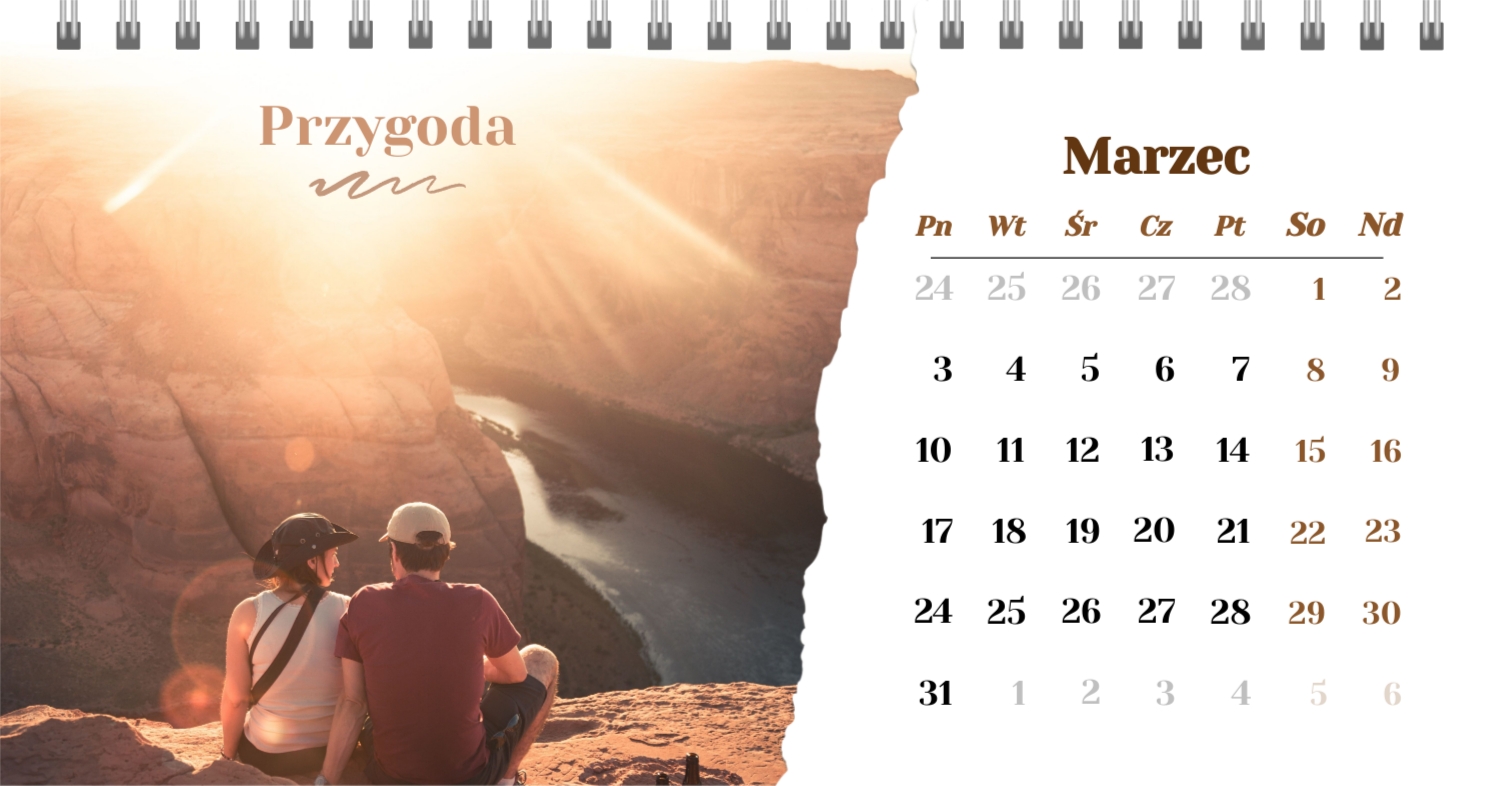 Gotowy szablon kalendarza rodzinnego na Biurko z wężem to oryginalna i funkcjonalna opcja dla tych, którzy chcą stworzyć stylowy i niezapomniany kalendarz. Główny nacisk kładziony jest na wizerunek węża, który symbolizuje mądrość, odnowę i harmonię. Ten projekt idealnie pasuje zarówno do albumu rodzinnego, jak i do przestrzeni roboczych. Szczególną zaletą tego poziomego szablonu są szerokie możliwości edycji w kreatorze online. Możesz zmienić paletę kolorów, dopasować inne czcionki lub dodać osobiste zdjęcia do każdego miesiąca. Kreator umożliwia łatwe i szybkie dostosowanie szablonu do Twoich potrzeb: czy to dodawanie niezapomnianych dat, podkreślanie świąt, czy robienie profesjonalnych notatek. Dzięki intuicyjnym narzędziom do edycji tworzenie unikalnego kalendarza biurkowego staje się łatwym i przyjemnym procesem.
