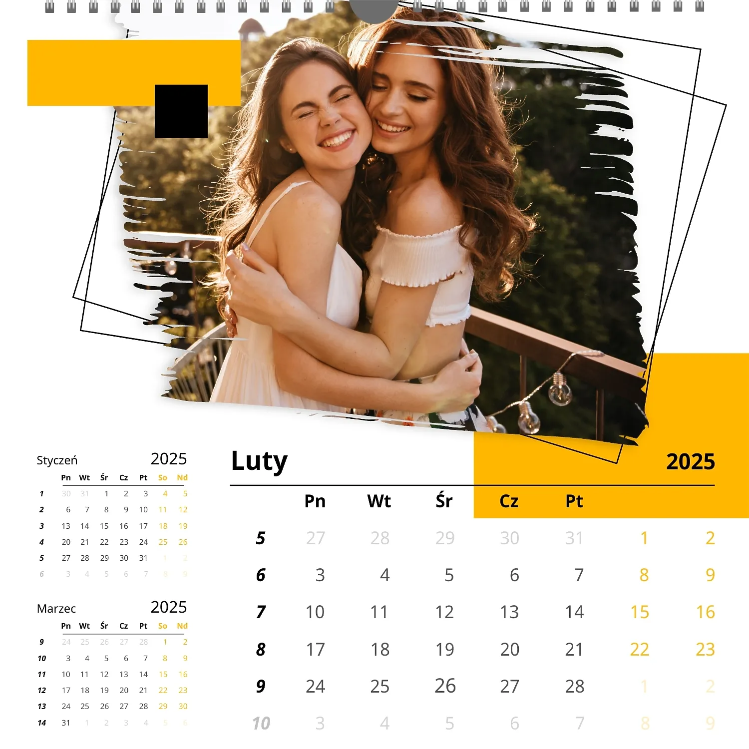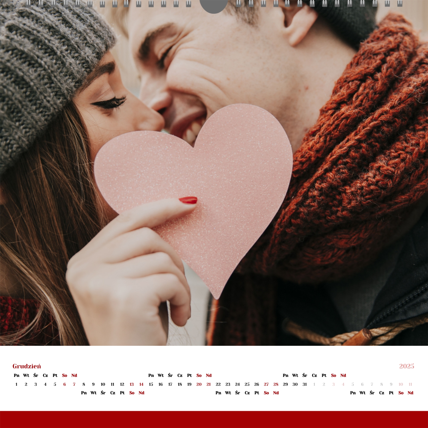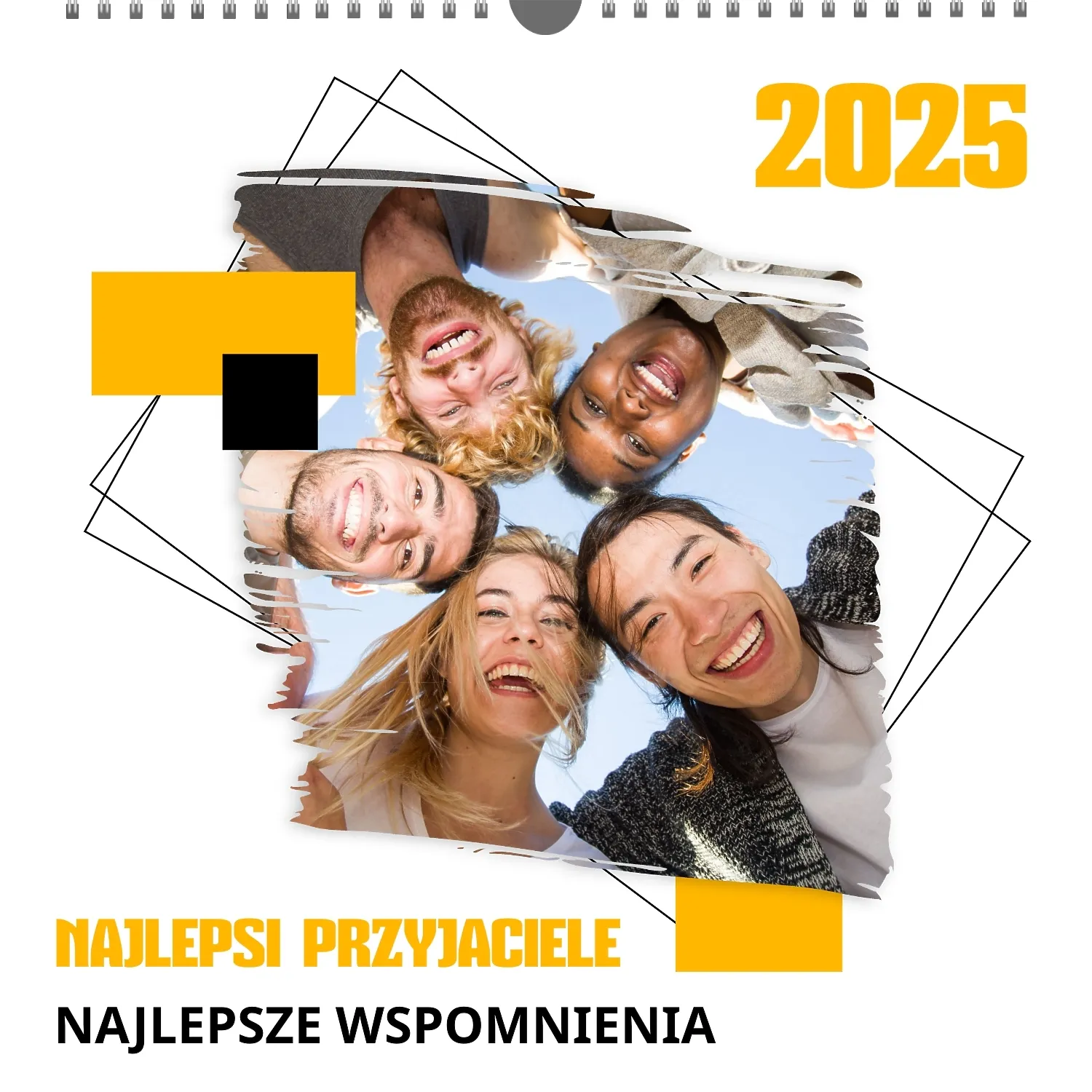 Szablon kalendarza "najlepsze wspomnienia" to idealna podstawa do stworzenia spersonalizowanego kwadratowego kalendarza ściennego, który będzie odzwierciedlał najważniejsze momenty Twojego życia. Ten szablon jest odpowiedni dla każdego użytkownika, który chce podkreślić osobowość i zachować ważne wydarzenia w stylowym i funkcjonalnym formacie. Szczególnie przyda się fotografom, parom, właścicielom kreatywnych studiów lub małym firmom, które chcą stworzyć wyjątkowy produkt dla klientów lub podarować swoim bliskim coś wyjątkowego. Główną cechą szablonu "najlepsze wspomnienia" jest jego wszechstronność. Możesz łatwo dostosować projekt do swoich potrzeb dzięki naszemu poręcznemu kreatorowi online. Edycja pozwala zastąpić zdjęcia, dodać bloki tekstowe z ważnymi datami lub inspirującymi cytatami oraz wybrać kolorystykę, która podkreśli Twój nastrój. Kreator oferuje prosty interfejs, w którym dosłownie tworzysz unikalny kalendarz własnymi rękami, dodając osobiste akcenty i eksperymentując z elementami projektu.