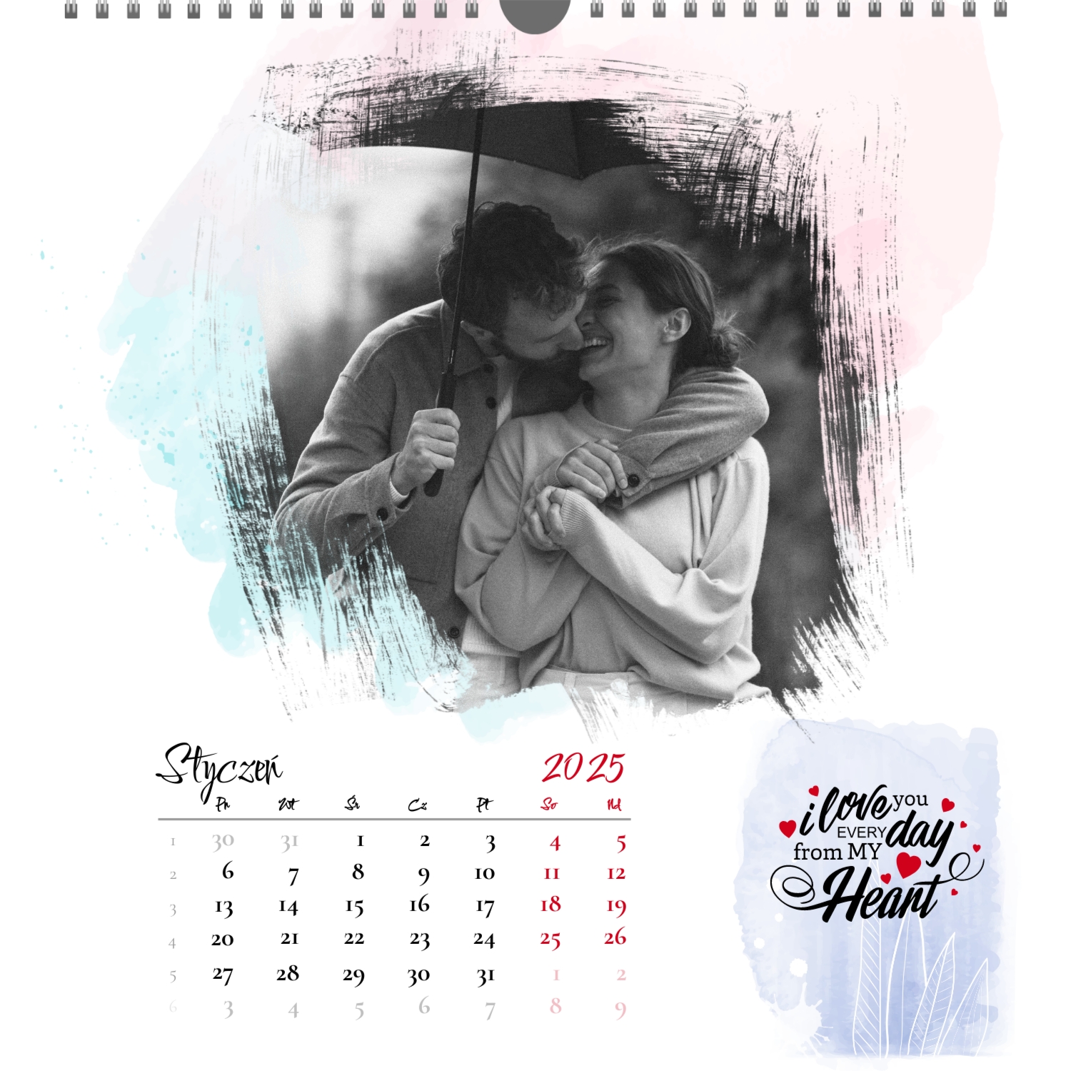 Szablon kalendarza "najlepsze wspomnienia" to idealna podstawa do stworzenia spersonalizowanego kwadratowego kalendarza ściennego, który będzie odzwierciedlał najważniejsze momenty Twojego życia. Ten szablon jest odpowiedni dla każdego użytkownika, który chce podkreślić osobowość i zachować ważne wydarzenia w stylowym i funkcjonalnym formacie. Szczególnie przyda się fotografom, parom, właścicielom kreatywnych studiów lub małym firmom, które chcą stworzyć wyjątkowy produkt dla klientów lub podarować swoim bliskim coś wyjątkowego. Główną cechą szablonu "najlepsze wspomnienia" jest jego wszechstronność. Możesz łatwo dostosować projekt do swoich potrzeb dzięki naszemu poręcznemu kreatorowi online. Edycja pozwala zastąpić zdjęcia, dodać bloki tekstowe z ważnymi datami lub inspirującymi cytatami oraz wybrać kolorystykę, która podkreśli Twój nastrój. Kreator oferuje prosty interfejs, w którym dosłownie tworzysz unikalny kalendarz własnymi rękami, dodając osobiste akcenty i eksperymentując z elementami projektu.