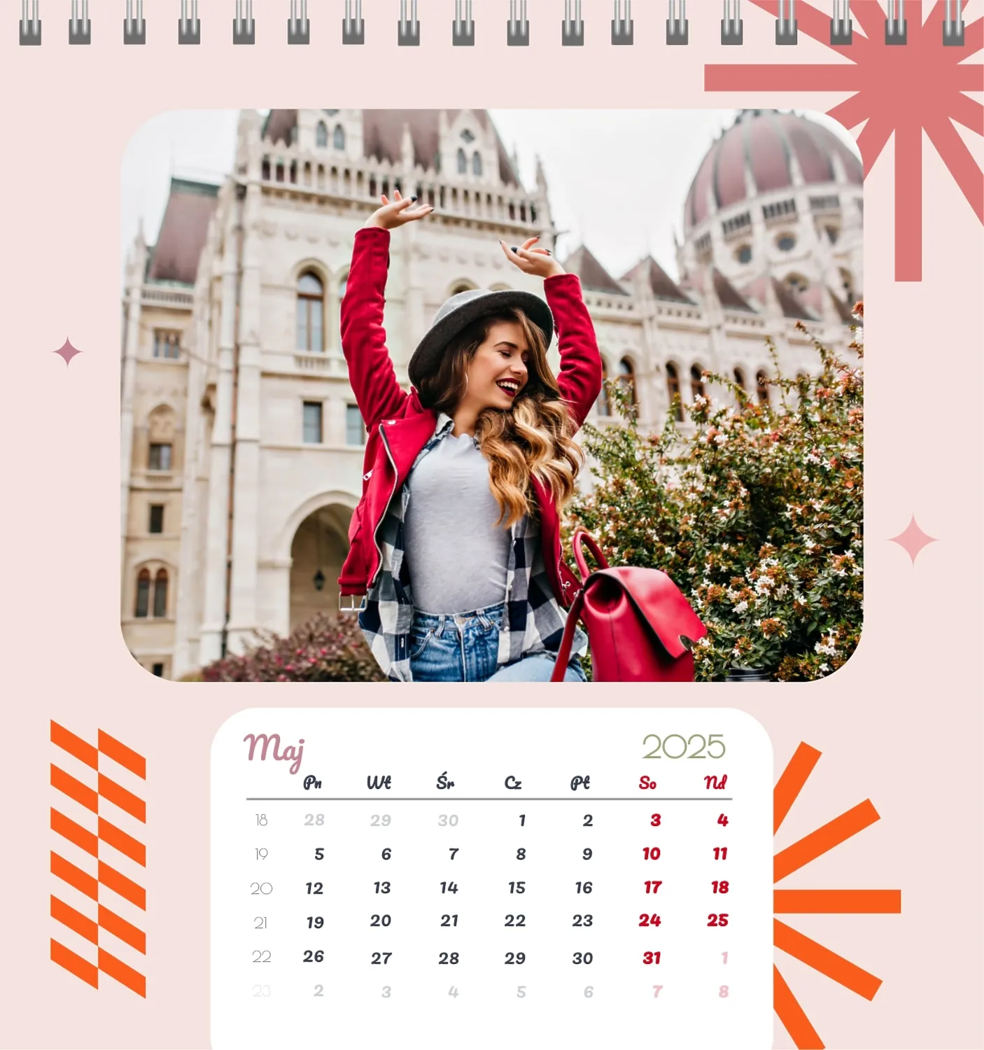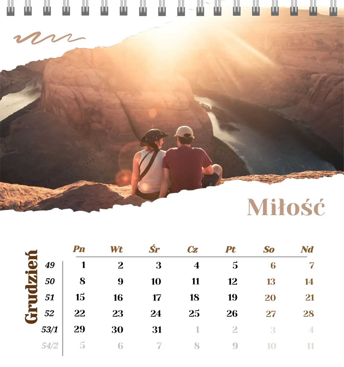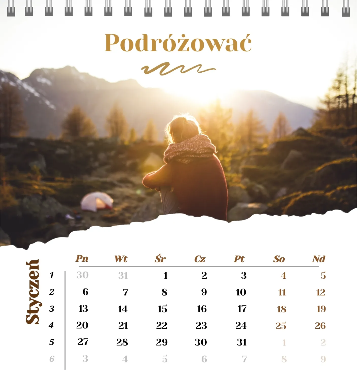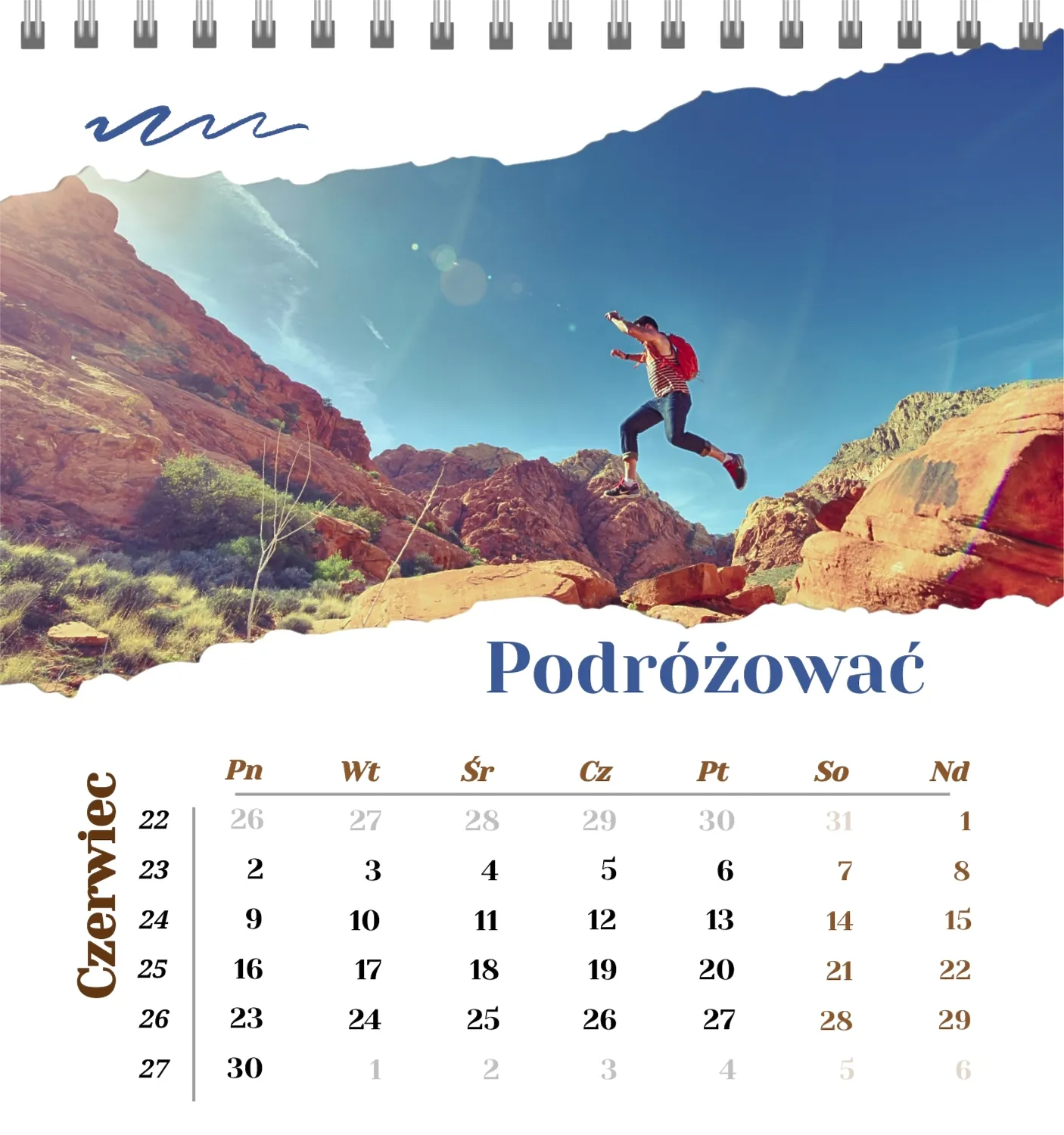 Szablon kalendarza "najlepsze wspomnienia" to idealna podstawa do stworzenia spersonalizowanego 13-stronicowego kalendarza biurkowego, który będzie odzwierciedlał najważniejsze momenty Twojego życia. Ten szablon jest odpowiedni dla każdego użytkownika, który chce podkreślić osobowość i zachować ważne wydarzenia w stylowym i funkcjonalnym formacie. Szczególnie przyda się fotografom, parom, właścicielom kreatywnych studiów lub małym firmom, które chcą stworzyć wyjątkowy produkt dla klientów lub podarować swoim bliskim coś wyjątkowego. Możesz łatwo dostosować projekt do swoich potrzeb dzięki naszemu poręcznemu kreatorowi online. Edycja pozwala zastąpić zdjęcia, dodać bloki tekstowe z ważnymi datami lub inspirującymi cytatami oraz wybrać kolorystykę, która podkreśli Twój nastrój. Kreator oferuje prosty interfejs, w którym dosłownie tworzysz unikalny kalendarz własnymi rękami, dodając osobiste akcenty i eksperymentując z elementami projektu.