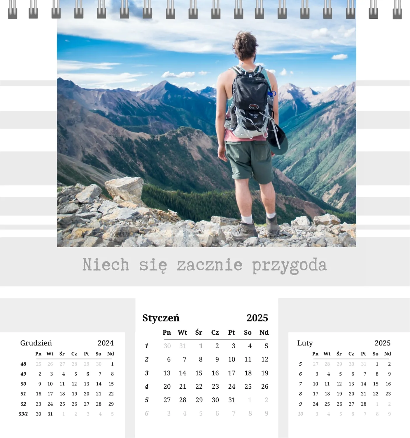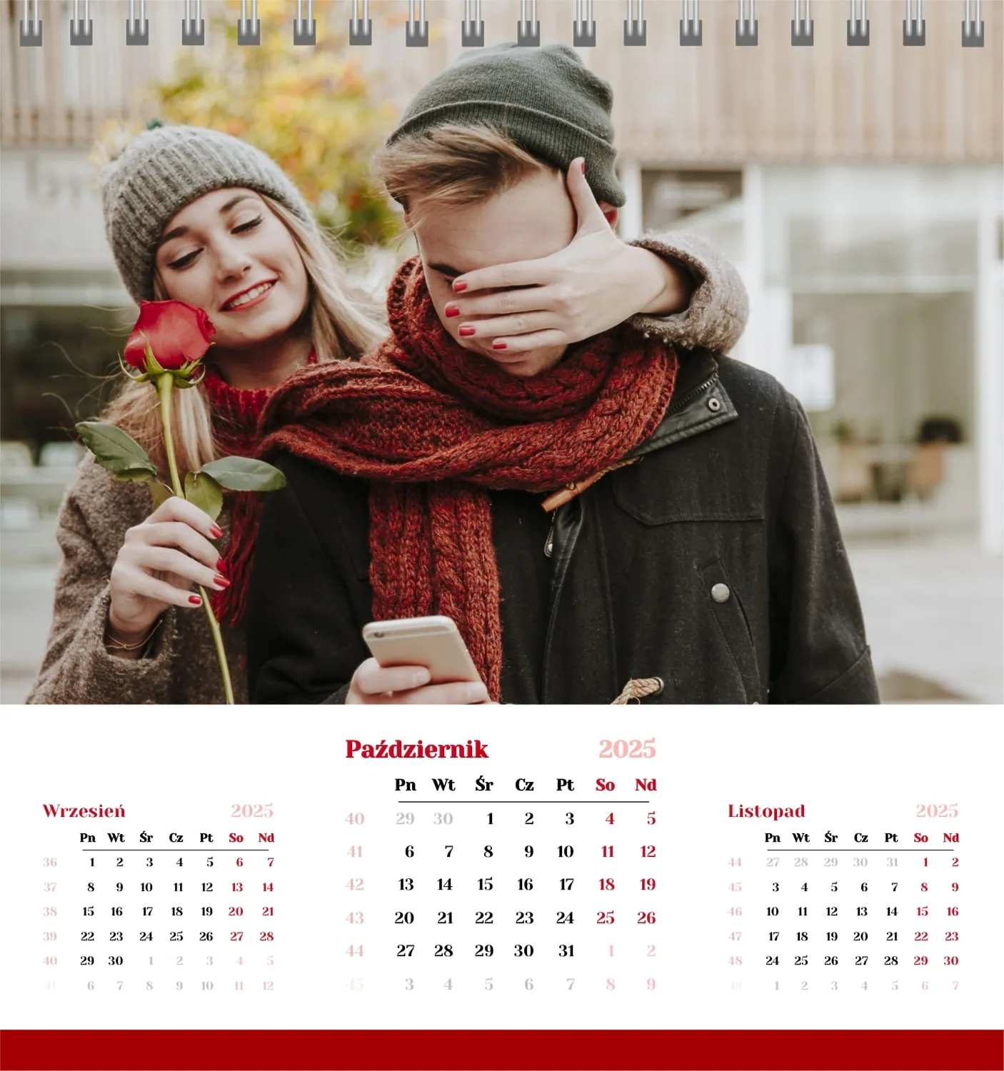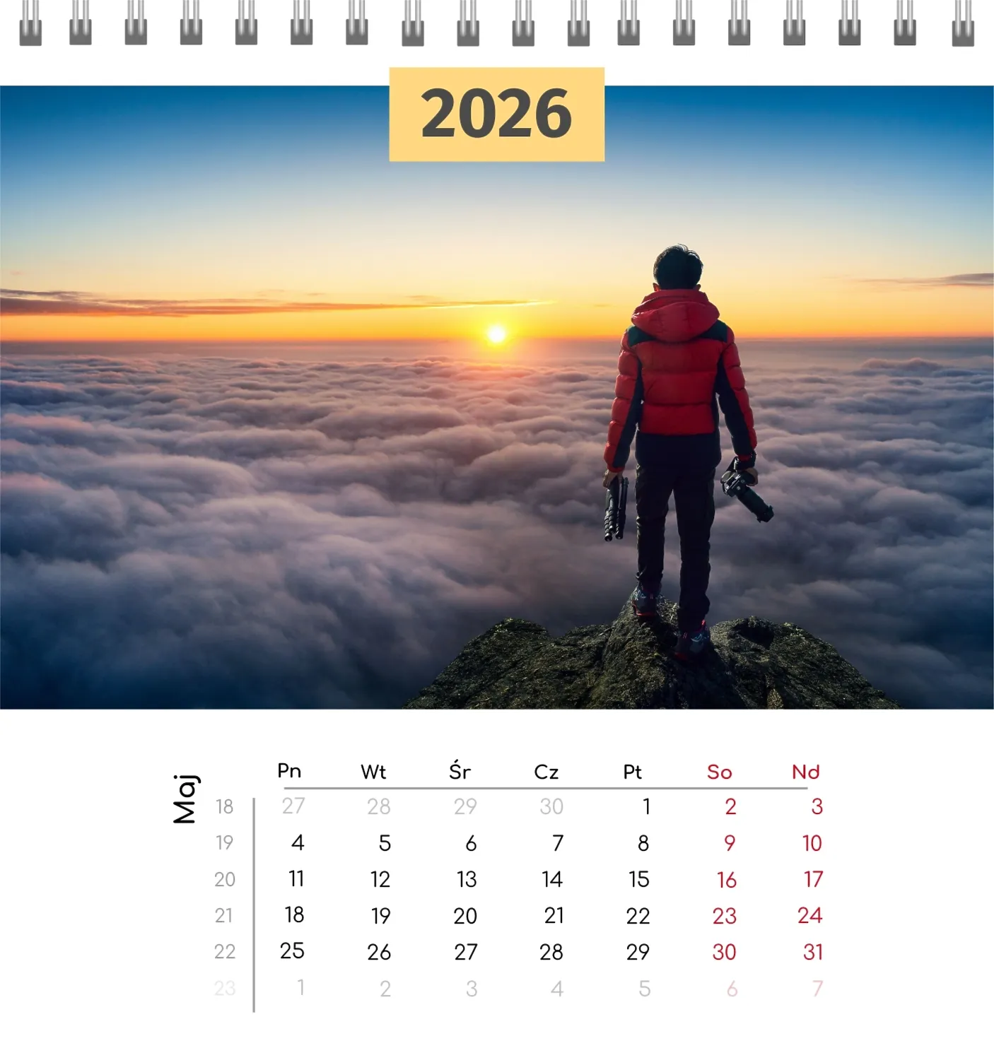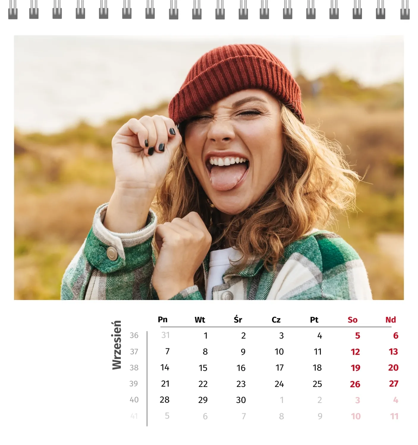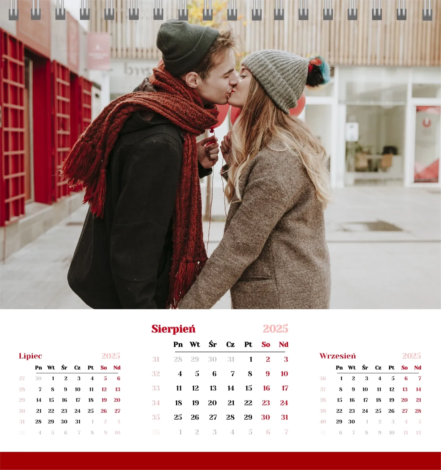 Szablon kalendarza "najlepsze wspomnienia" to idealna podstawa do stworzenia spersonalizowanego 13-stronicowego kalendarza biurkowego, który będzie odzwierciedlał najważniejsze momenty Twojego życia. Ten szablon jest odpowiedni dla każdego użytkownika, który chce podkreślić osobowość i zachować ważne wydarzenia w stylowym i funkcjonalnym formacie. Szczególnie przyda się fotografom, parom, właścicielom kreatywnych studiów lub małym firmom, które chcą stworzyć wyjątkowy produkt dla klientów lub podarować swoim bliskim coś wyjątkowego. Możesz łatwo dostosować projekt do swoich potrzeb dzięki naszemu poręcznemu kreatorowi online. Edycja pozwala zastąpić zdjęcia, dodać bloki tekstowe z ważnymi datami lub inspirującymi cytatami oraz wybrać kolorystykę, która podkreśli Twój nastrój. Kreator oferuje prosty interfejs, w którym dosłownie tworzysz unikalny kalendarz własnymi rękami, dodając osobiste akcenty i eksperymentując z elementami projektu.