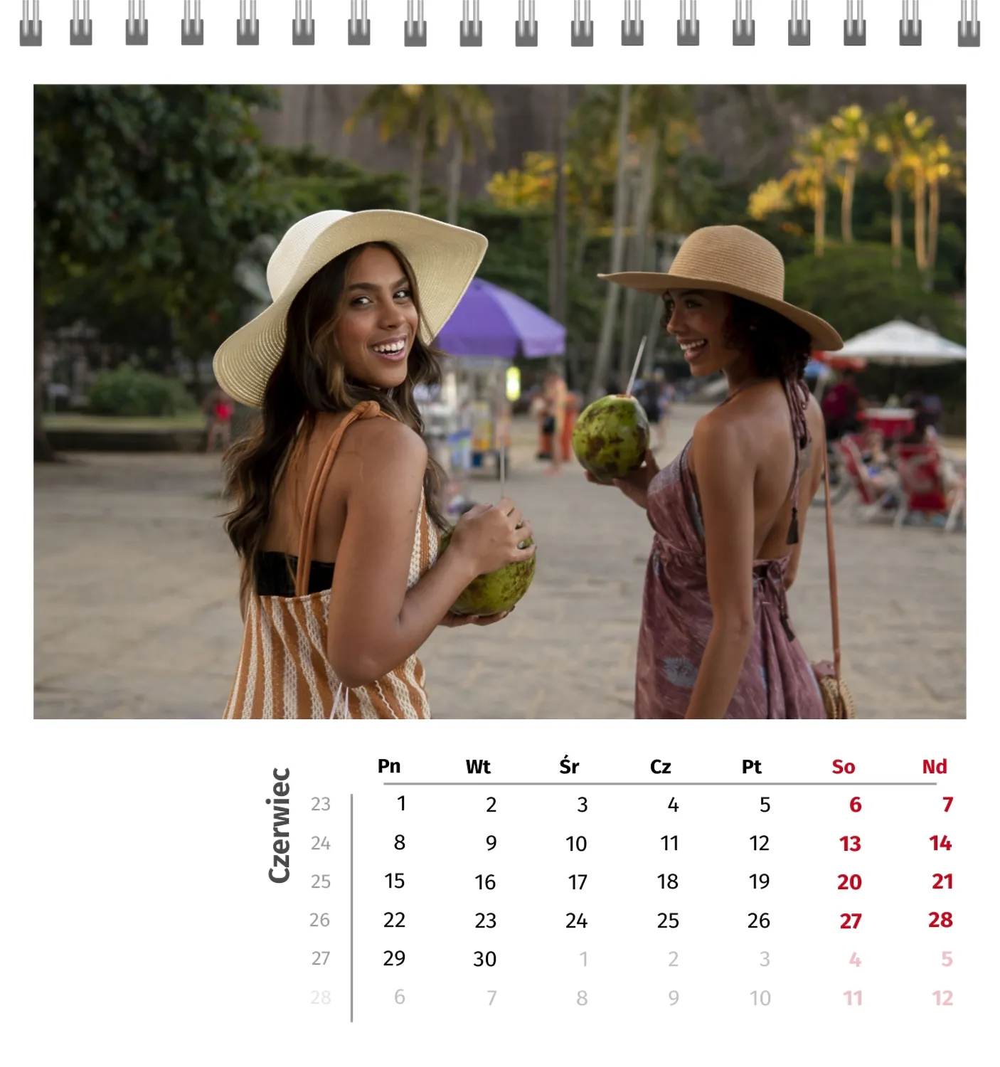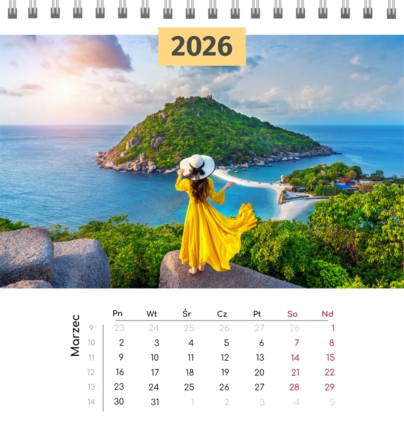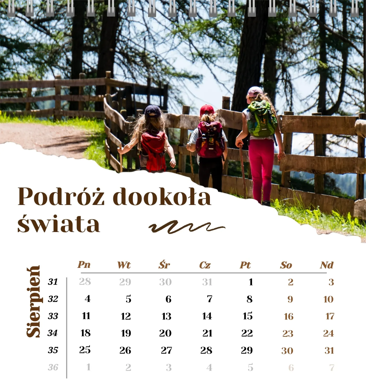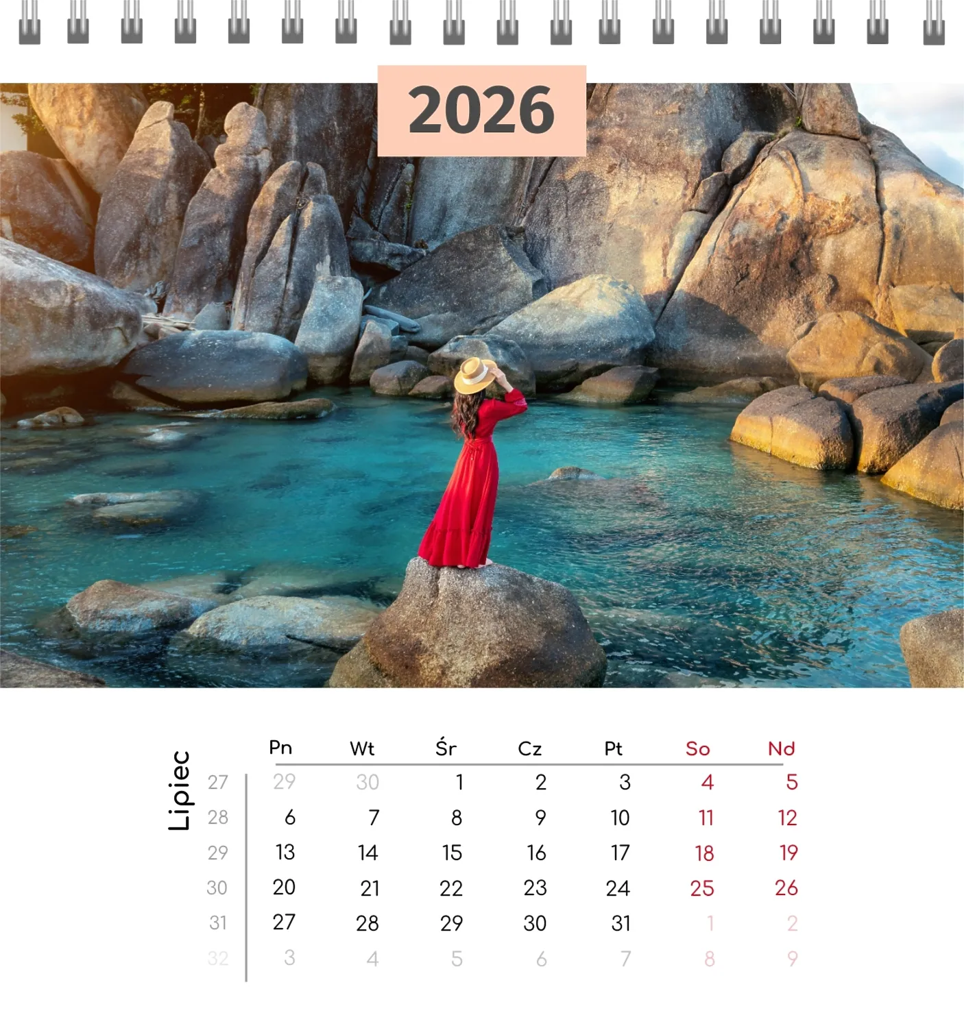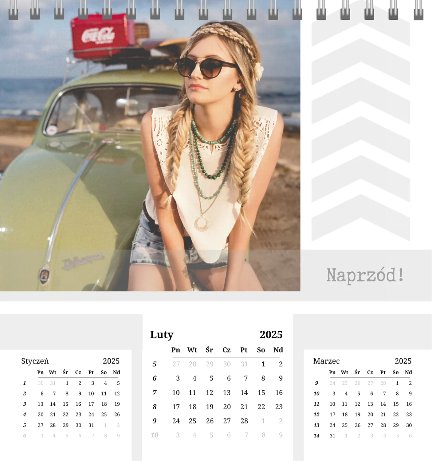 Szablon kalendarza "najlepsze wspomnienia" to idealna podstawa do stworzenia spersonalizowanego 13-stronicowego kalendarza biurkowego, który będzie odzwierciedlał najważniejsze momenty Twojego życia. Ten szablon jest odpowiedni dla każdego użytkownika, który chce podkreślić osobowość i zachować ważne wydarzenia w stylowym i funkcjonalnym formacie. Szczególnie przyda się fotografom, parom, właścicielom kreatywnych studiów lub małym firmom, które chcą stworzyć wyjątkowy produkt dla klientów lub podarować swoim bliskim coś wyjątkowego. Możesz łatwo dostosować projekt do swoich potrzeb dzięki naszemu poręcznemu kreatorowi online. Edycja pozwala zastąpić zdjęcia, dodać bloki tekstowe z ważnymi datami lub inspirującymi cytatami oraz wybrać kolorystykę, która podkreśli Twój nastrój. Kreator oferuje prosty interfejs, w którym dosłownie tworzysz unikalny kalendarz własnymi rękami, dodając osobiste akcenty i eksperymentując z elementami projektu.