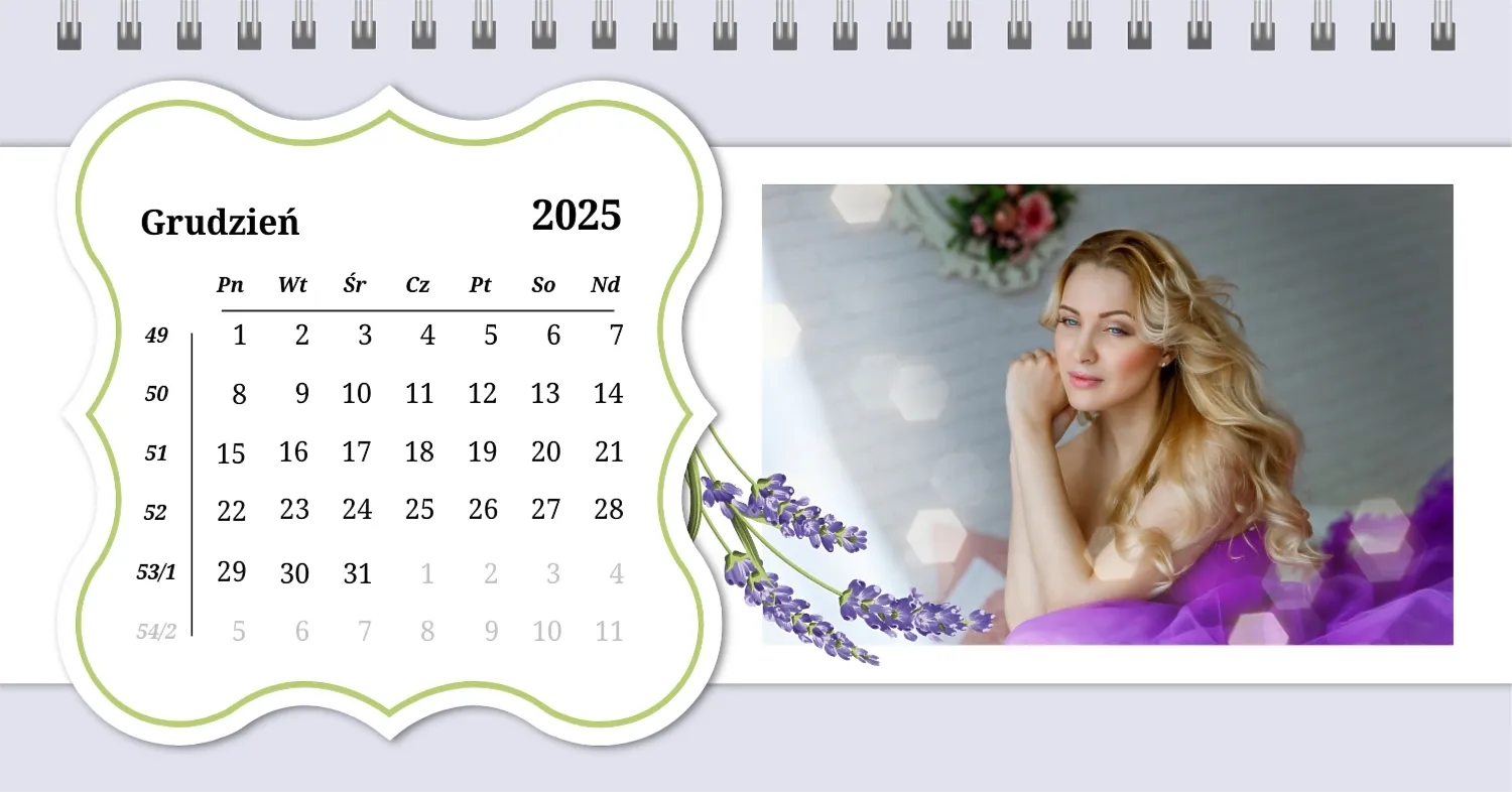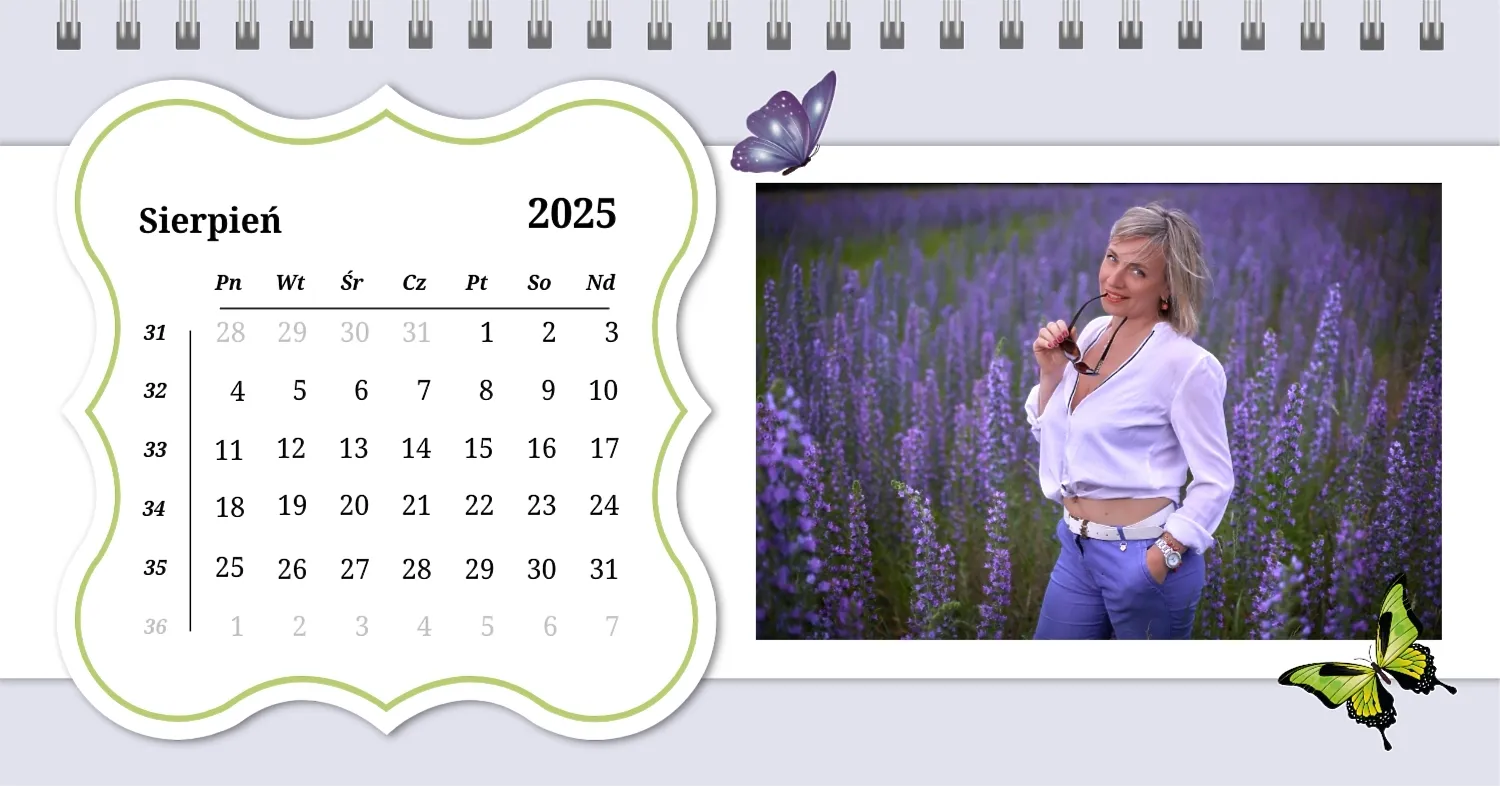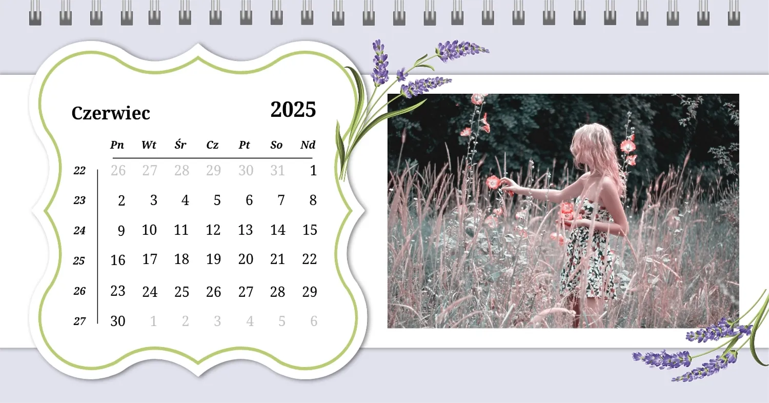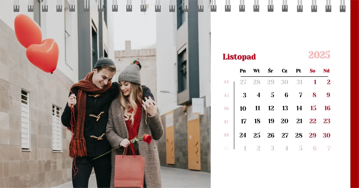 Szablon kalendarza "najlepsze wspomnienia" to idealna podstawa do stworzenia spersonalizowanego 13-stronicowego kalendarza biurkowego, który będzie odzwierciedlał najważniejsze momenty Twojego życia. Ten szablon jest odpowiedni dla każdego użytkownika, który chce podkreślić osobowość i zachować ważne wydarzenia w stylowym i funkcjonalnym formacie. Szczególnie przyda się fotografom, parom, właścicielom kreatywnych studiów lub małym firmom, które chcą stworzyć wyjątkowy produkt dla klientów lub podarować swoim bliskim coś wyjątkowego. Możesz łatwo dostosować projekt kalendarza biurkowego do swoich potrzeb dzięki naszemu poręcznemu kreatorowi online. Edycja pozwala zastąpić zdjęcia, dodać bloki tekstowe z ważnymi datami lub inspirującymi cytatami oraz wybrać kolorystykę, która podkreśli Twój nastrój. Kreator oferuje prosty interfejs, w którym dosłownie tworzysz unikalny kalendarz własnymi rękami, dodając osobiste akcenty i eksperymentując z elementami projektu.