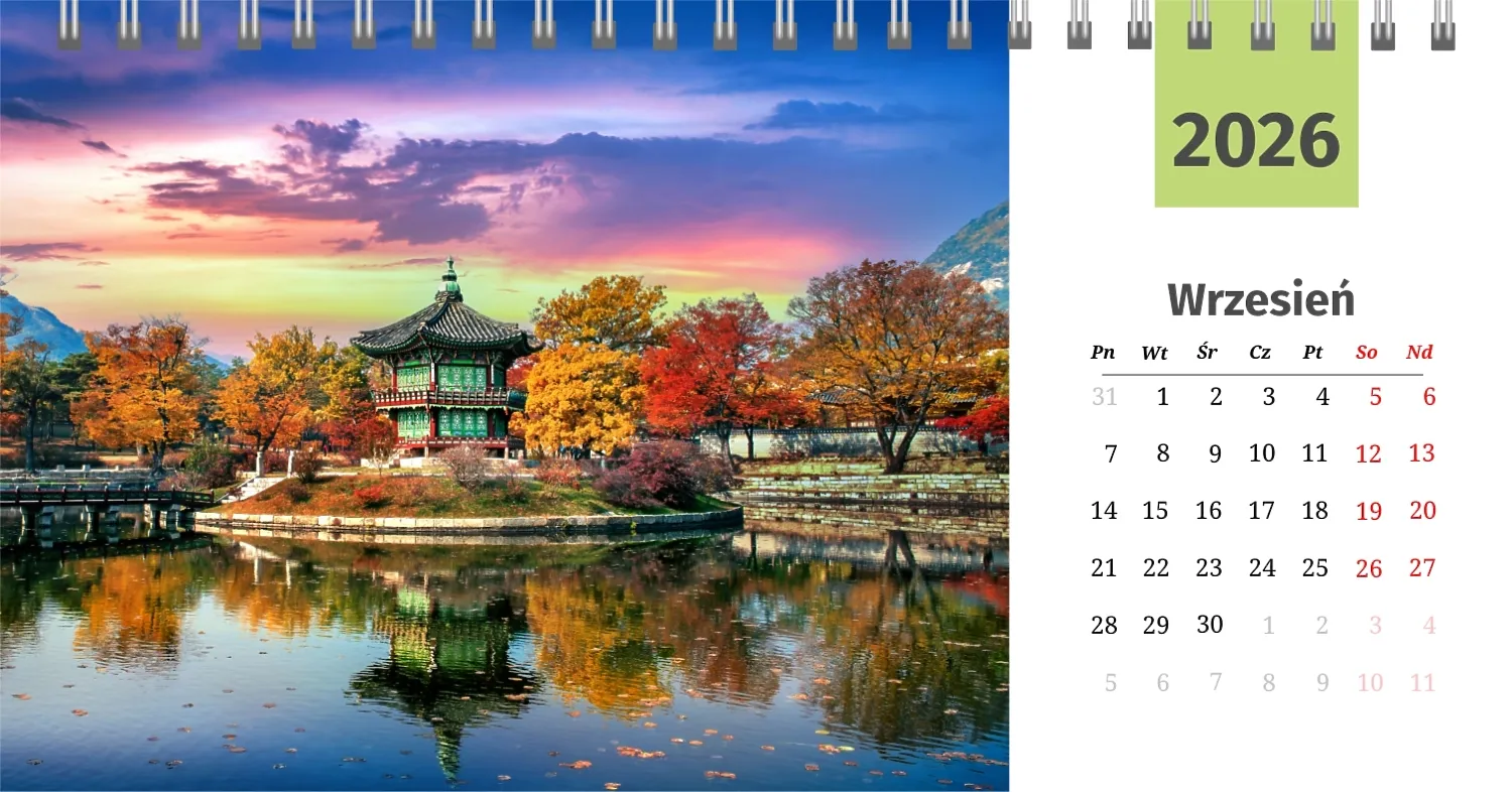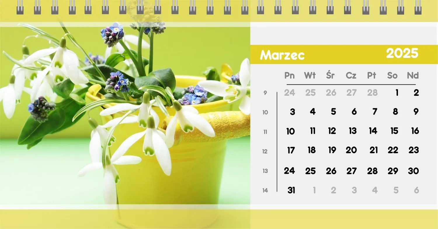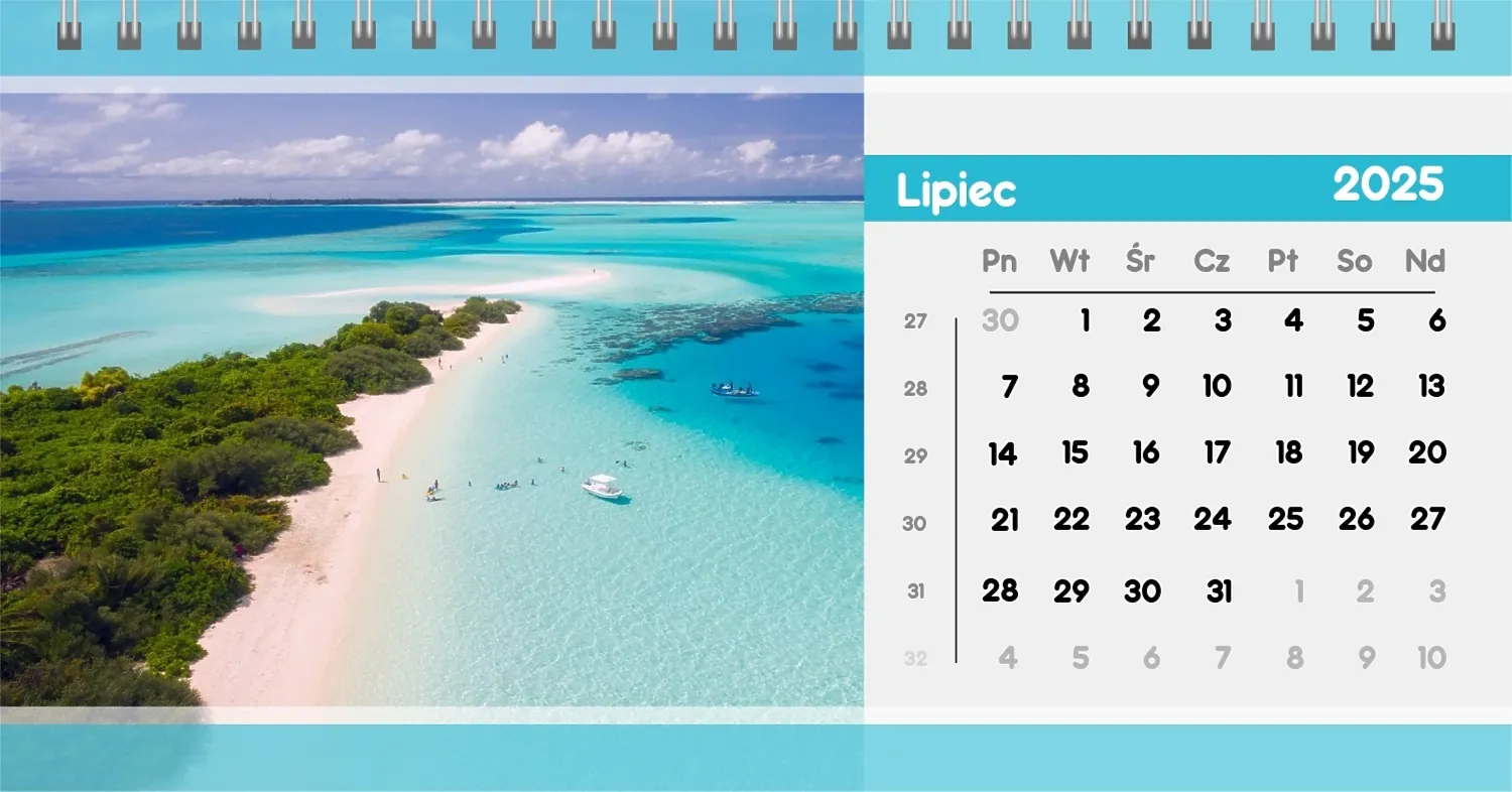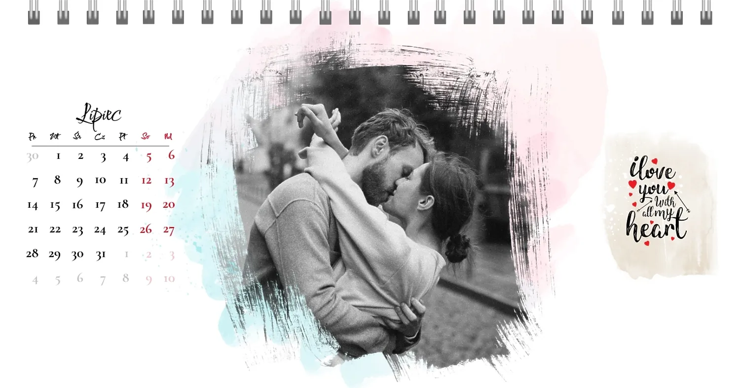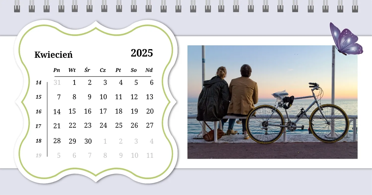Szablon kalendarza "najlepsze wspomnienia" to idealna podstawa do stworzenia spersonalizowanego 13-stronicowego kalendarza biurkowego, który będzie odzwierciedlał najważniejsze momenty Twojego życia. Ten szablon jest odpowiedni dla każdego użytkownika, który chce podkreślić osobowość i zachować ważne wydarzenia w stylowym i funkcjonalnym formacie. Szczególnie przyda się fotografom, parom, właścicielom kreatywnych studiów lub małym firmom, które chcą stworzyć wyjątkowy produkt dla klientów lub podarować swoim bliskim coś wyjątkowego. Możesz łatwo dostosować projekt kalendarza biurkowego do swoich potrzeb dzięki naszemu poręcznemu kreatorowi online. Edycja pozwala zastąpić zdjęcia, dodać bloki tekstowe z ważnymi datami lub inspirującymi cytatami oraz wybrać kolorystykę, która podkreśli Twój nastrój. Kreator oferuje prosty interfejs, w którym dosłownie tworzysz unikalny kalendarz własnymi rękami, dodając osobiste akcenty i eksperymentując z elementami projektu.
