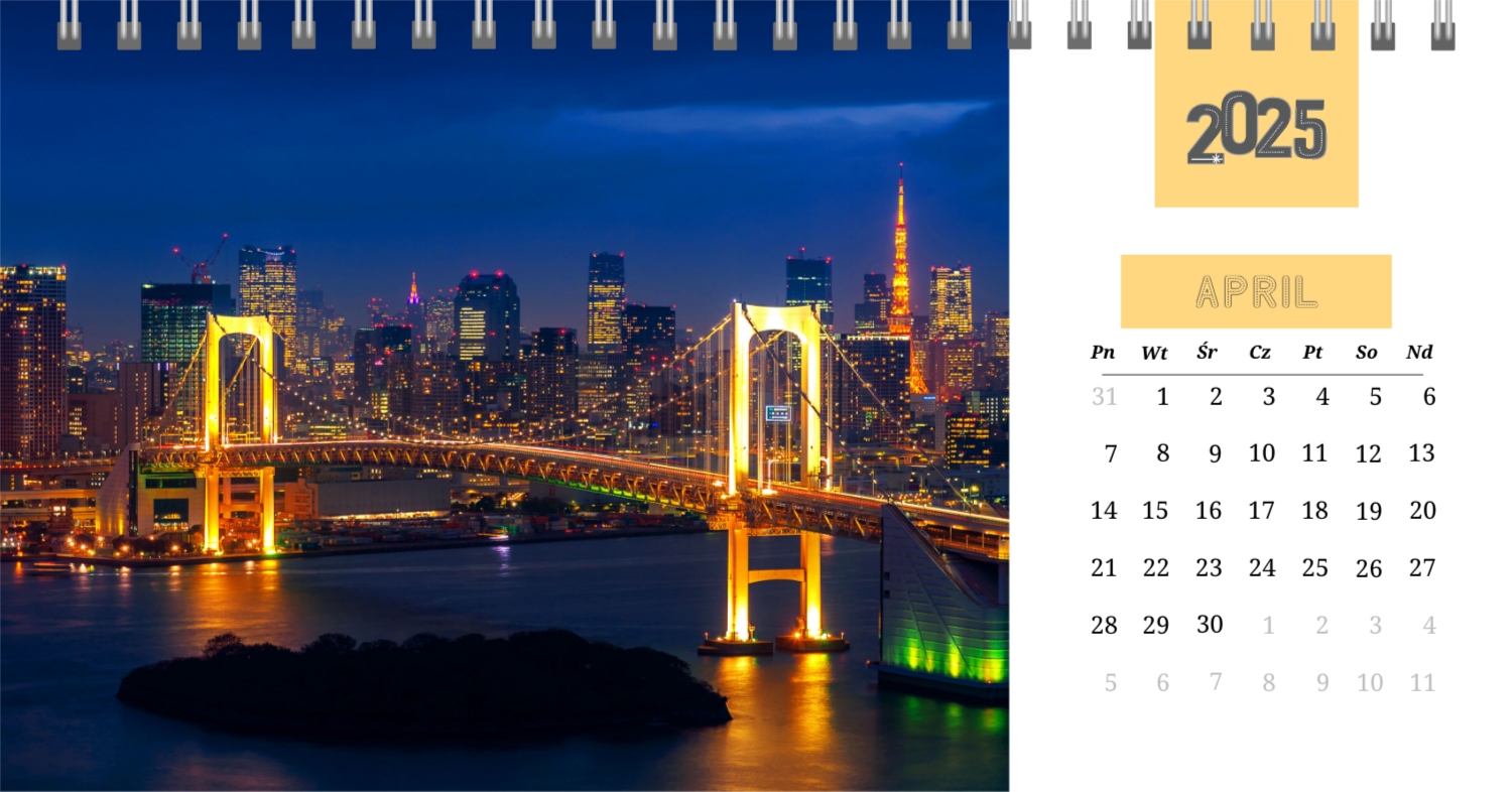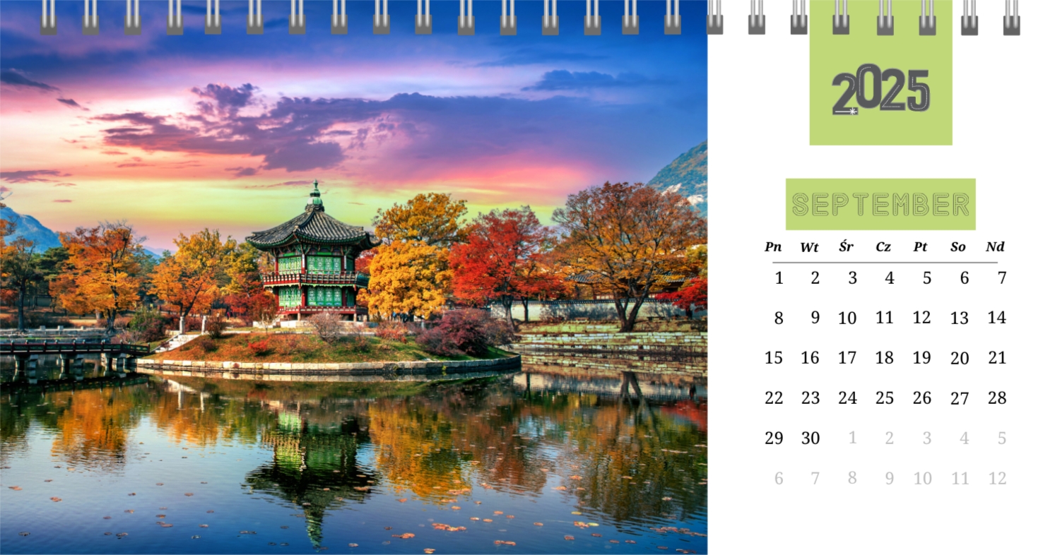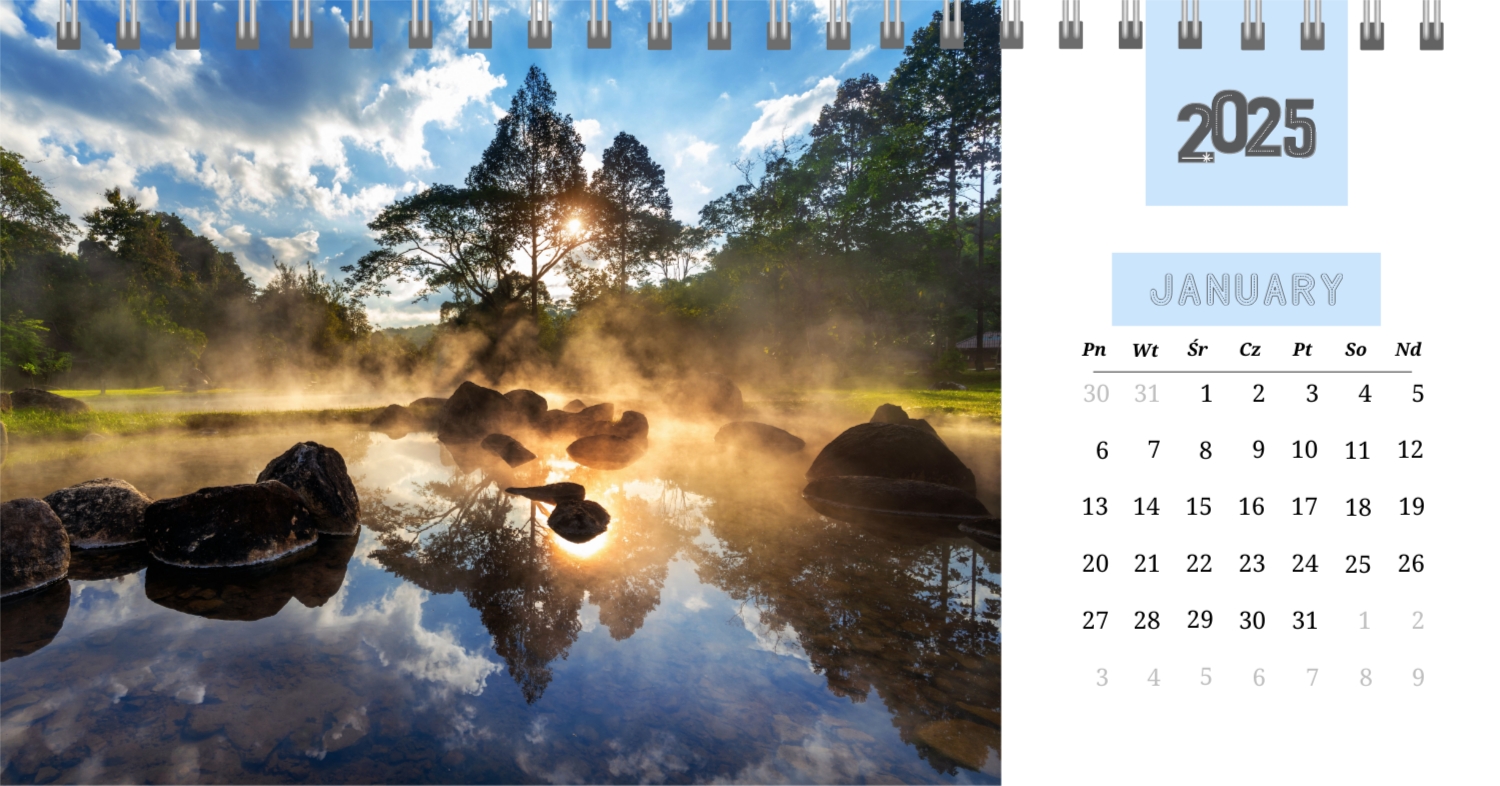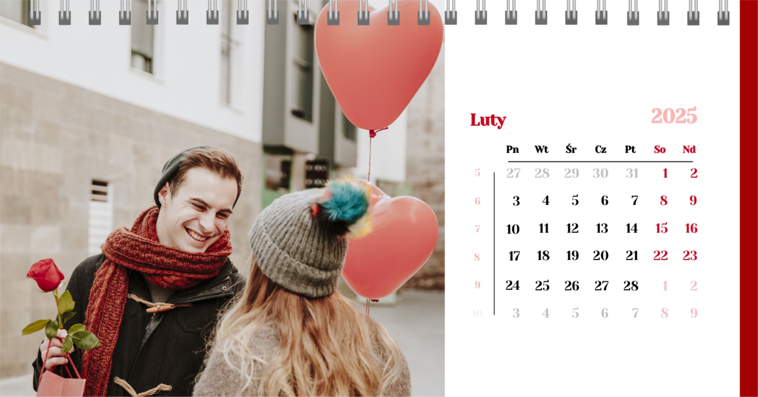 Szablon kalendarza "najlepsze wspomnienia" to idealna podstawa do stworzenia spersonalizowanego 13-stronicowego kalendarza biurkowego, który będzie odzwierciedlał najważniejsze momenty Twojego życia. Ten szablon jest odpowiedni dla każdego użytkownika, który chce podkreślić osobowość i zachować ważne wydarzenia w stylowym i funkcjonalnym formacie. Szczególnie przyda się fotografom, parom, właścicielom kreatywnych studiów lub małym firmom, które chcą stworzyć wyjątkowy produkt dla klientów lub podarować swoim bliskim coś wyjątkowego. Możesz łatwo dostosować projekt kalendarza biurkowego do swoich potrzeb dzięki naszemu poręcznemu kreatorowi online. Edycja pozwala zastąpić zdjęcia, dodać bloki tekstowe z ważnymi datami lub inspirującymi cytatami oraz wybrać kolorystykę, która podkreśli Twój nastrój. Kreator oferuje prosty interfejs, w którym dosłownie tworzysz unikalny kalendarz własnymi rękami, dodając osobiste akcenty i eksperymentując z elementami projektu.