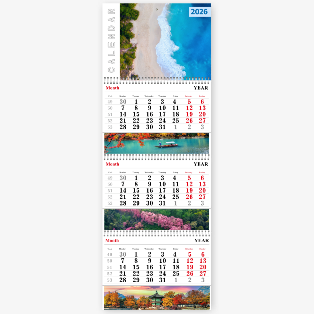 Szablon kalendarza " najlepsze wspomnienia "to idealna podstawa do stworzenia spersonalizowanego kwartalnego kalendarza" Trio", który będzie odzwierciedlał najważniejsze momenty Twojego życia. Ten szablon jest odpowiedni dla każdego użytkownika, który chce podkreślić osobowość i zachować ważne wydarzenia w stylowym i funkcjonalnym formacie. Szczególnie przyda się fotografom, parom, właścicielom kreatywnych studiów lub małym firmom, które chcą stworzyć wyjątkowy produkt dla klientów lub podarować swoim bliskim coś wyjątkowego. Możesz łatwo dostosować projekt do swoich potrzeb dzięki naszemu poręcznemu kreatorowi online. Edycja pozwala zastąpić zdjęcia, dodać bloki tekstowe z ważnymi datami lub inspirującymi cytatami oraz wybrać kolorystykę, która podkreśli Twój nastrój. Kreator oferuje prosty interfejs, w którym dosłownie tworzysz unikalny kalendarz własnymi rękami, dodając osobiste akcenty i eksperymentując z elementami projektu.