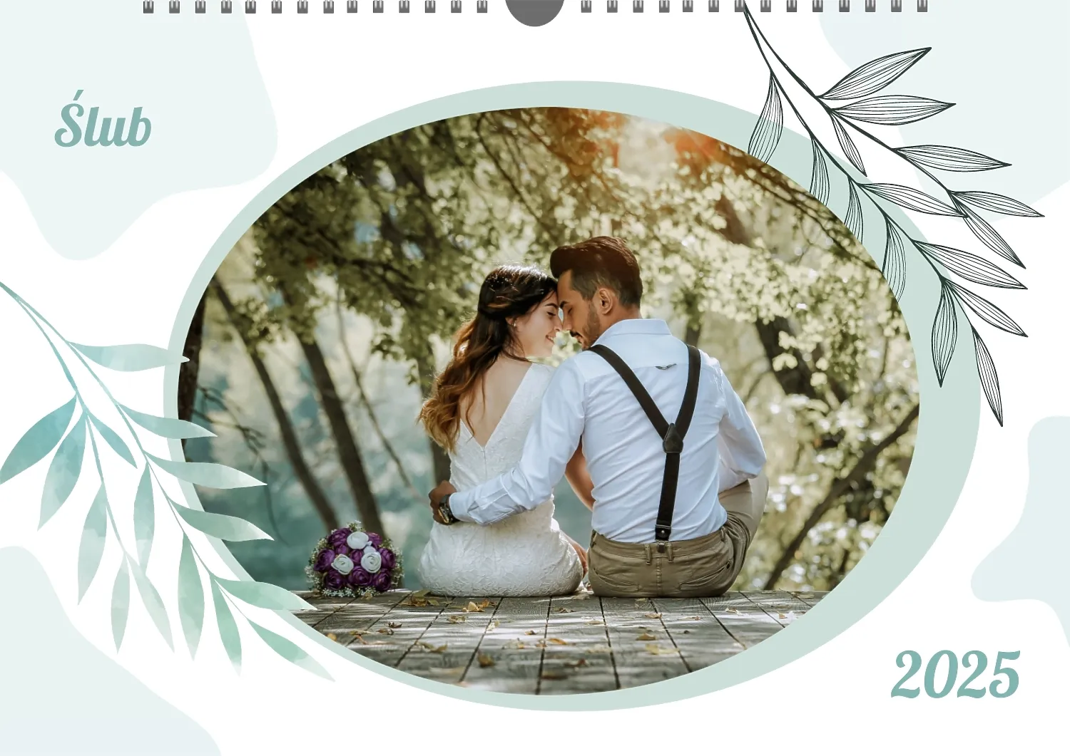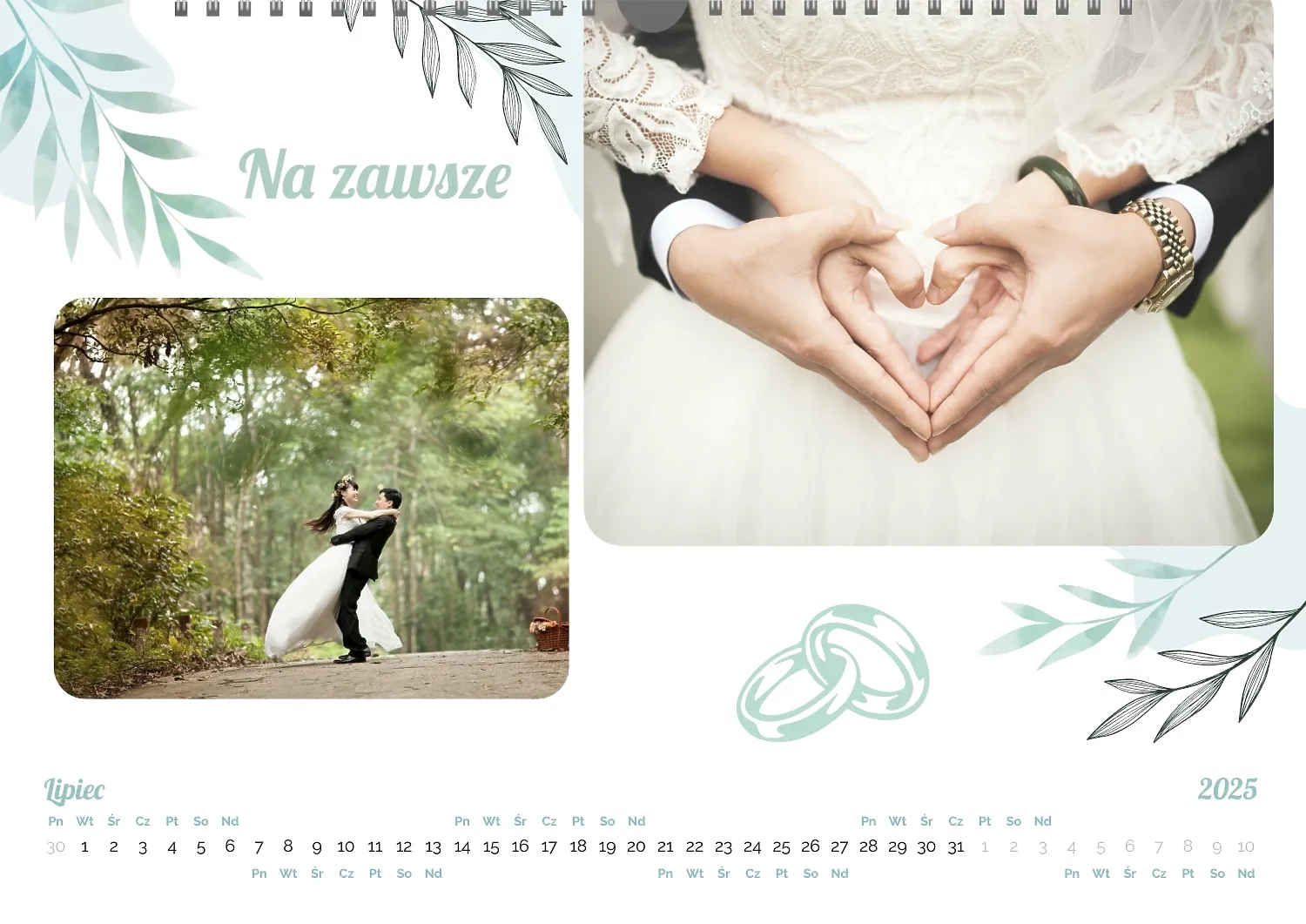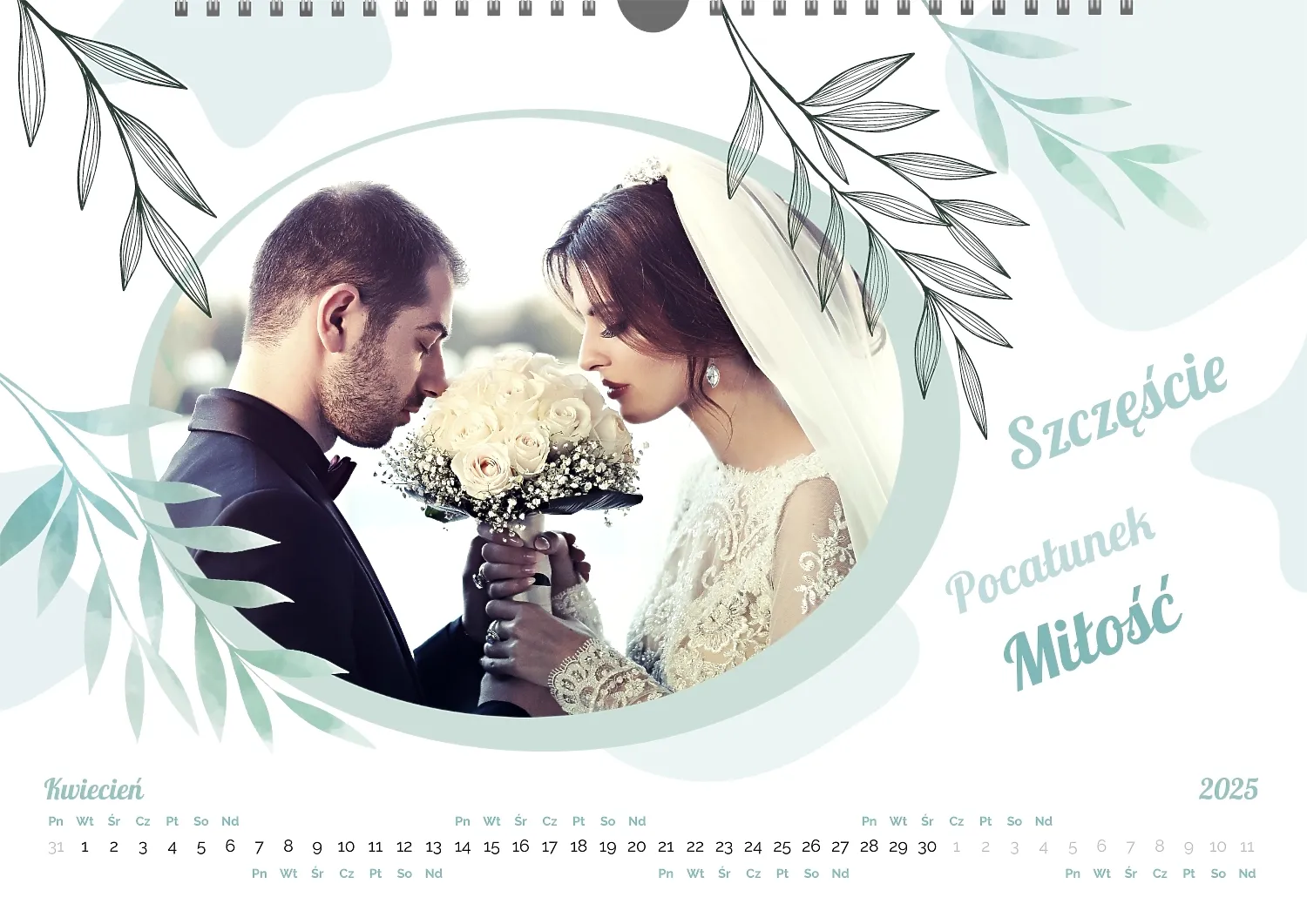 Kalendarz "nasza rodzina" ze zdjęciami ślubnymi to gotowy szablon, który doskonale nadaje się do stworzenia wyjątkowego i niezapomnianego kalendarza rodzinnego. Jego ciepły i romantyczny styl sprawia, że jest idealny dla par, które chcą zachować wspomnienia ze ślubu lub dla tych, którzy chcą podarować bliskim coś wyjątkowego. Taki ścienny kalendarz poziomy może być świetnym prezentem dla rodziców, krewnych, a nawet przyjaciół, którzy byli częścią twojego ważnego wydarzenia. Możesz zastąpić zdjęcia własnymi, wybierając najbardziej wzruszające momenty ślubu, zmienić podpisy, dodając nazwiska, daty lub krótkie frazy, które przypomną najważniejsze momenty twojej historii. W kreatorze online łatwo jest również dostosować kolory, czcionki i rozmieszczenie elementów, aby kalendarz w pełni odzwierciedlał Twoją wyjątkowość i styl. Tworzenie takiego kalendarza własnymi rękami nie wymaga specjalnych umiejętności. Intuicyjny interfejs projektanta pozwala eksperymentować z projektem, aż wynik będzie idealny. Ostateczny kalendarz stanie się nie tylko produktem funkcjonalnym, ale także emocjonalną pamiątką rodzinną, która zachwyci Ciebie i Twoich bliskich przez cały rok.