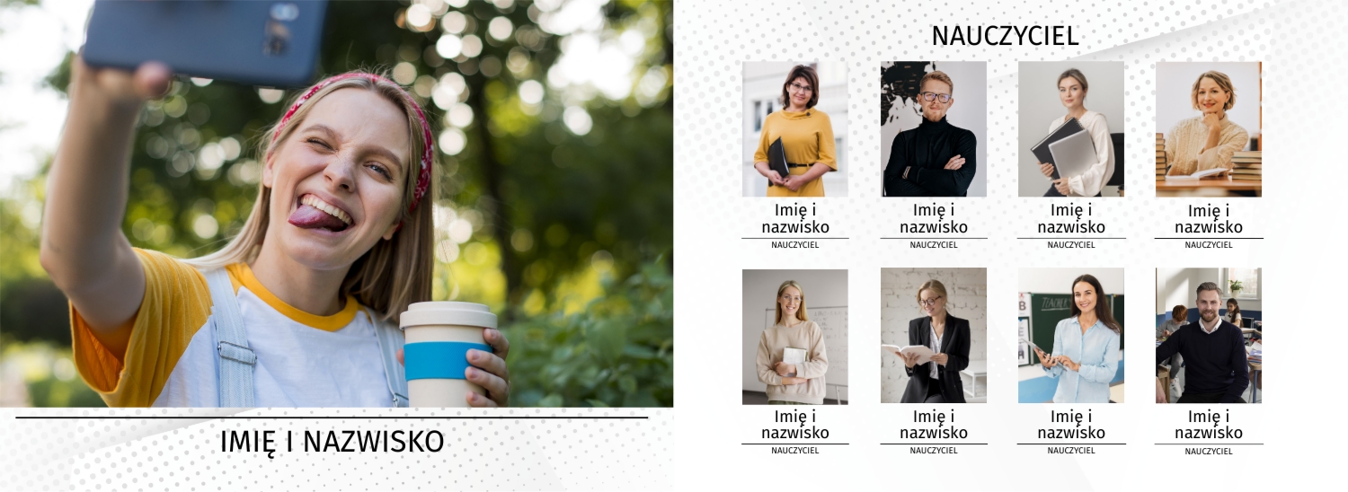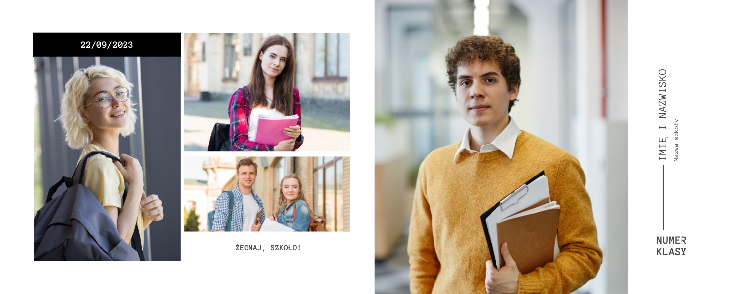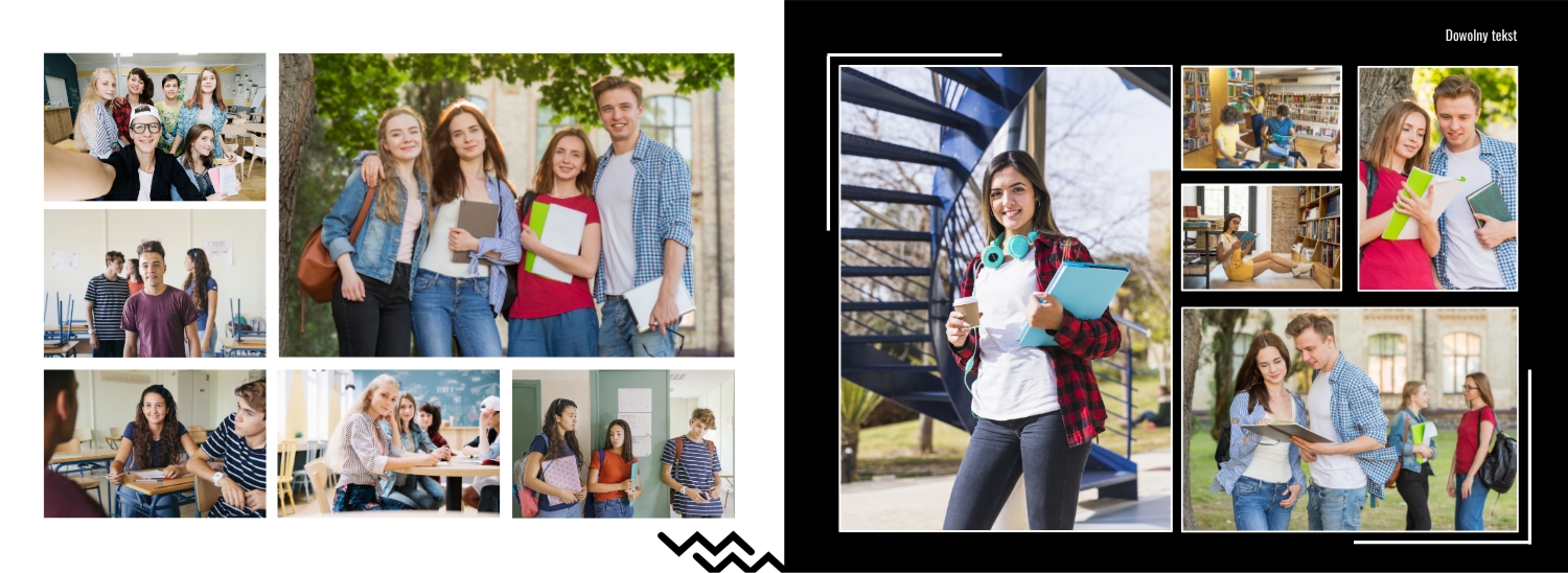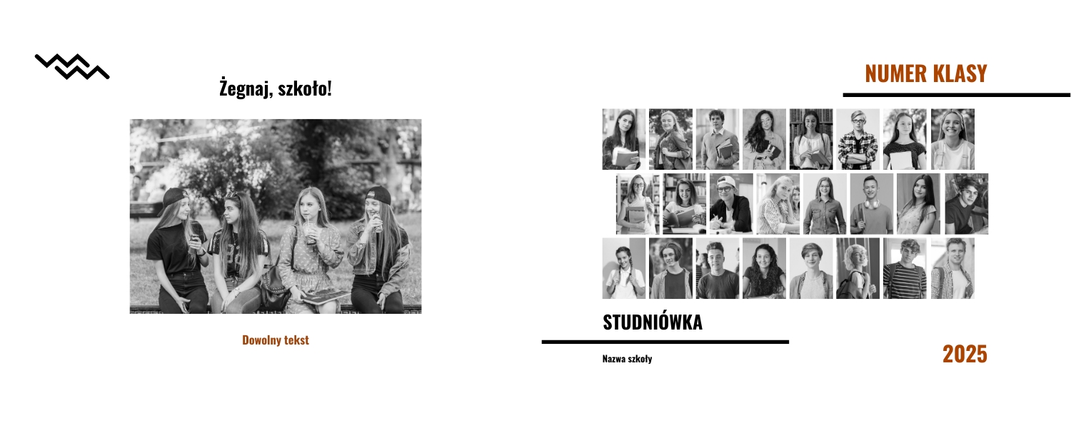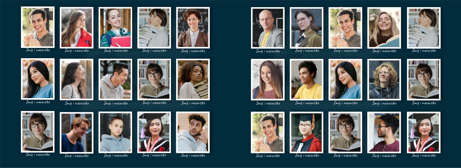 Darmowy szablon fotoksiążki absolwentów uczelni, szkoły, liceum. Utwórz makietę DIY w internetowym kreatorze fotoksiążek.