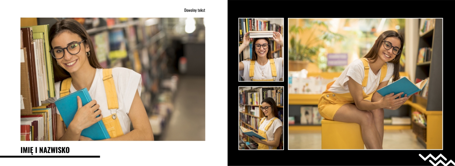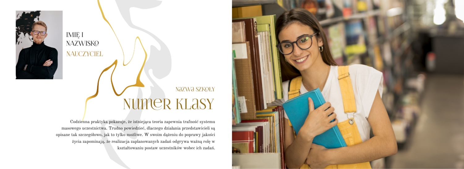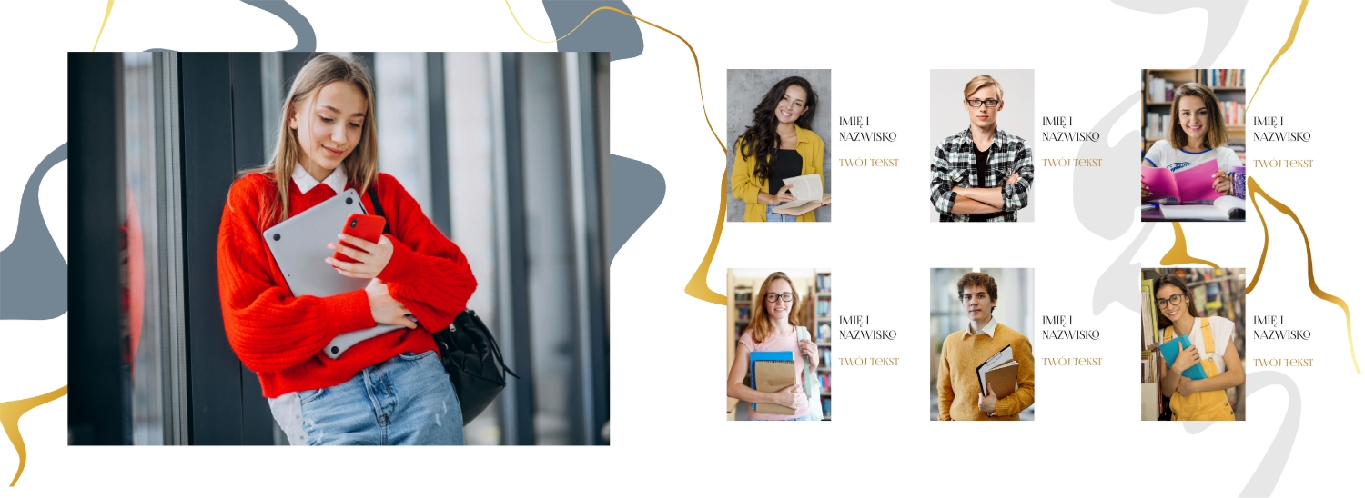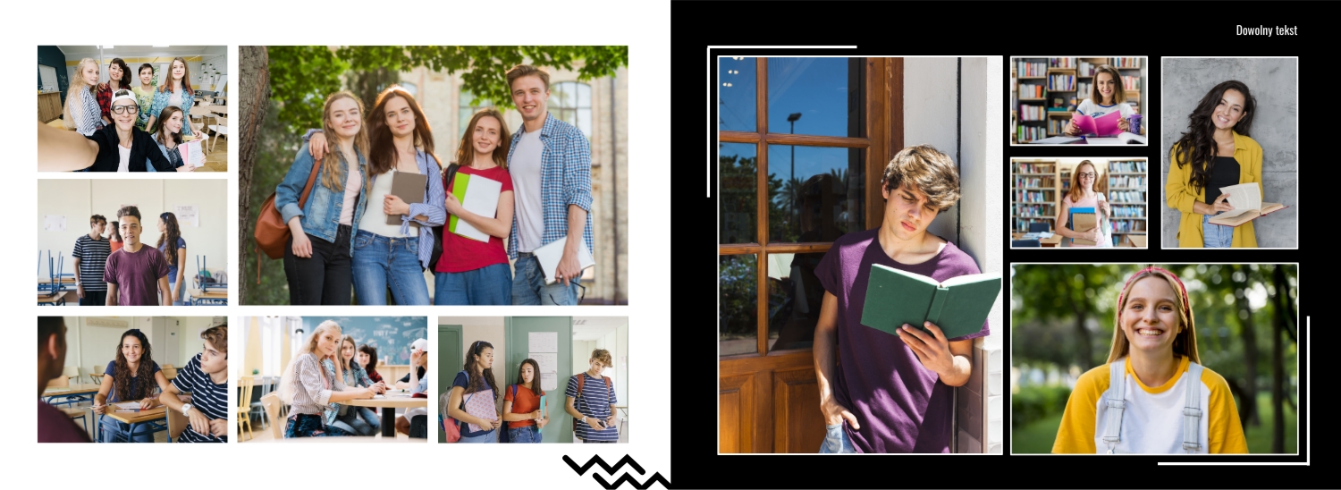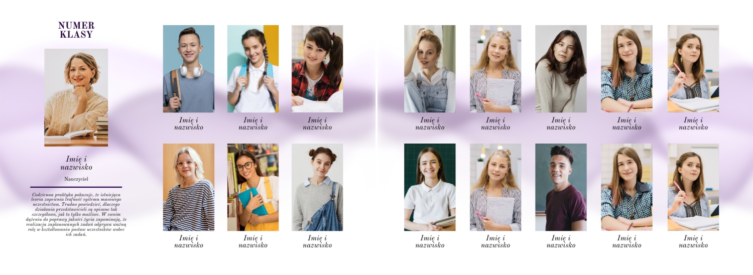 Darmowy szablon fotoksiążki absolwentów uczelni, szkoły, liceum. Utwórz makietę DIY w internetowym kreatorze fotoksiążek.